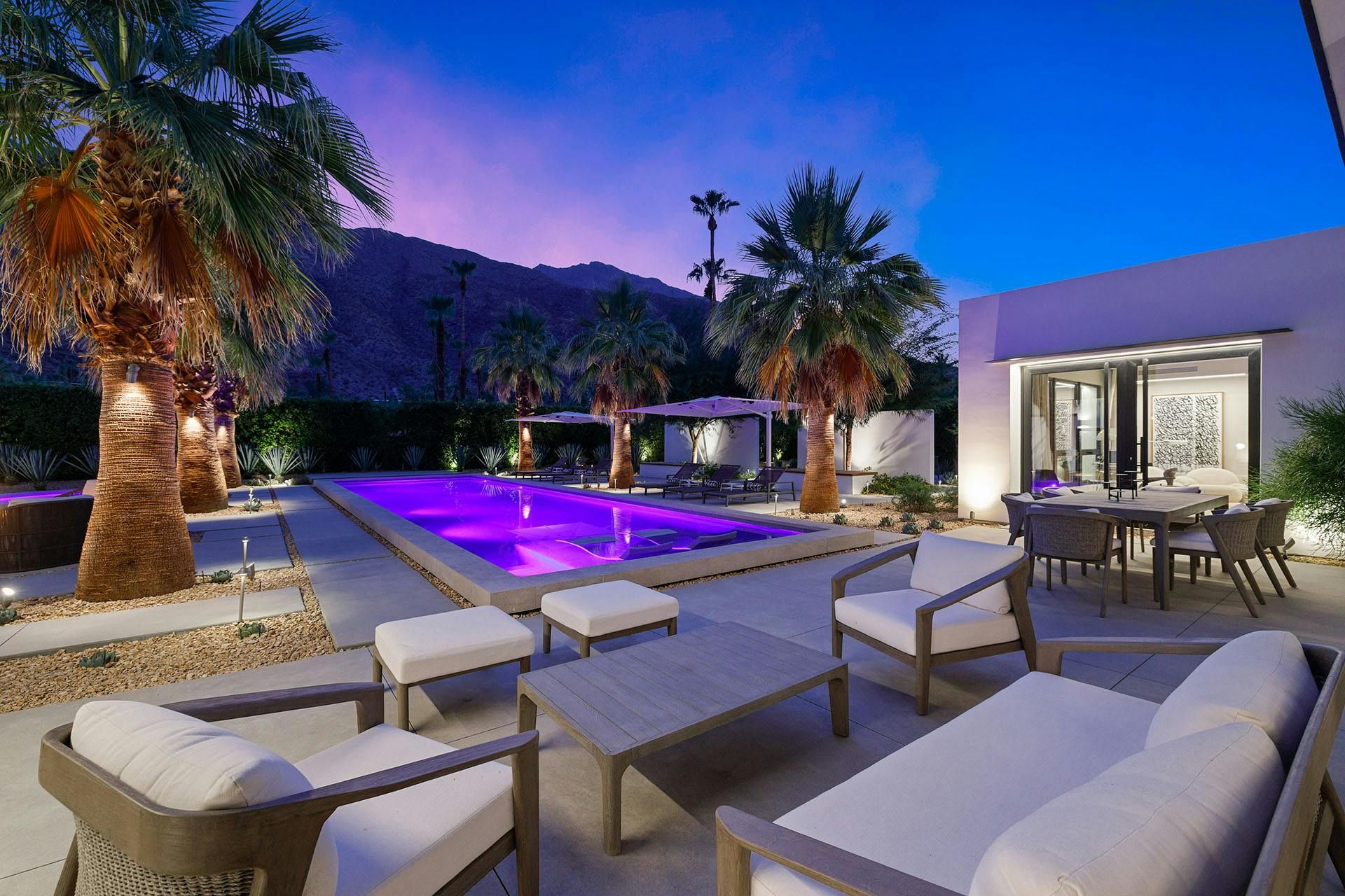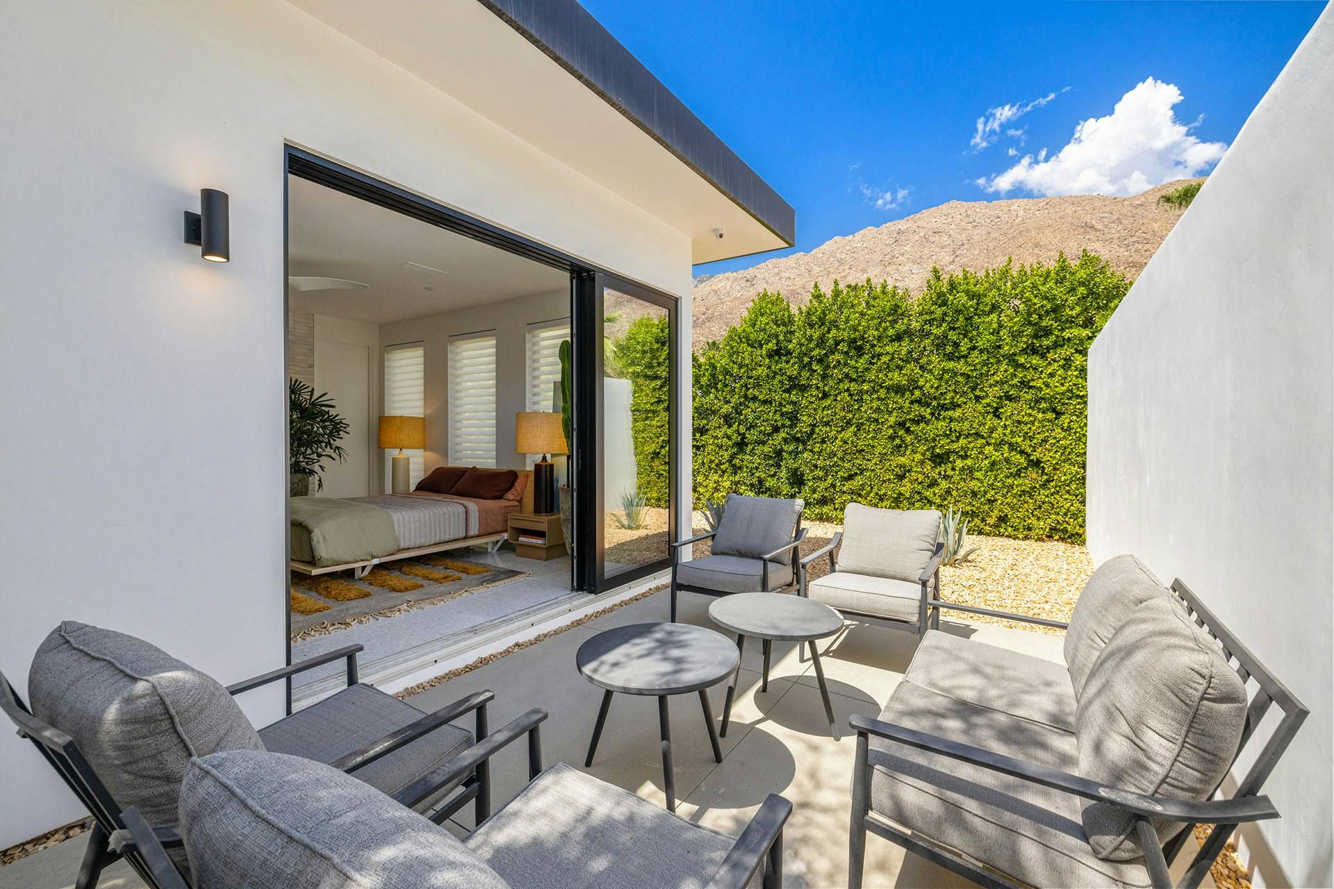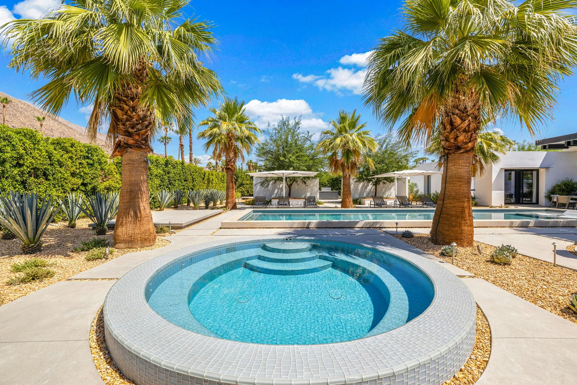 In the heart of South Palm Springs, this stylish home captures the best of desert living. Walls of glass open to a private oasis with a shimmering pool, bubbling spa, and breathtaking mountain views. Whether you’re lounging in the sun, dining alfresco, or gathering by the firepit at sunset, the outdoor space is pure magic. Inside, you’ll find sleek, open-plan living and a gourmet kitchen perfect for group dinners. The separate casita offers extra privacy, complete with its own kitchen and patio – ideal for friends or extended family. And with Palm Canyon Drive’s restaurants, cafes, and shops just moments away, the location couldn’t be better.