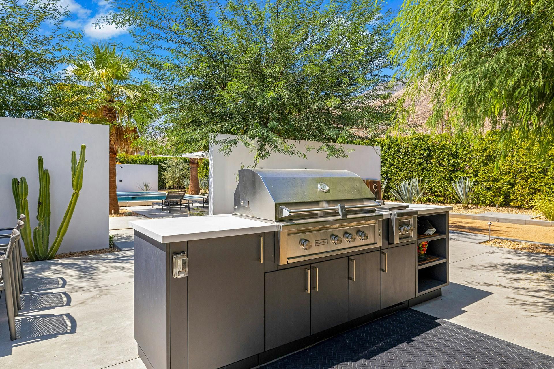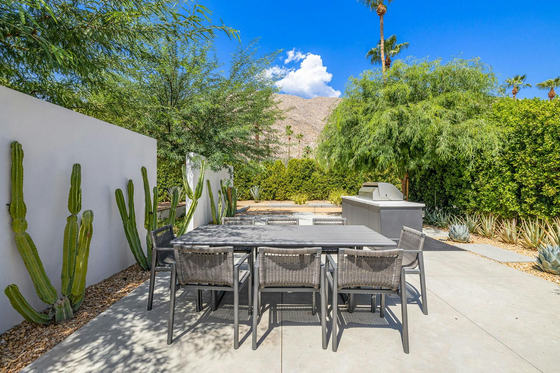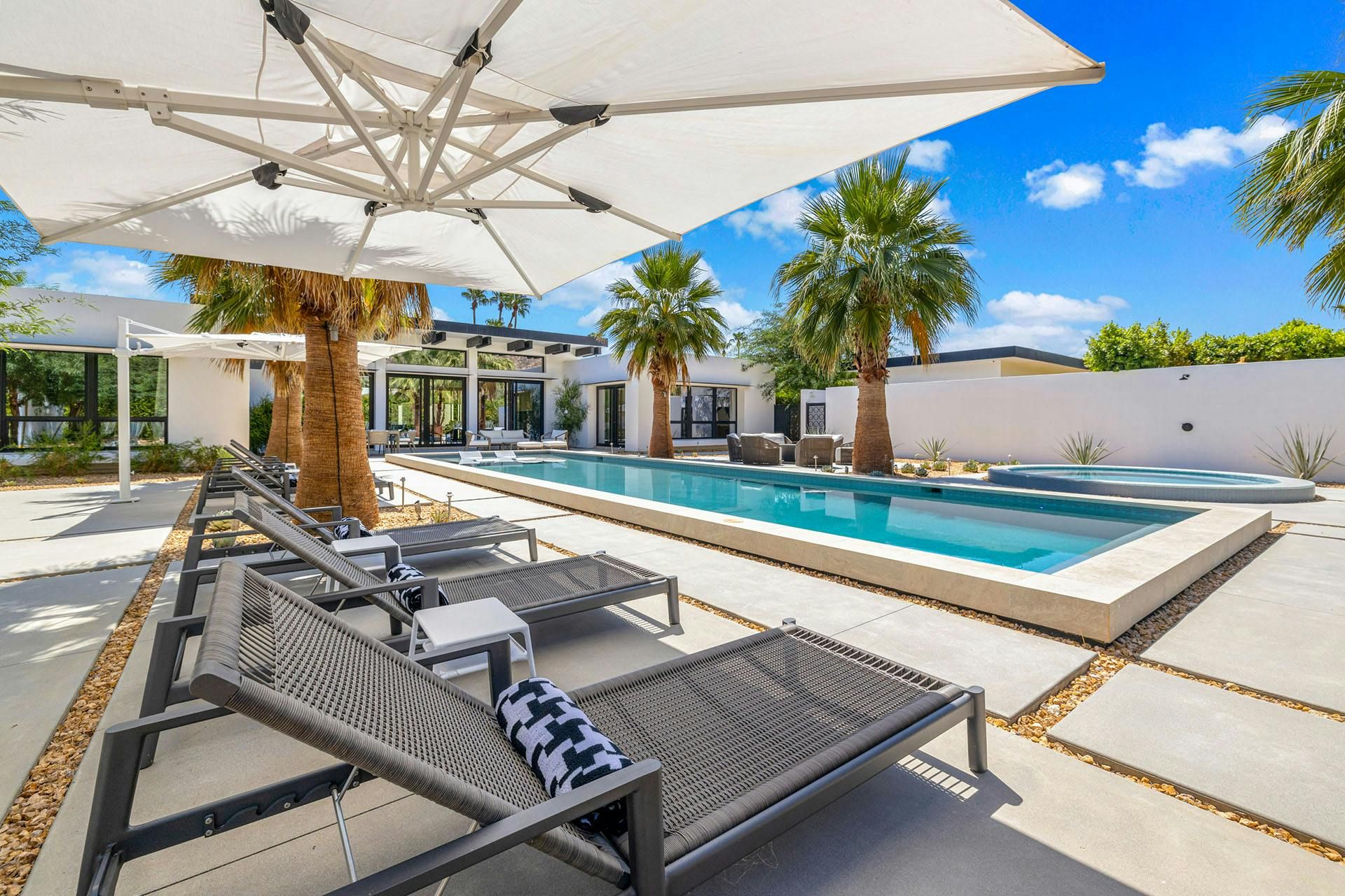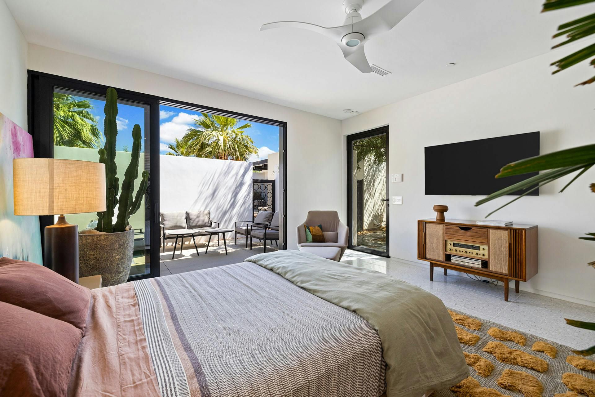 In the heart of South Palm Springs, this stylish home captures the best of desert living. Walls of glass open to a private oasis with a shimmering pool, bubbling spa, and breathtaking mountain views. Whether you’re lounging in the sun, dining alfresco, or gathering by the firepit at sunset, the outdoor space is pure magic. Inside, you’ll find sleek, open-plan living and a gourmet kitchen perfect for group dinners. The separate casita offers extra privacy, complete with its own kitchen and patio – ideal for friends or extended family. And with Palm Canyon Drive’s restaurants, cafes, and shops just moments away, the location couldn’t be better.