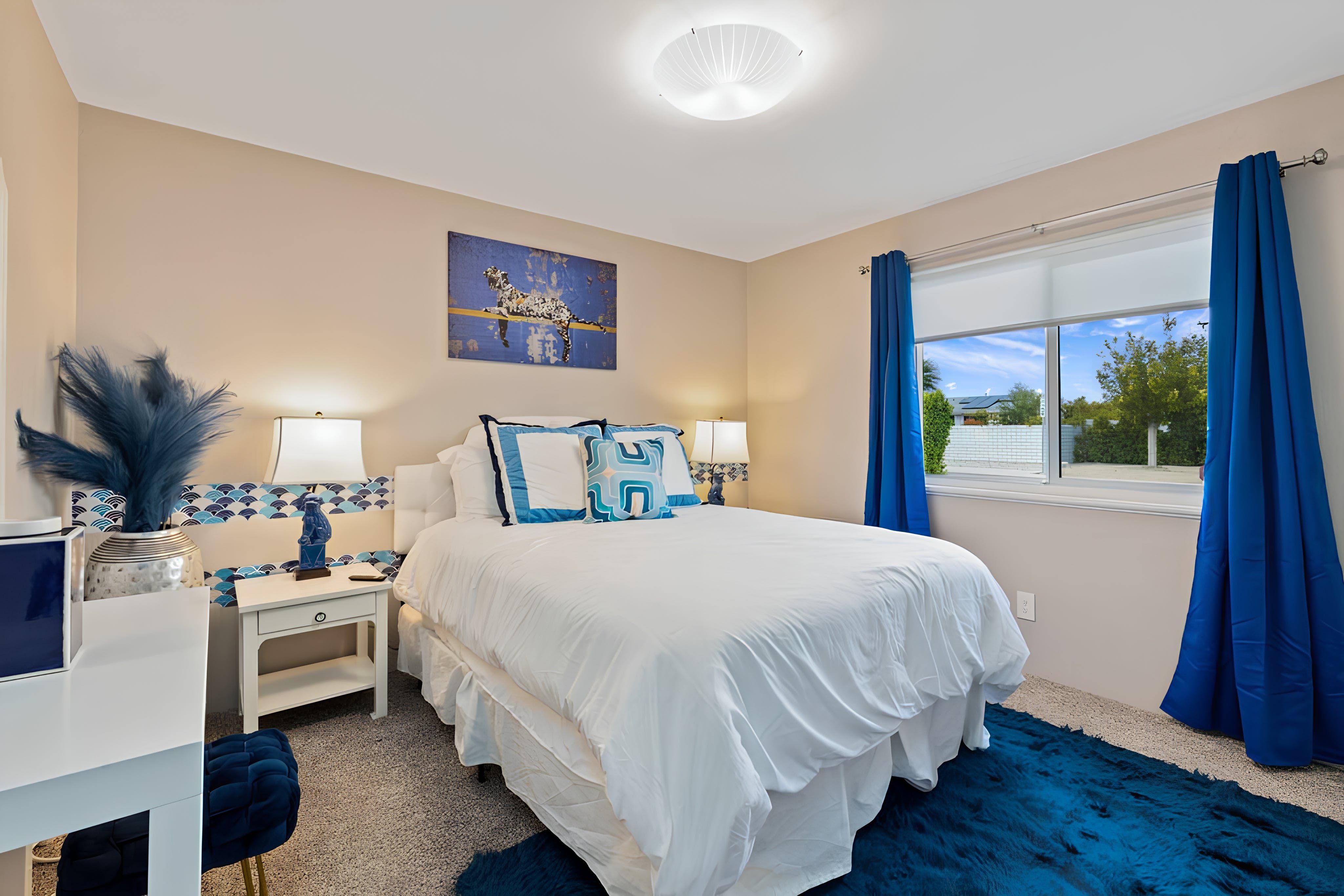 Come and experience the ultimate Palm Springs getaway at this stylish example of a midcentury Alexander home. The open layout flows seamlessly into a private backyard oasis featuring a heated pool, spa, fire pit, and ample space for lounging under the desert sun. Expansive views of the San Jacinto mountains frame the setting, creating the perfect backdrop for days filled with relaxation and evenings under the stars. You’ll find interiors designed for comfort, with everything you need for a carefree escape. At full capacity, two guests will sleep on a sofa bed in the living room. It’s a small trade-off for enjoying such an iconic Palm Springs retreat, where every moment feels special.