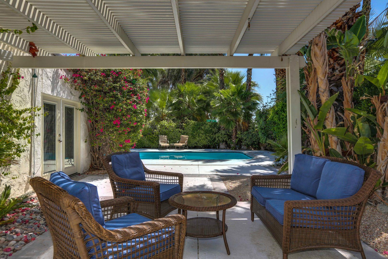 In this historic and glamorous neighbourhood of Old Las Palmas, you're rubbing shoulders with the homes of movie stars past and present. The feeling of Hollywood's Golden Age is unmissable, and you'll certainly feel the glamour in this home. Lush gardens, a glittering pool, and a stone waterfall hot tub are the perfect welcome to this Palm Springs oasis. Spend lazy days lounging by the pool, sipping on a cocktail, surrounded by flourishing gardens. When dinnertime rolls around, tuck in to barbecue dinners around the bistro table. Or, take the twenty-minute walk or five-minute drive to the centre of Palm Springs where you'll find plenty of restaurants, bars, and clubs. By day, Palm Springs almost looks like it's been dipped in sepia, epitomising hazy California dreaming. By night, it comes alive with neon signs and twinkling lights. When you return home, enjoy an obligatory nightcap in the hot tub, before sinking into your bed for a restful night's sleep.