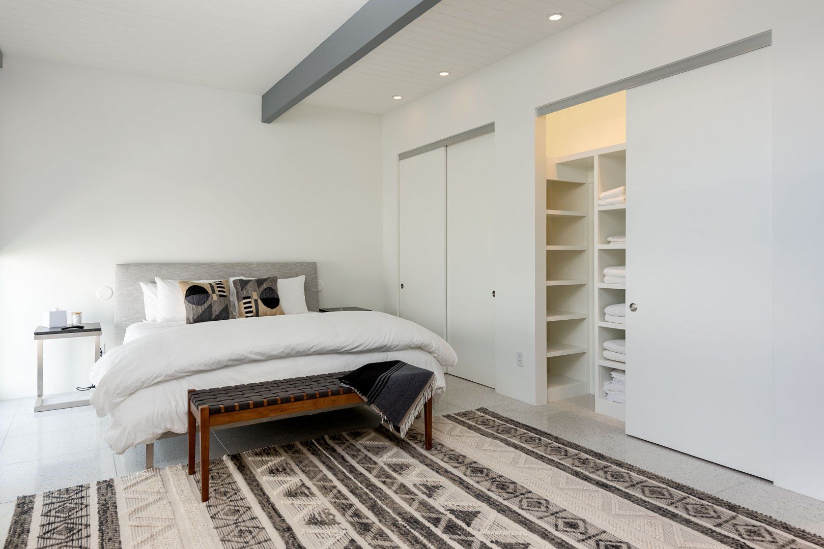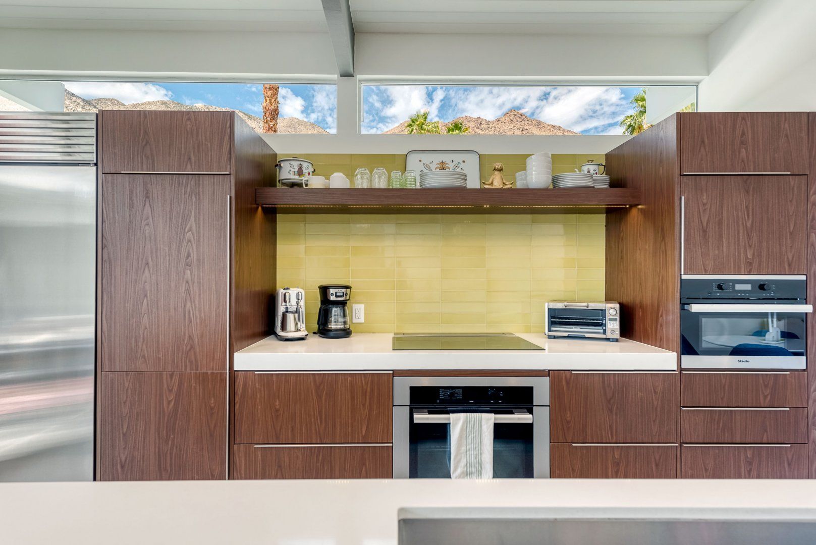 Designed by Alexander in classic mid-century style, this home is everything you want in a Palm Springs getaway. Bright green palms sway against the rugged backdrop of the soaring peaks of the San Jacinto Mountains for a sublime view from the backyard. Here you’ll find an azure swimming pool, a built-in barbecue area, a shaded U-shaped sofa and a gas firepit for when the desert air turns chilly. The interior is a nod to sixties chic, with splashes of navy and moss green in the form of a vintage-style sofa and dining chairs. The kitchen may look retro on the outside, but the cupboards hide all kinds of appliances and gadgets fit for the twenty-first century. Tucked away in the tranquil Vista Las Palmas neighbourhood, you’re a mere three-minute drive (or twenty-minute walk) from the shops, galleries and restaurants of Palm Canyon Drive. The hiking trails of the San Jacinto Mountains are just a five-minute walk away too.