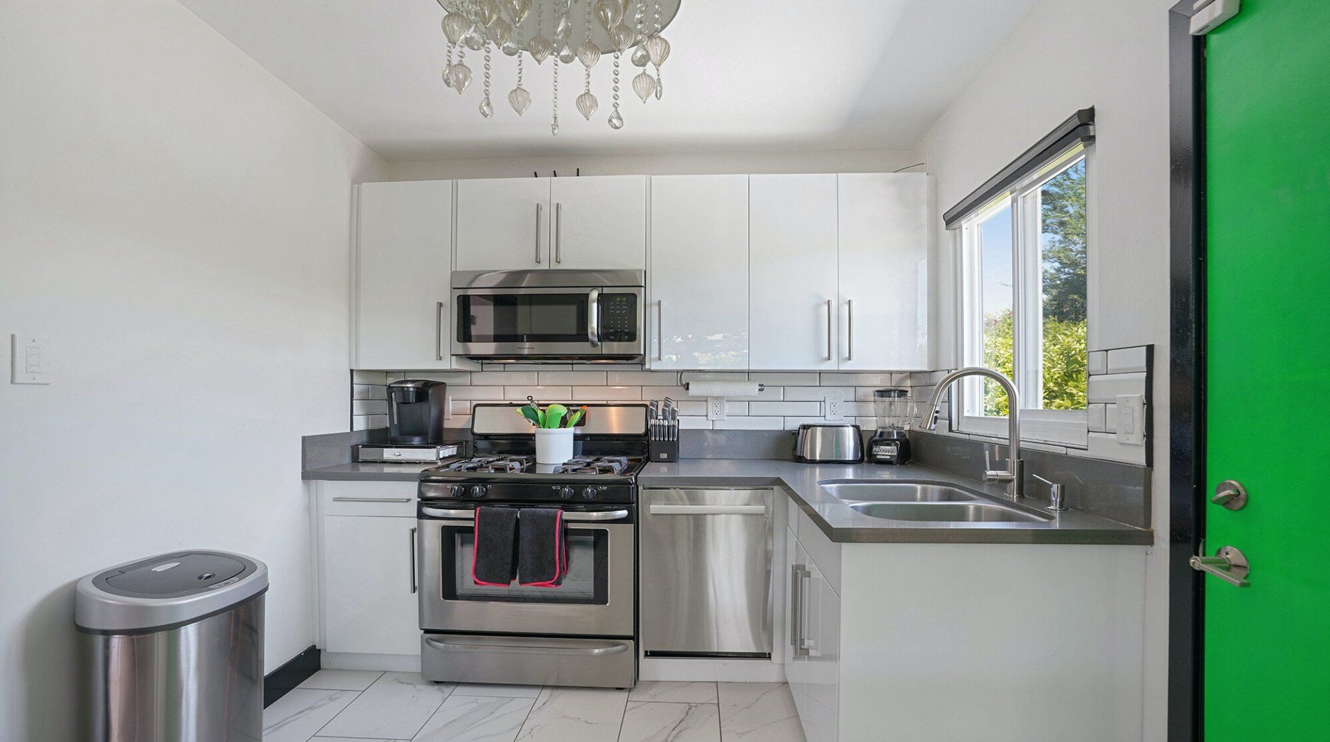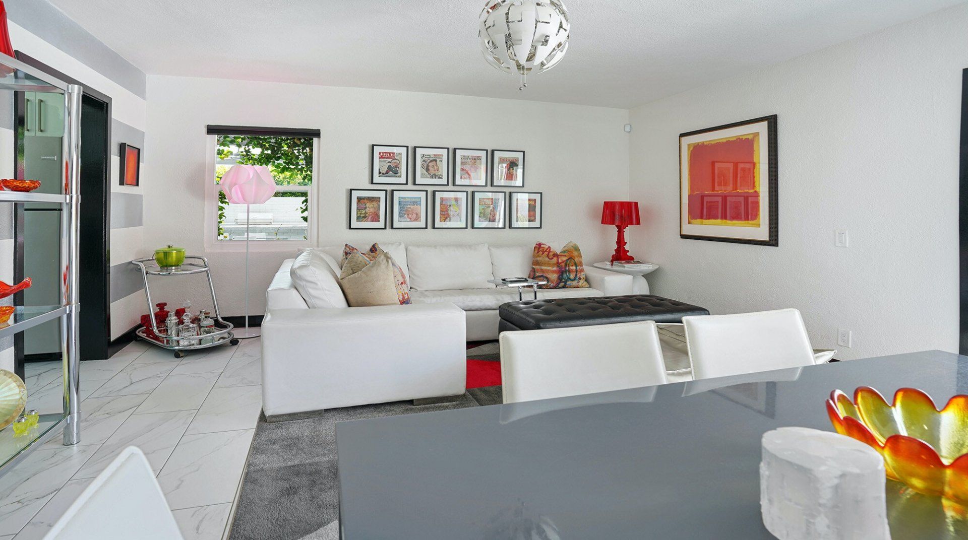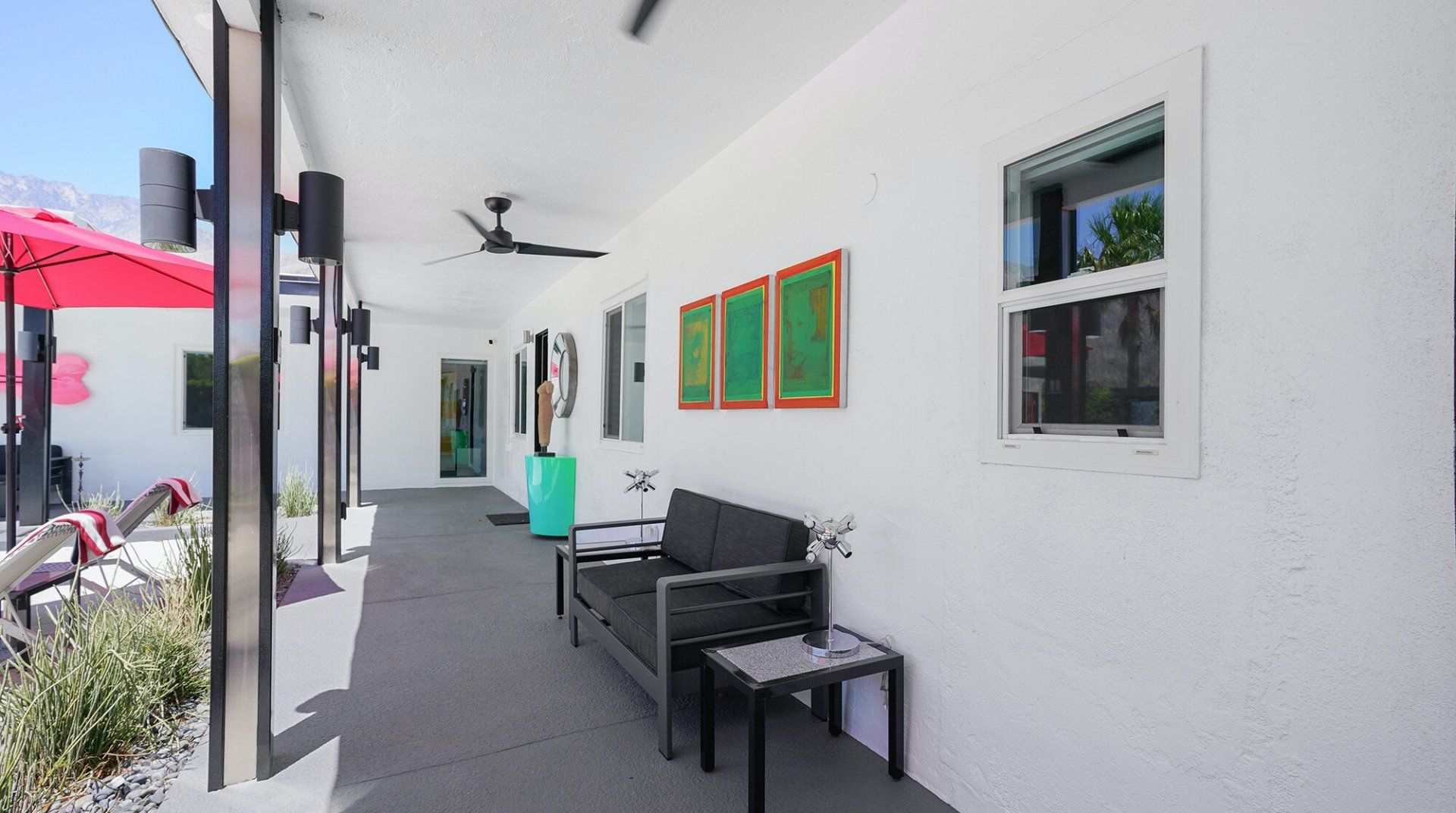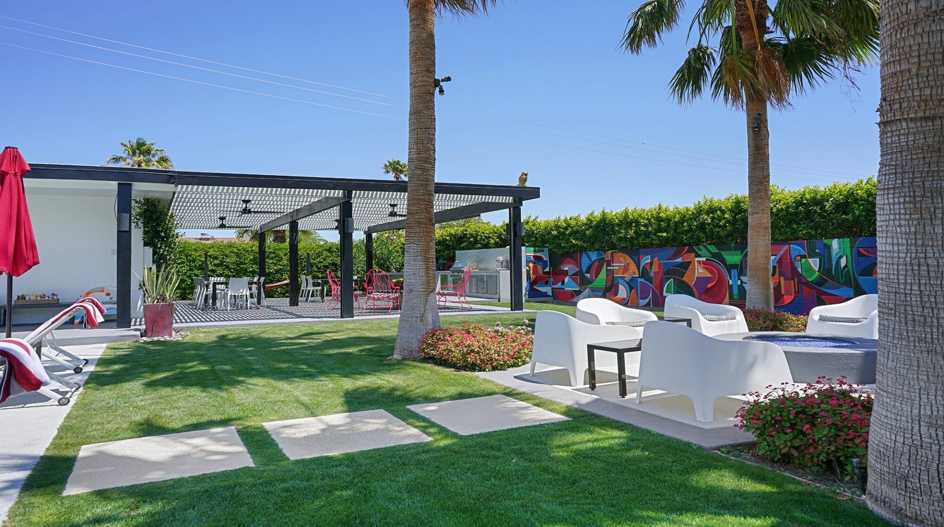 This bright and bold compound is fabulous, full stop. Bring a group of friends or family to this Palm Springs oasis, and even if you aren’t celebrating something, it will certainly feel like you are. With four independent suites decked out in sleek contemporary furnishings, there’s plenty of private space for every guest to recharge before opening their front door and entering the heart of this property – the enormous pool and courtyard. This ingenious layout means you are never far from the action and the refreshing, necessary waters of a huge pool in the desert. Fire up the grill for afternoon burgers and hotdogs. When the sun goes down, the neon lights come on – grab a cocktail and turn up the music. You’ll feel like you're at a private club. If you decide to head out, there's plenty to do nearby. Downtown Palm Springs is full of bistros, classic Italian restaurants, and bars with live music. Be sure to check out the weekly night market VillageFest, with its art and crafts, vinyl and gourmet foods stalls, and grab a souvenir to remember the party by.