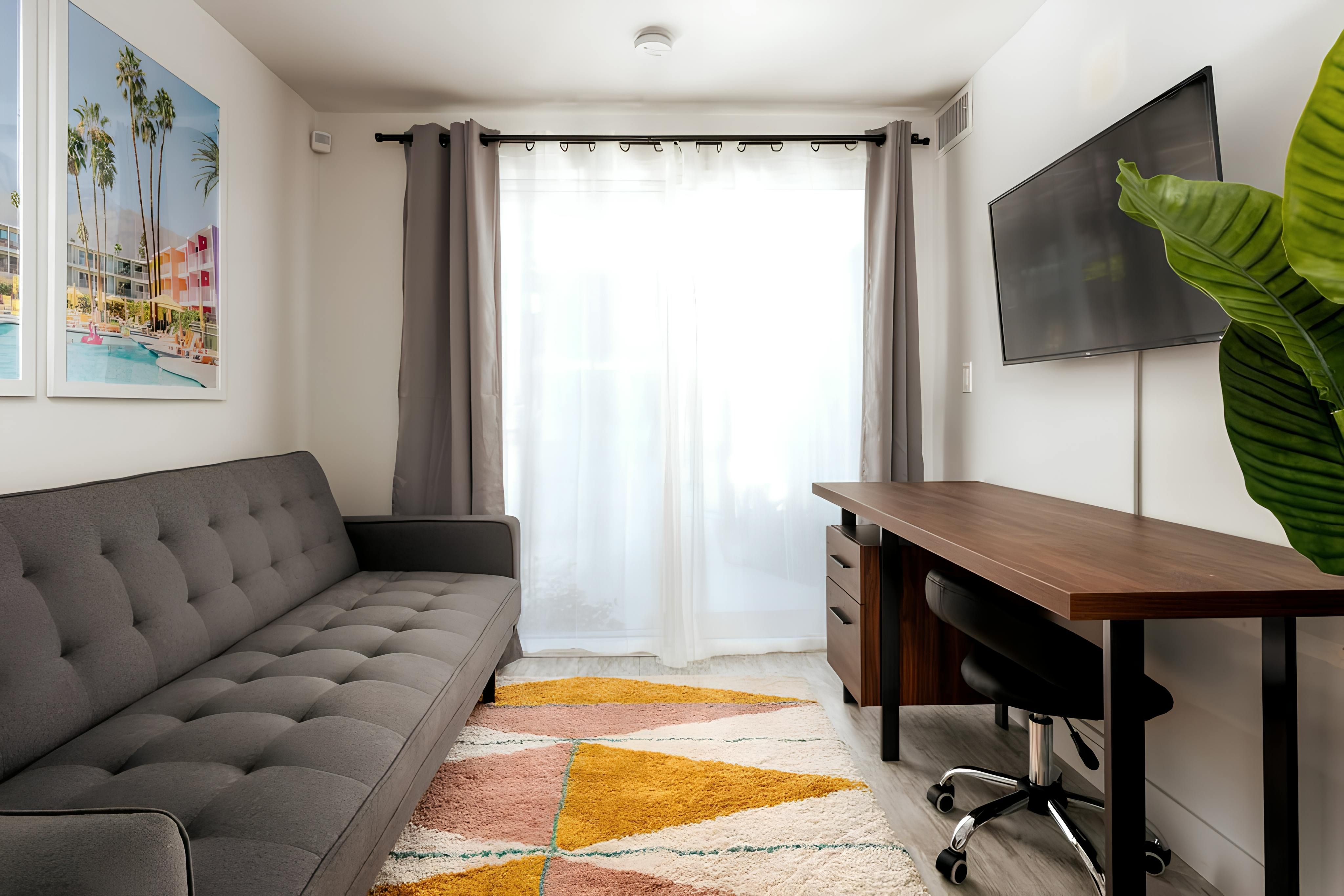 With a shimmering heated pool and Jacuzzi, as well as mountain views, this Mid-Century gem offers the perfect setting for relaxation. Cook dinner on the barbecue and then sit around the fire pit watching the sunset. The large open-plan living space is a great place to spend time with family and friends. Located close to the highly sought-after Movie Colony neighbourhood, you’ll also be just a short five-minute drive from vibrant downtown. And you’ll be within easy reach of the stunning Joshua Tree National Park.