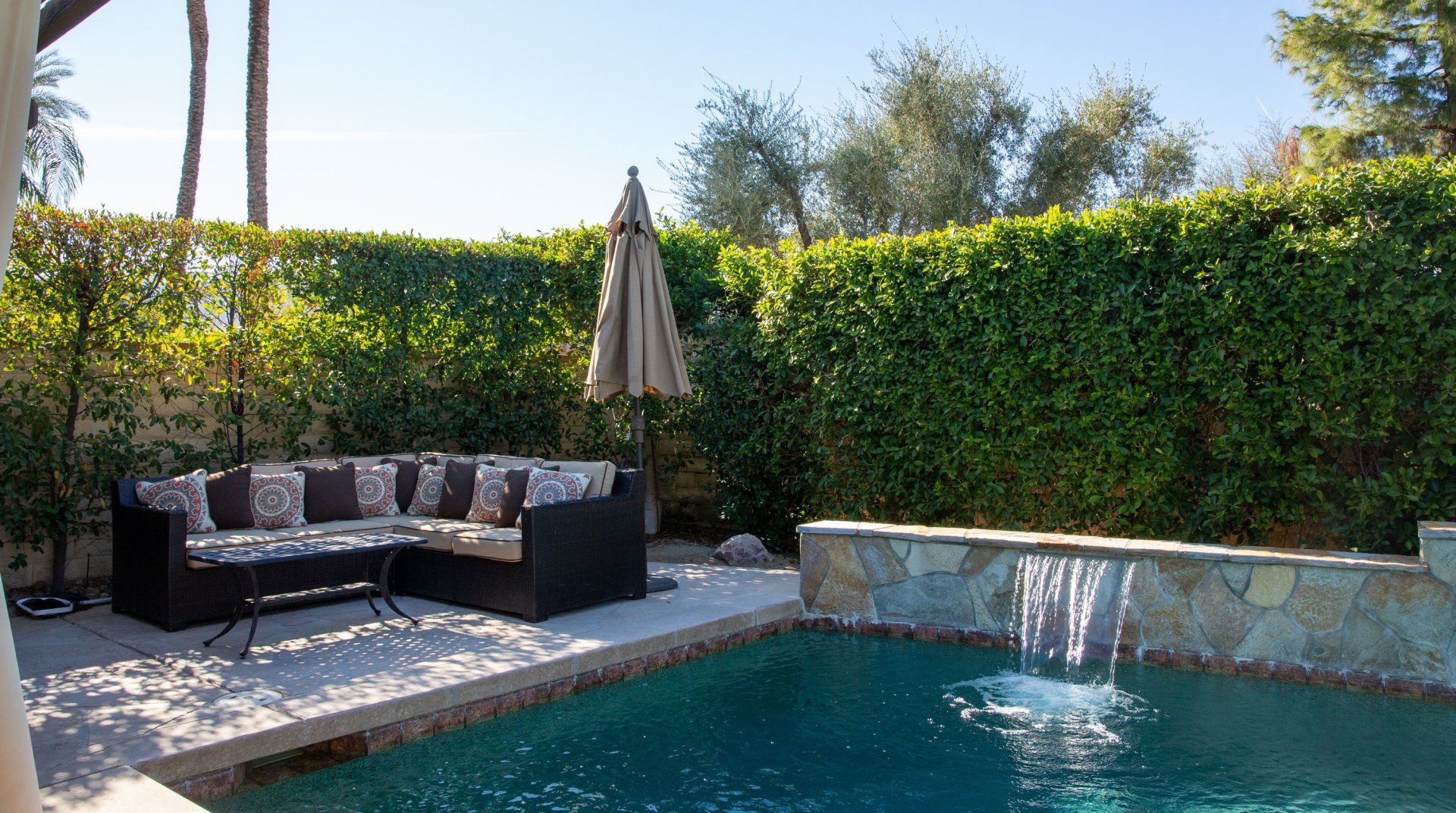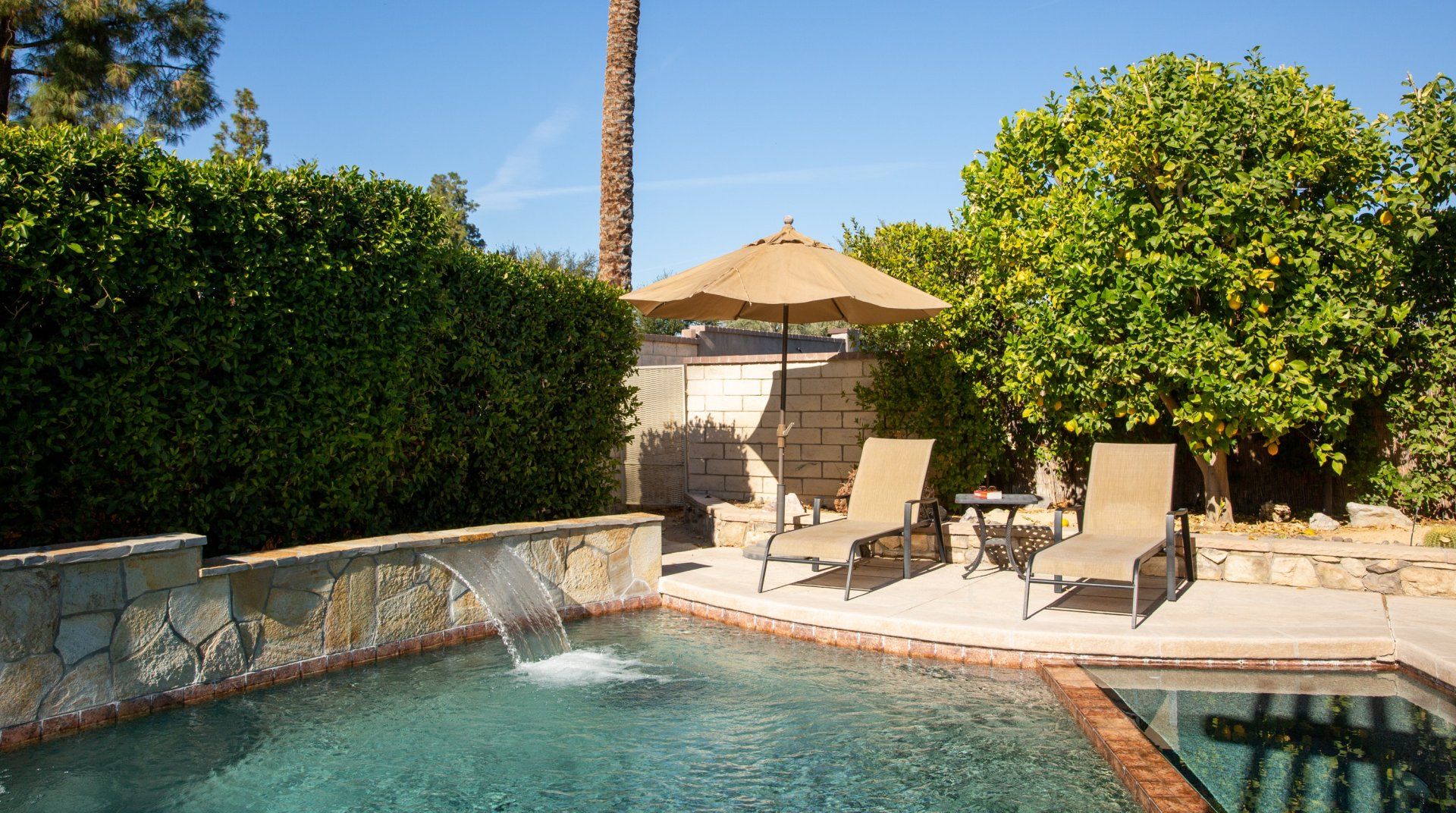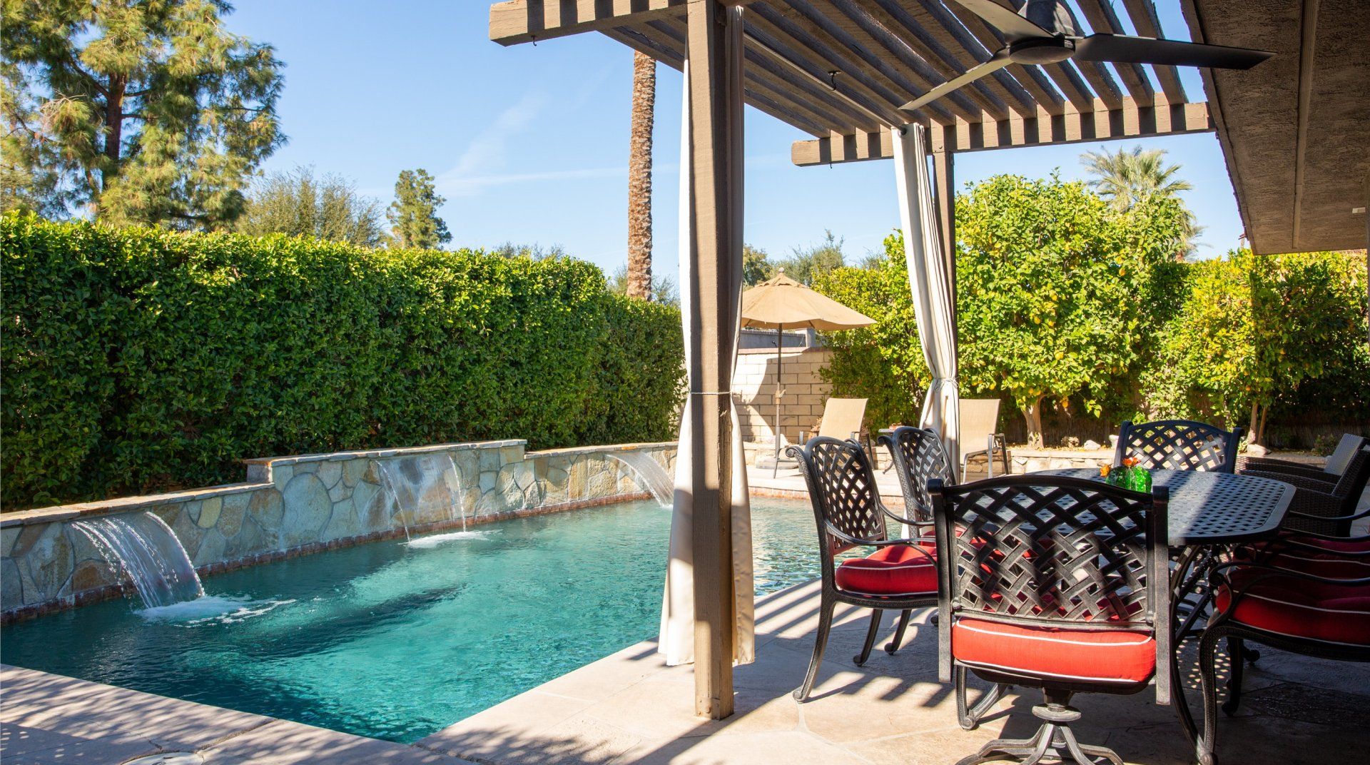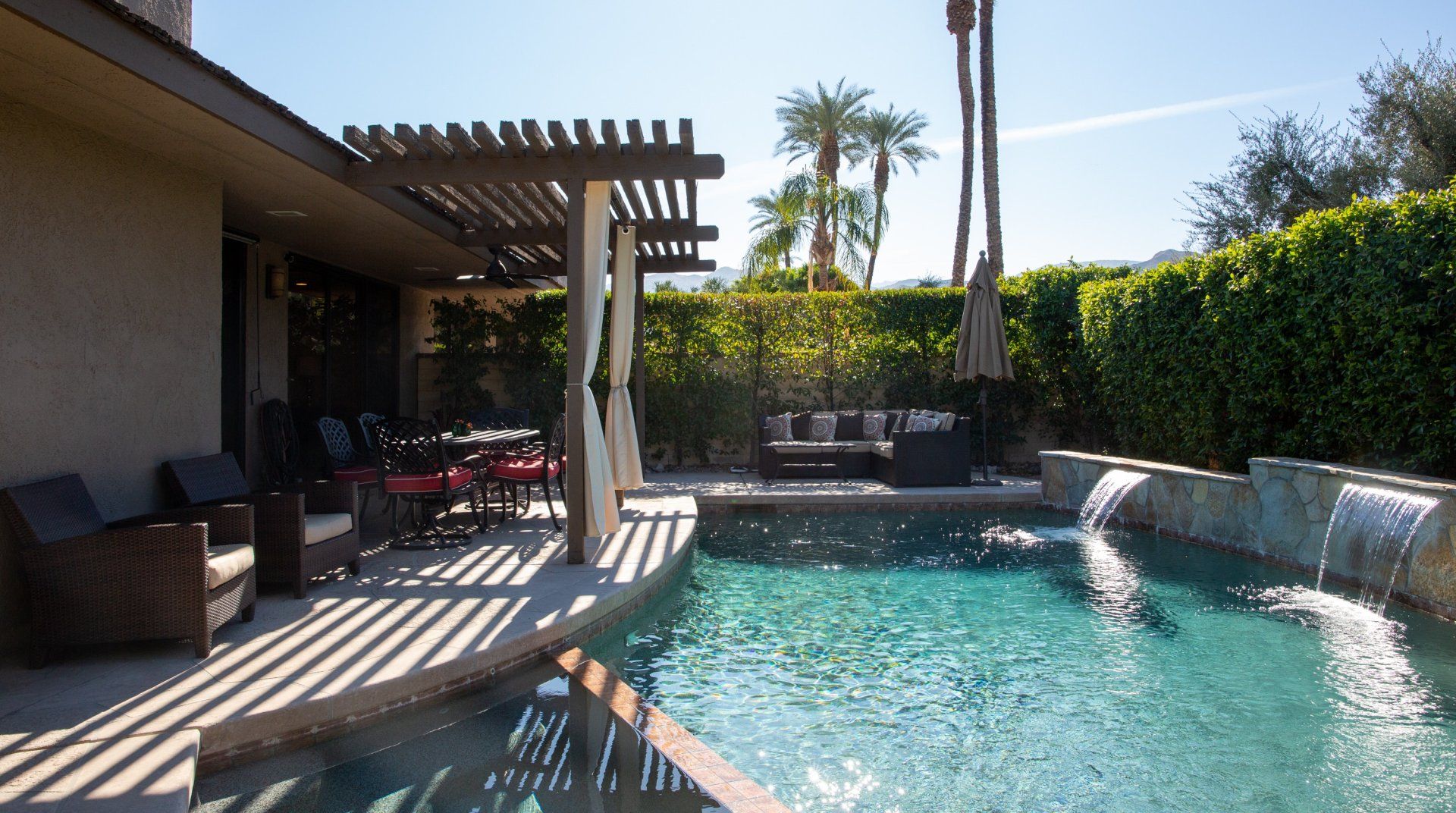Located directly on the Springs golf course in Rancho Mirage, this three-bedroom home was professionally-decorated to suit all of your needs. A fully equipped kitchen, clever design and a fabulous, heated pool in the backyard make Outback Sunrise an excellent choice for an extended stay in the Coachella Valley. Offering an integrated hot tub, plenty of sun loungers, an outdoor dining table and lush landscaping, including citrus trees, we wouldn’t blame you if you spent the majority of your trip soaking up the sunshine in the garden. If you do want to head out though, you’re just a short way from plenty of restaurants and bars, and Joshua Tree National Park is just a forty-five-minute drive away, lending itself to a perfect day trip.