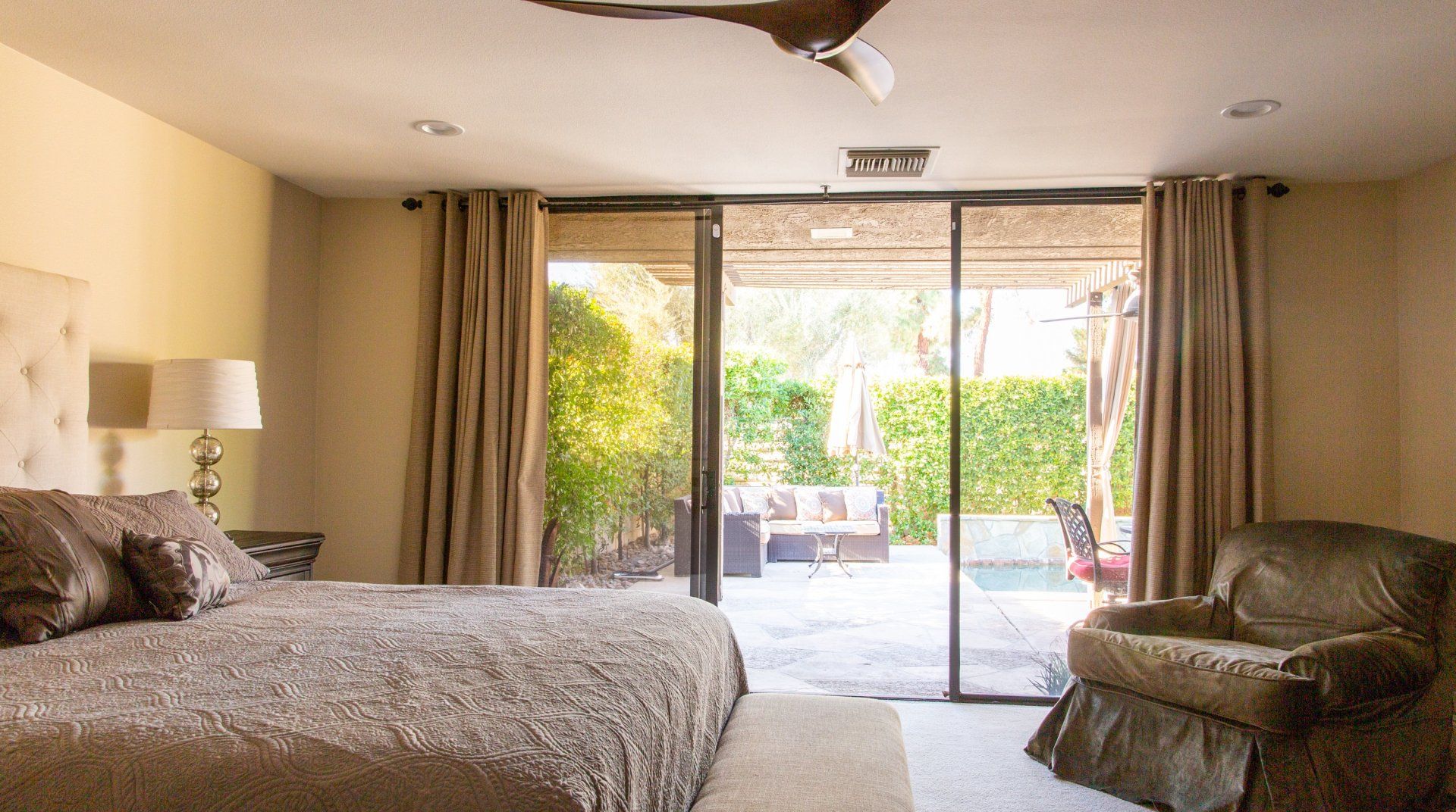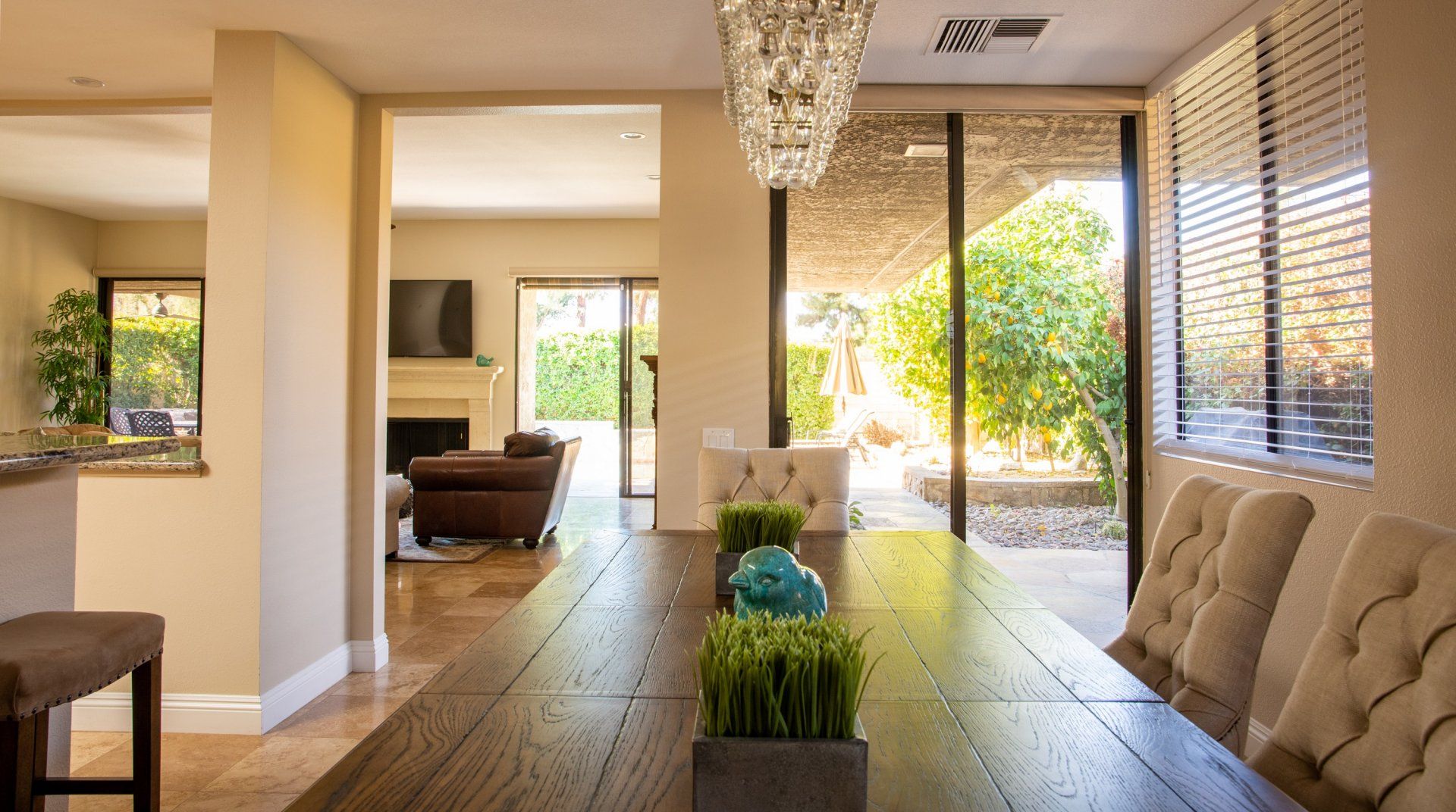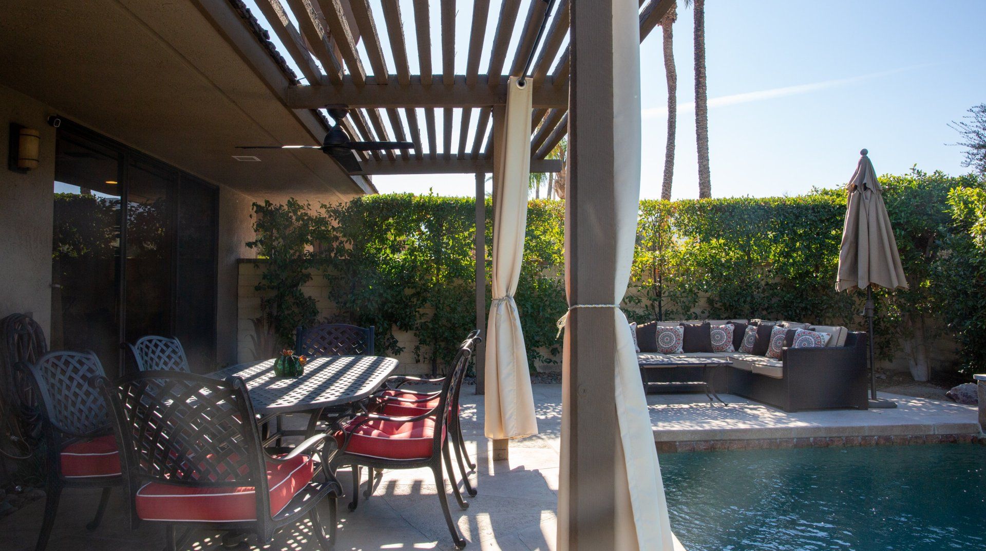 Located directly on the Springs golf course in Rancho Mirage, this three-bedroom home was professionally-decorated to suit all of your needs. A fully equipped kitchen, clever design and a fabulous, heated pool in the backyard make Outback Sunrise an excellent choice for an extended stay in the Coachella Valley. Offering an integrated hot tub, plenty of sun loungers, an outdoor dining table and lush landscaping, including citrus trees, we wouldn’t blame you if you spent the majority of your trip soaking up the sunshine in the garden. If you do want to head out though, you’re just a short way from plenty of restaurants and bars, and Joshua Tree National Park is just a forty-five-minute drive away, lending itself to a perfect day trip.