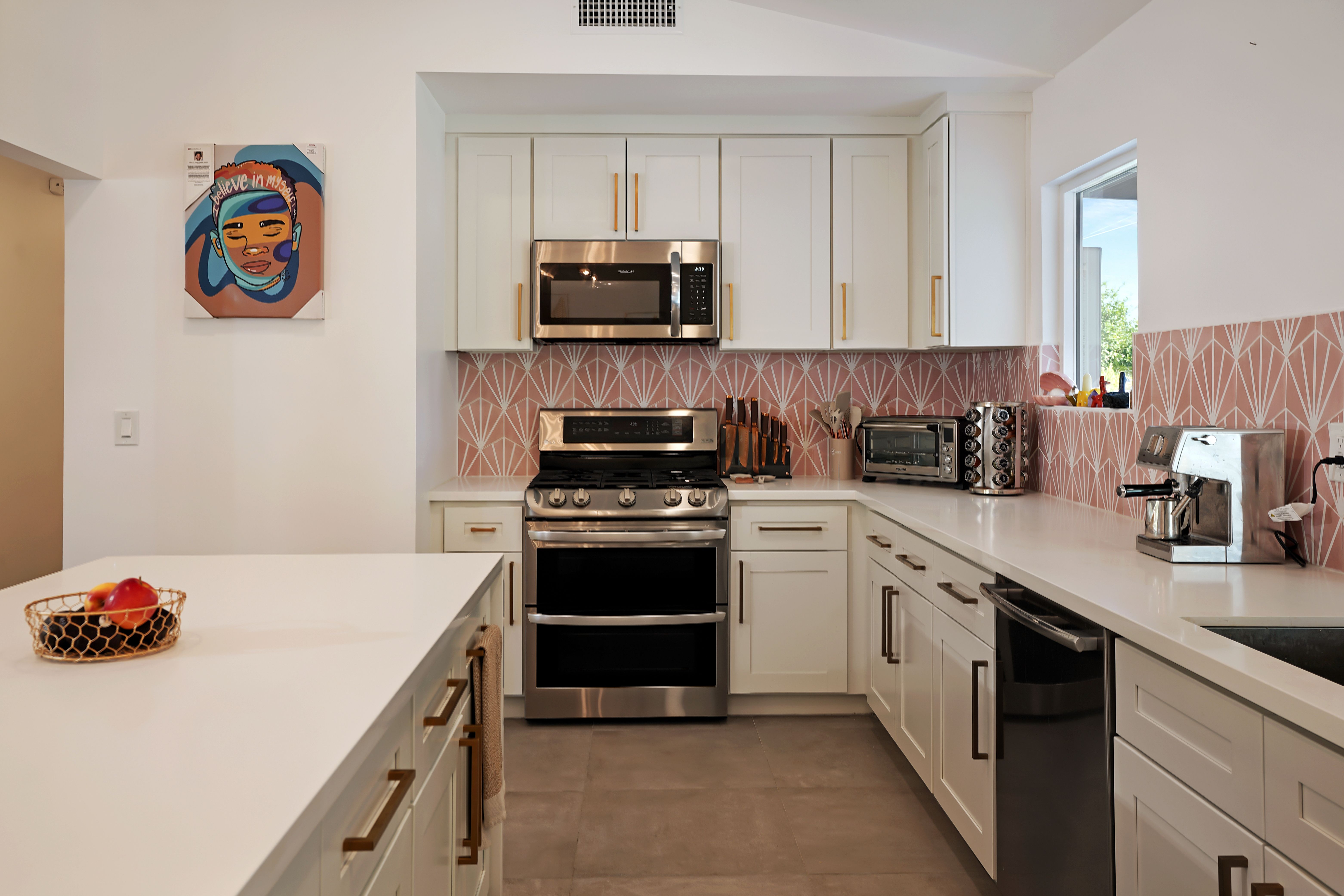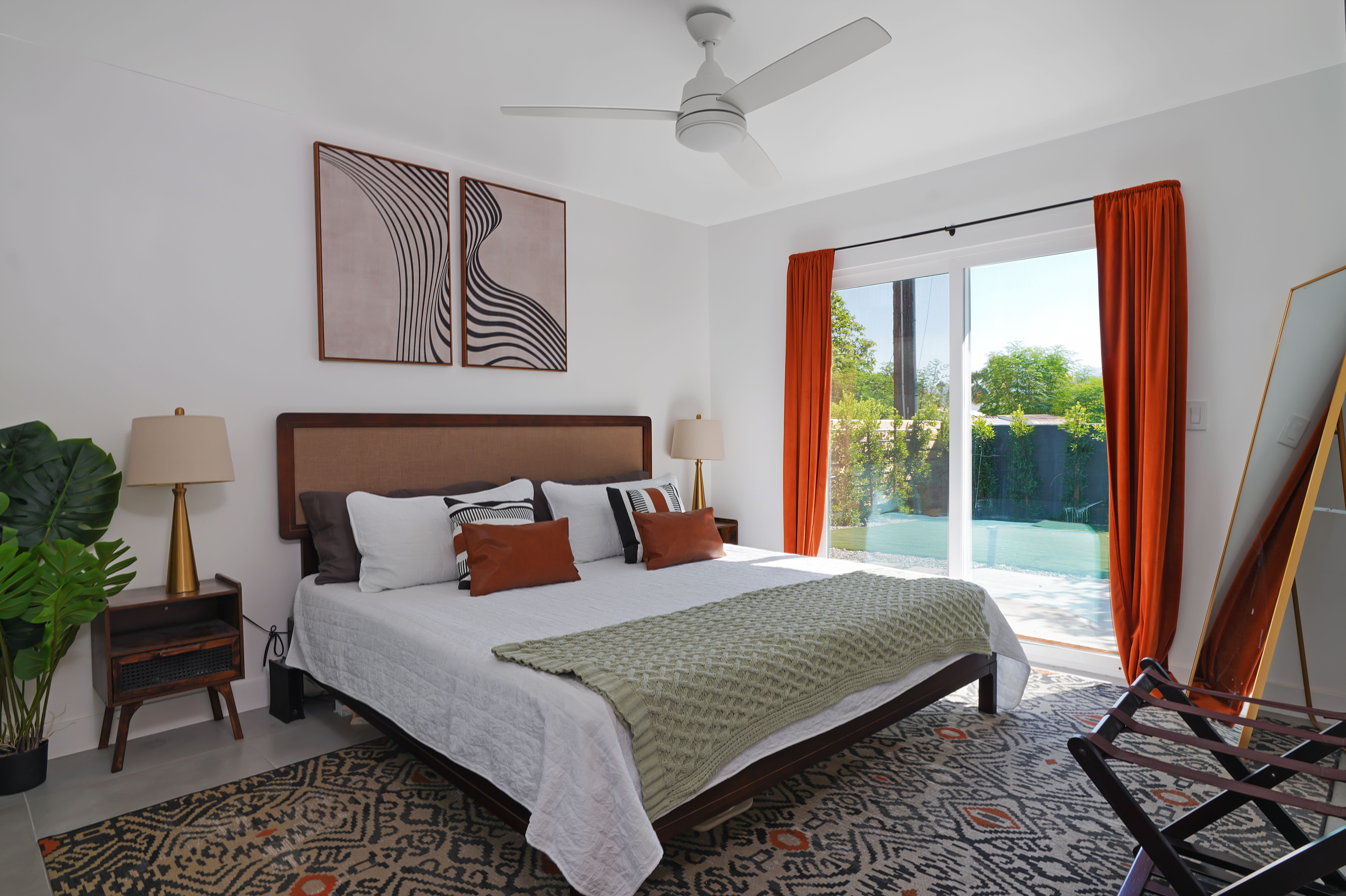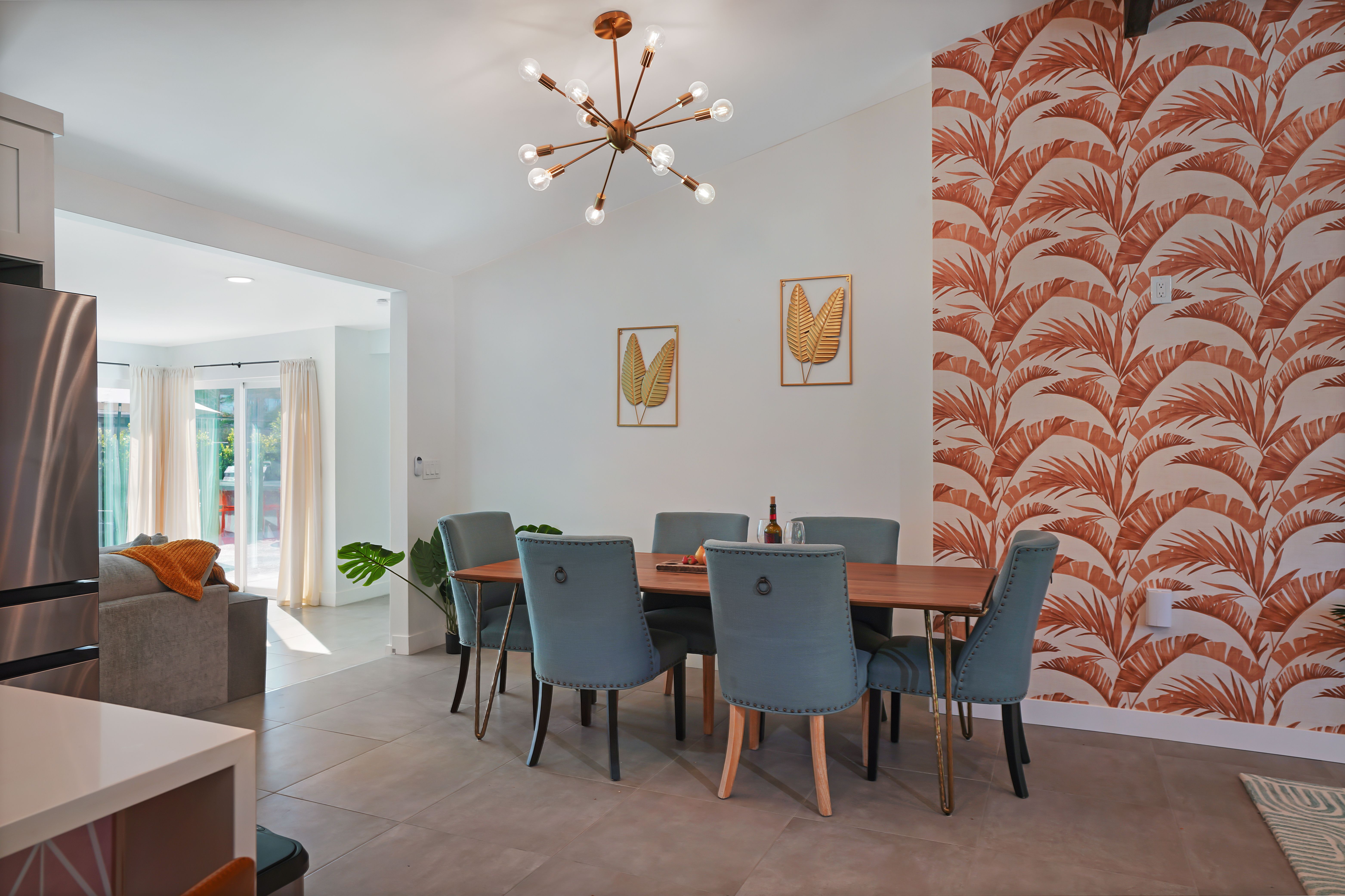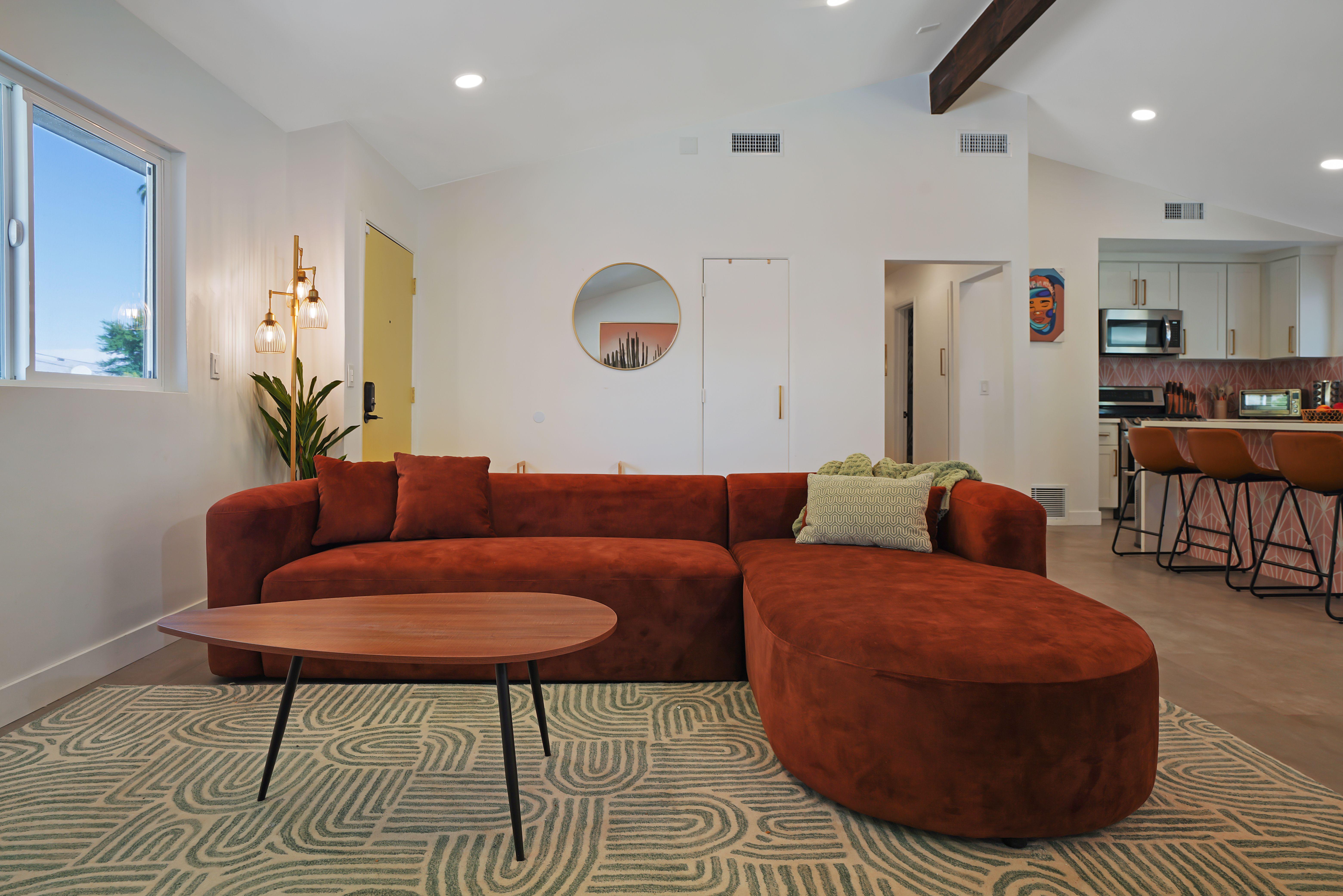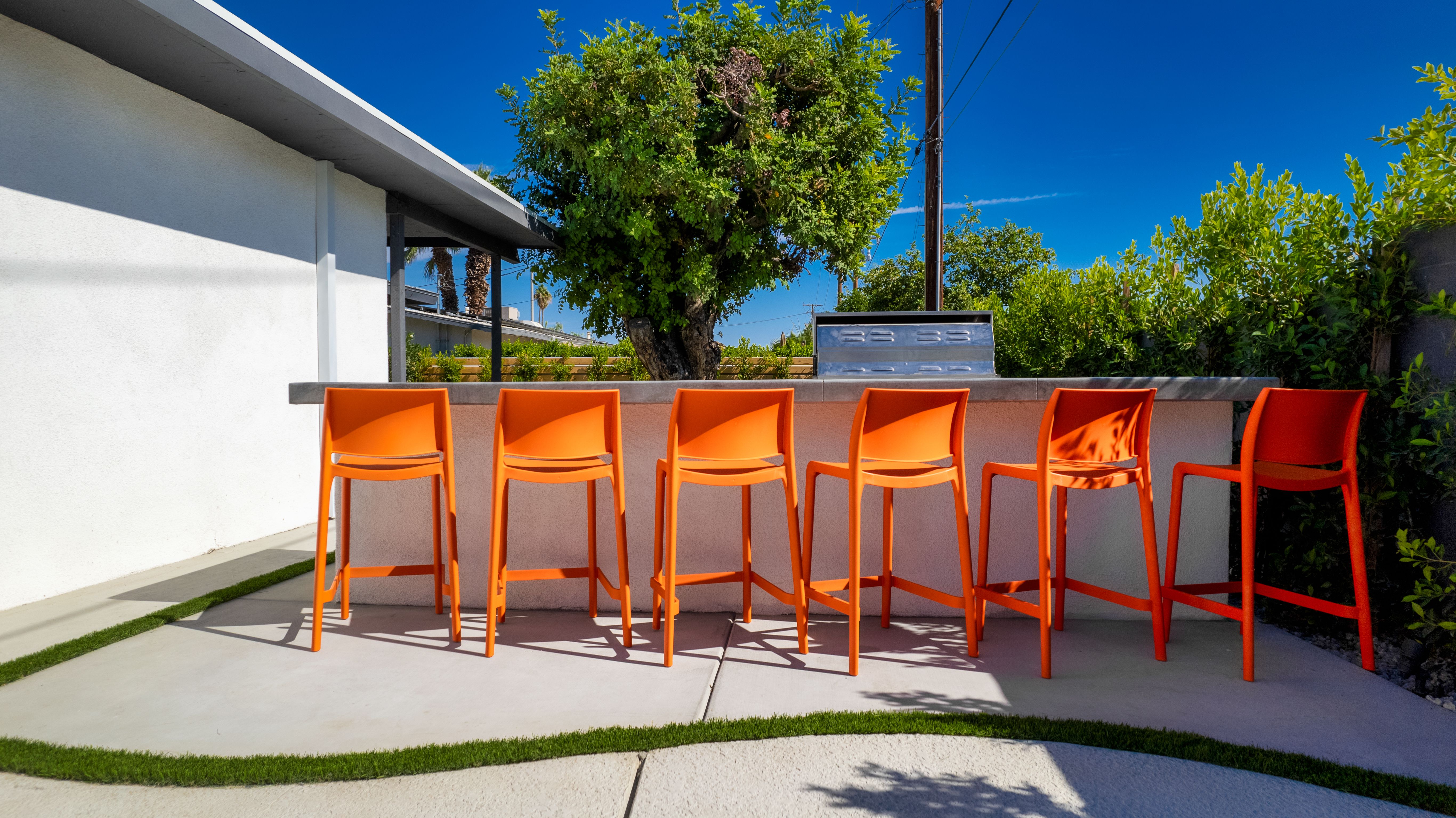 Nestled in the heart of the desert, this Palm Springs home boasts views of the surrounding mountains. The outdoor space is well set up for alfresco dining – there’s a built-in gas barbecue with bar-stool seating for casual bites as well as a dining table on the terrace – and you can cool off from the heat in the private pool. Inside, there’s plenty of space for everyone with two lounge areas to relax in and a sociable kitchen complete with breakfast bar. Location-wise, you’re just a short drive from downtown Palm Springs where you can catch some live music, grab a drink in one of the many bars, or enjoy a bite to eat.