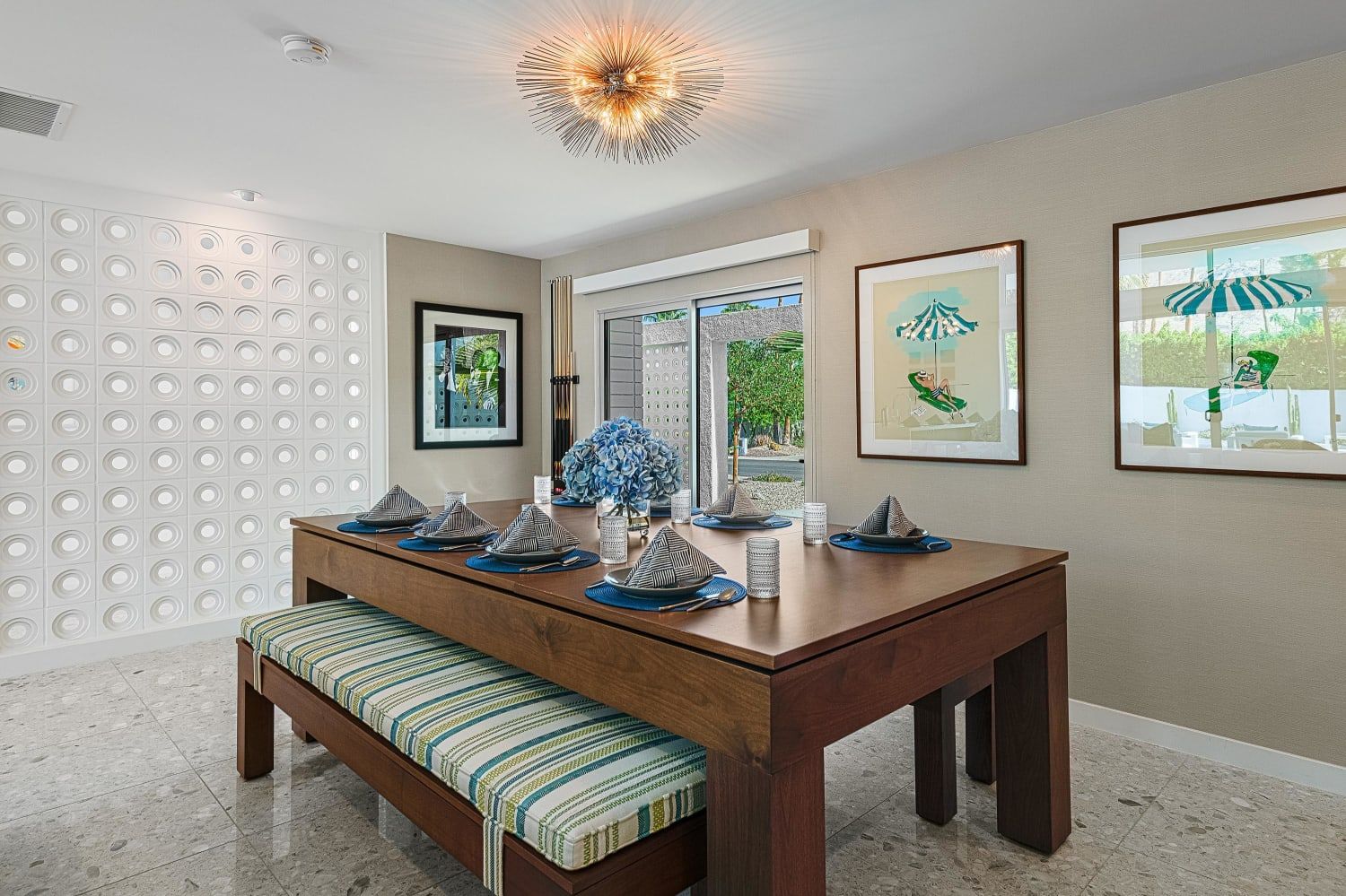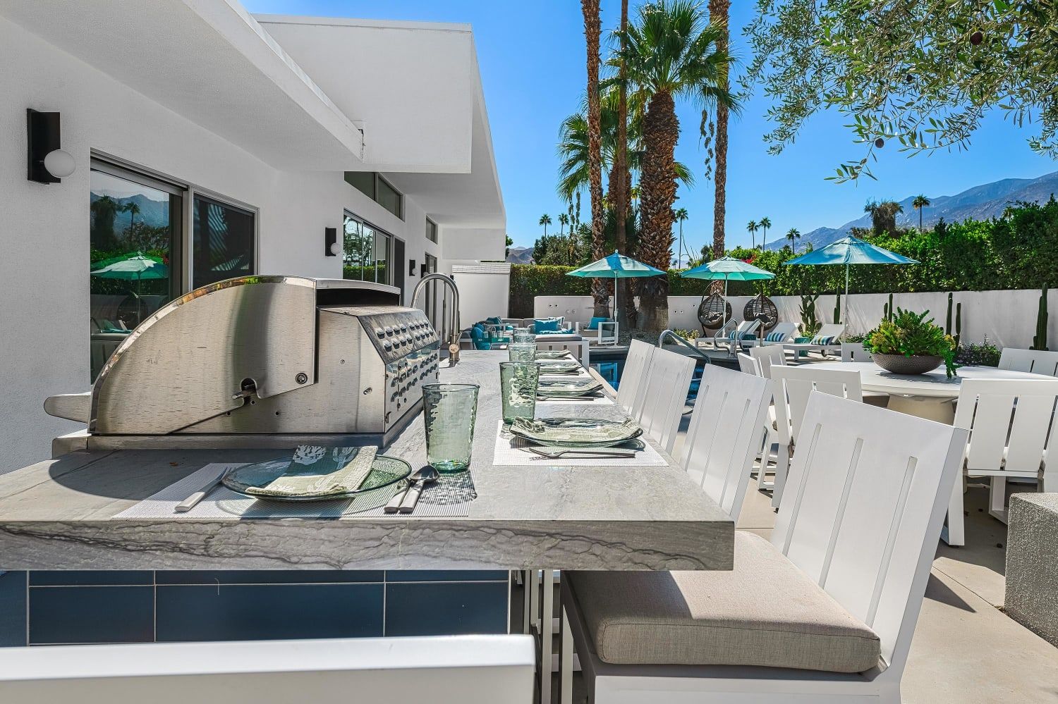 Slotting seamlessly into Palm Springs’ laidback vibe, this mid-century villa with knockout mountain views is the perfect place to soak up the sunshine after days spent on the nearby golf course or hiking through the Indian Canyons. Outdoor living is encouraged here, thanks to the private pool, hot tub, putting green and barbecue. When the temperature drops, gather around the fire pit with a glass of your favourite tipple in hand. Head inside, and you’ll find a sociable living area with a billiards table for keeping the young at heart entertained.