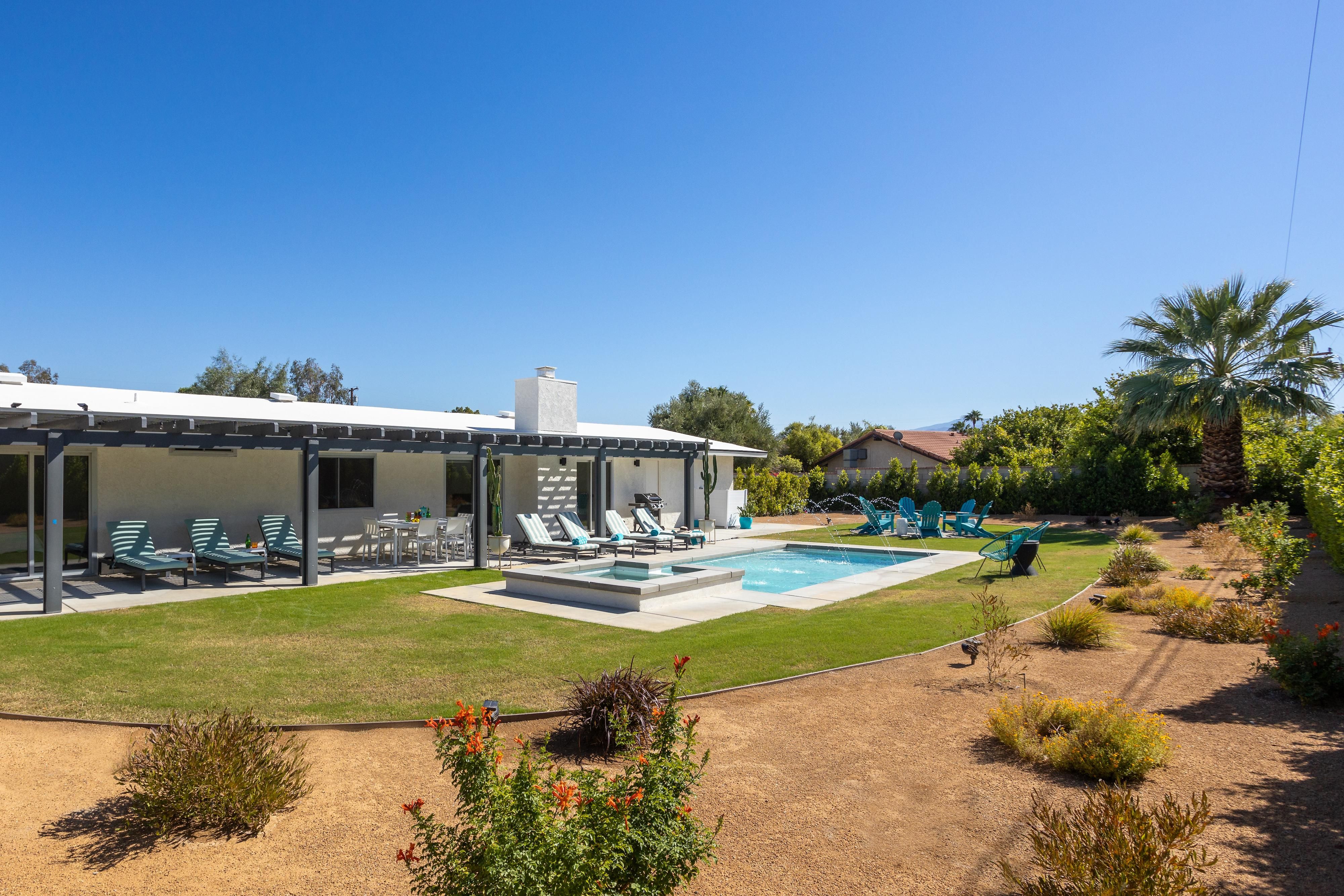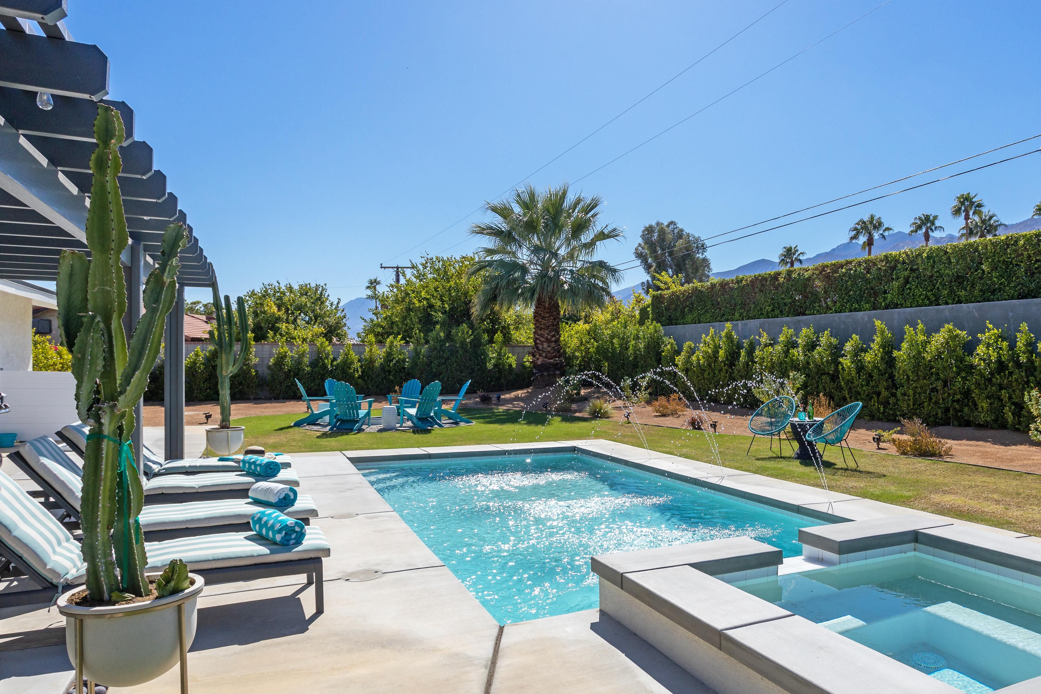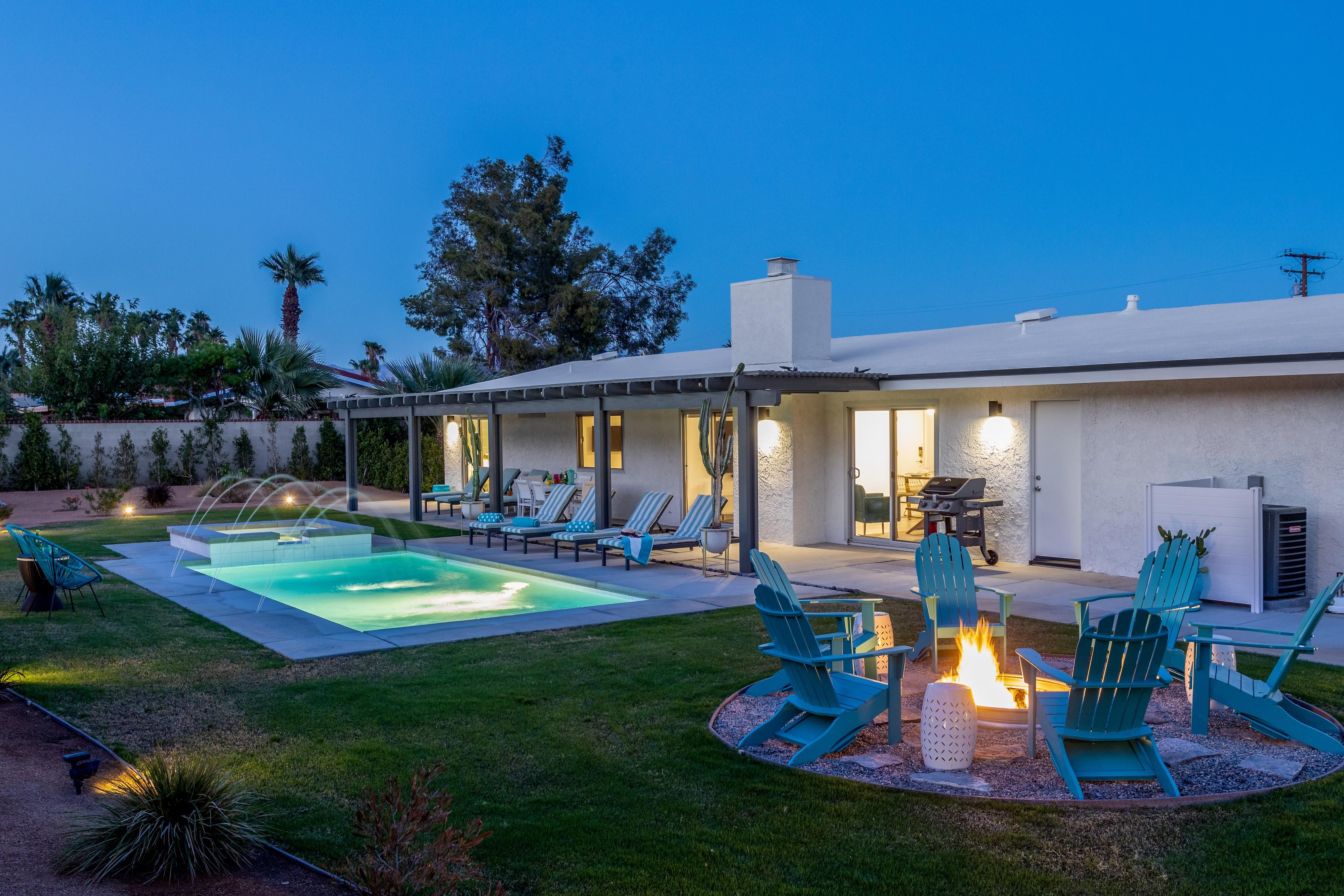 This stylish and inspired home is tucked away just minutes from downtown Palm Springs. Slip into the waters of the luxurious saltwater pool and Jacuzzi for a day of unwinding and pampering, perfect for anyone wanting to get away from it all for a little while. Sprawl out on the poolside chaise lounges and fan yourself as the sun beats down, or work from home with the dedicated desk in the main bedroom. With walls of glass making the seamless transition from indoors to outdoors, it won't matter if you're sitting around the fireplace in the evening telling stories, or sitting around the fire pit under the stars – this home will ensure you're making the most of your trip. If you're travelling with kids, boredom will become a thing of the past with plenty of garden games to keep them occupied. Get out on that vibrant green lawn and get some valuable family time in during the day. Or hop on the bicycles and go for a ride around the neighbourhood – it's the perfect way to get to know the area while staying active.
