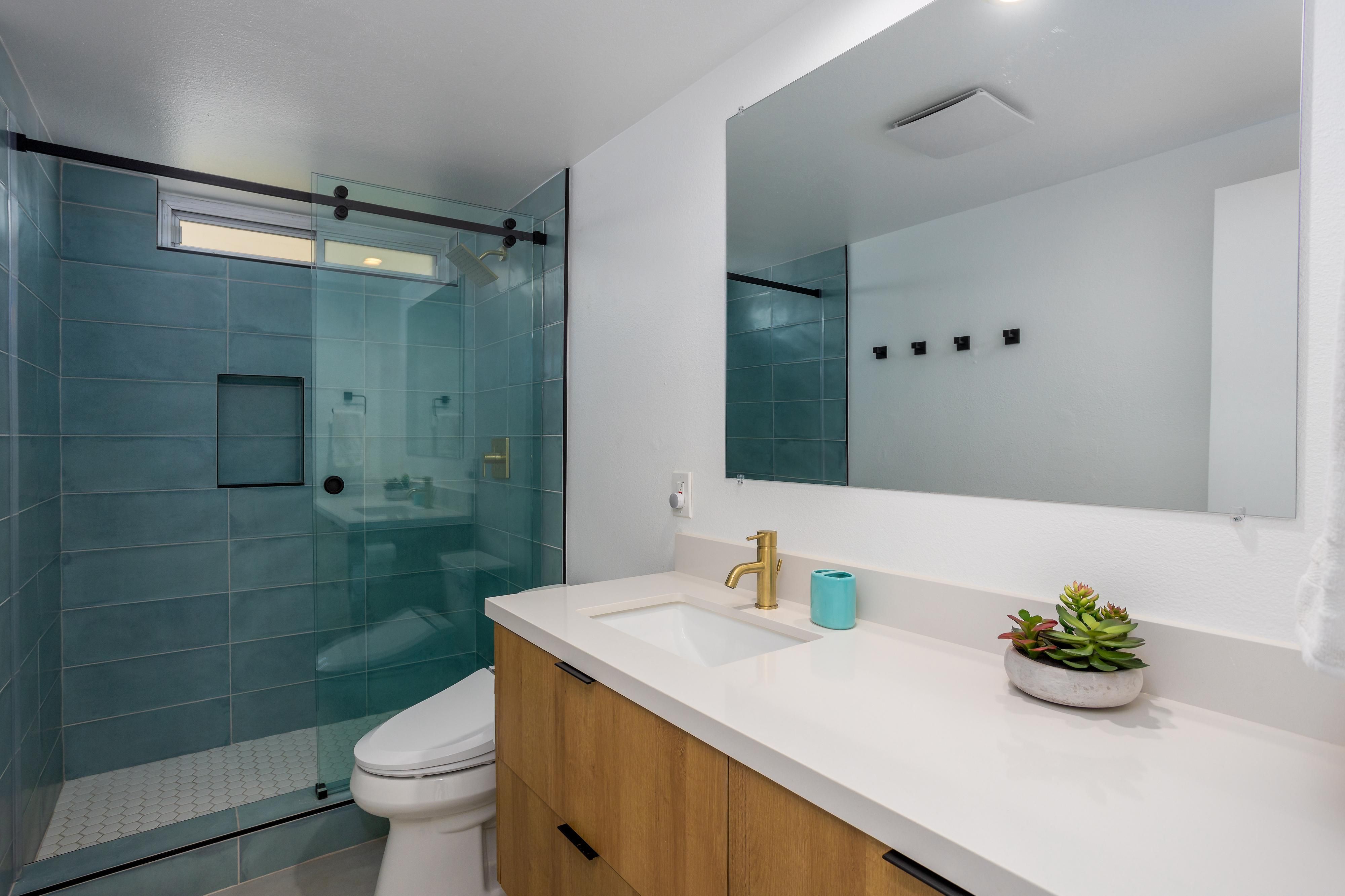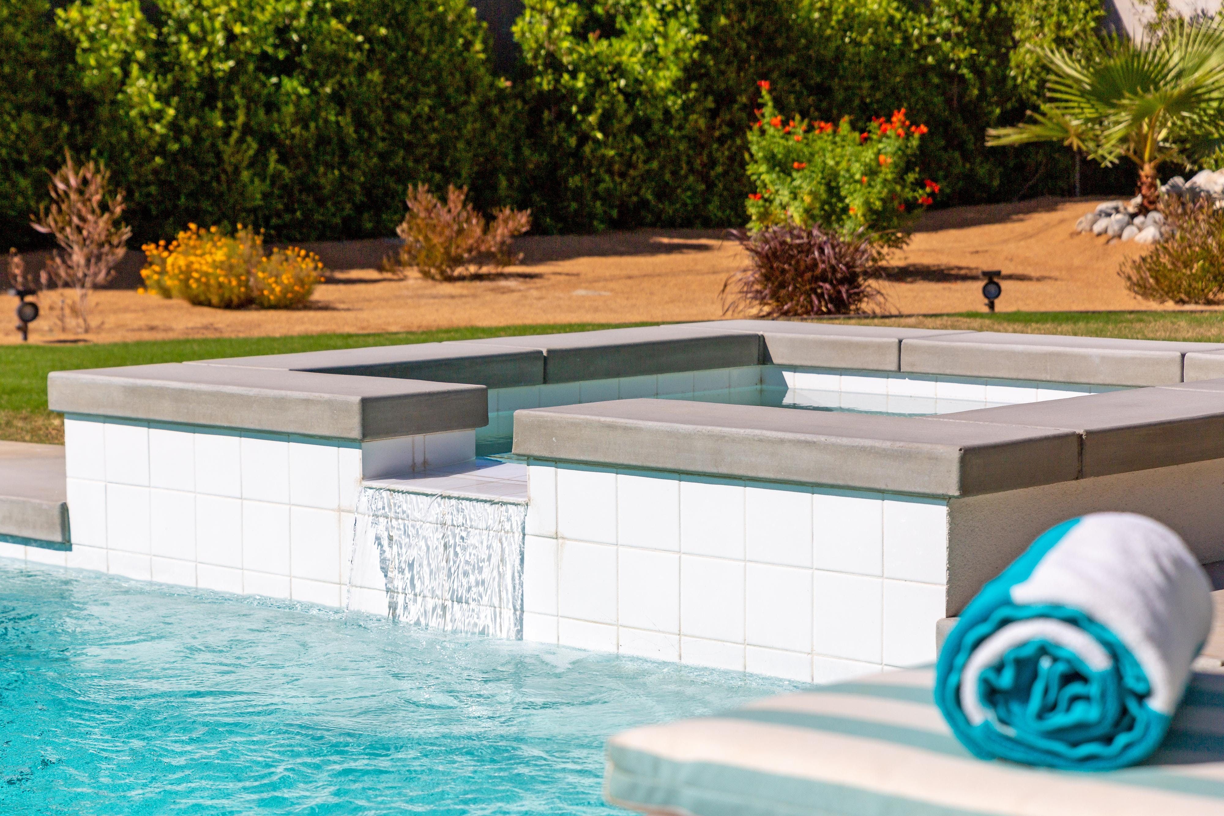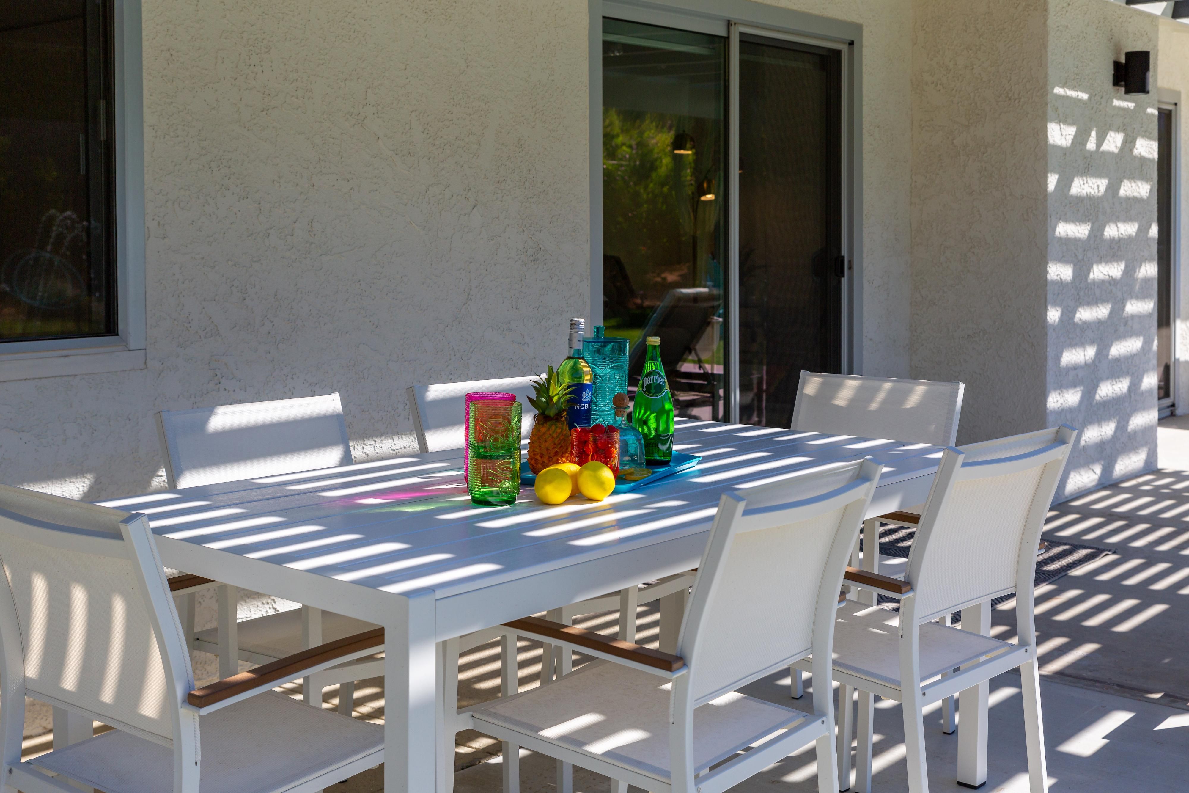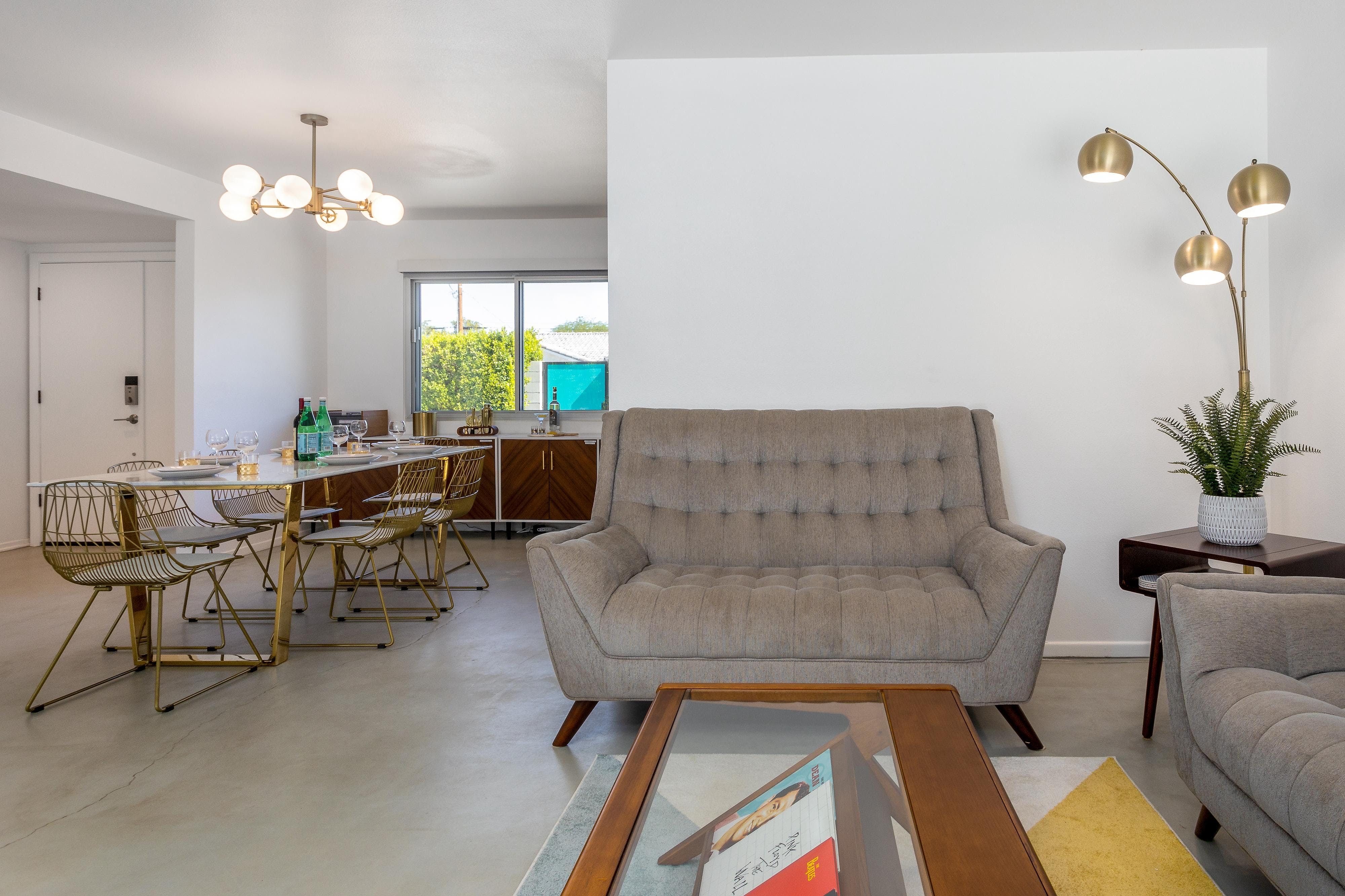 This stylish and inspired home is tucked away just minutes from downtown Palm Springs. Slip into the waters of the luxurious saltwater pool and Jacuzzi for a day of unwinding and pampering, perfect for anyone wanting to get away from it all for a little while. Sprawl out on the poolside chaise lounges and fan yourself as the sun beats down, or work from home with the dedicated desk in the main bedroom. With walls of glass making the seamless transition from indoors to outdoors, it won't matter if you're sitting around the fireplace in the evening telling stories, or sitting around the fire pit under the stars – this home will ensure you're making the most of your trip. If you're travelling with kids, boredom will become a thing of the past with plenty of garden games to keep them occupied. Get out on that vibrant green lawn and get some valuable family time in during the day. Or hop on the bicycles and go for a ride around the neighbourhood – it's the perfect way to get to know the area while staying active.