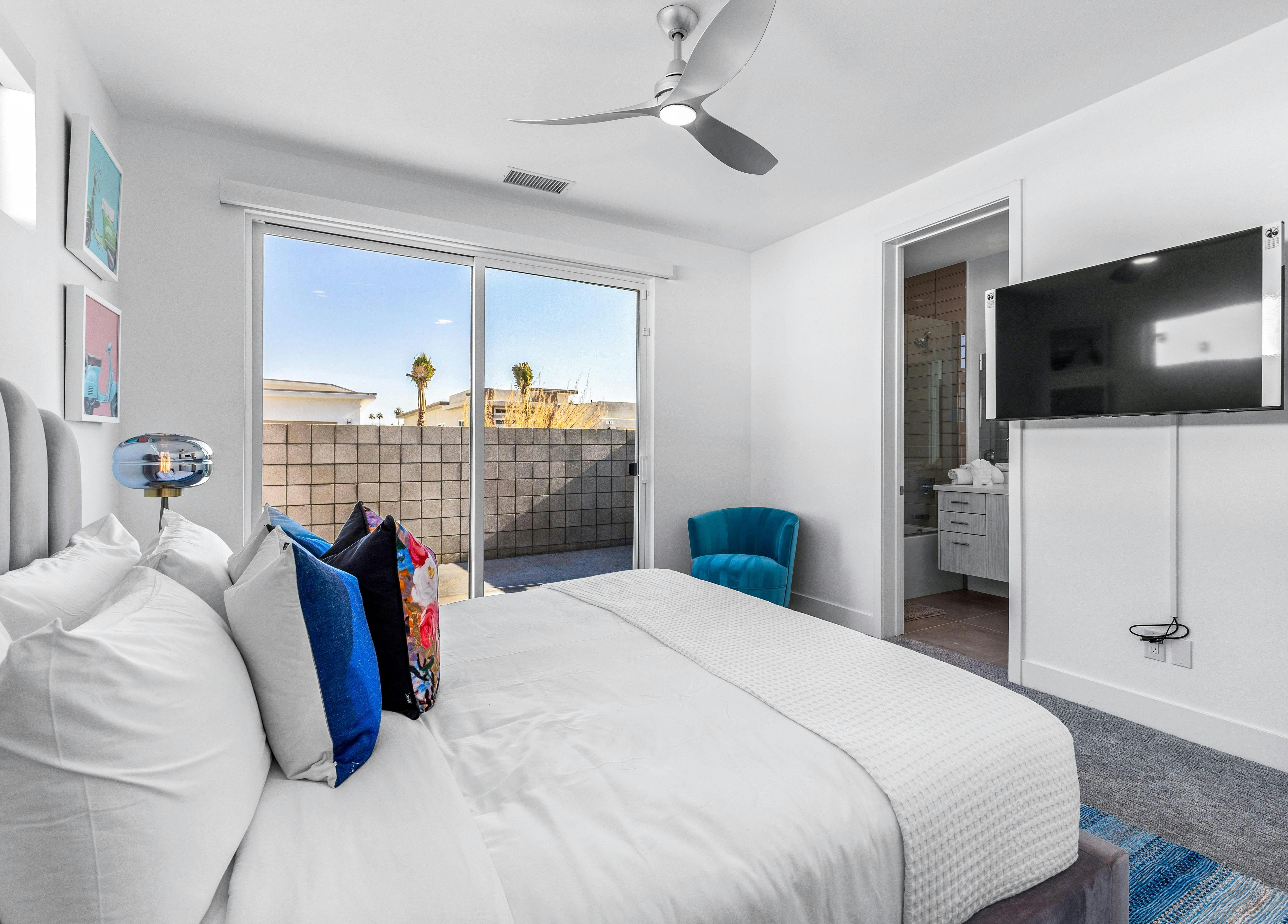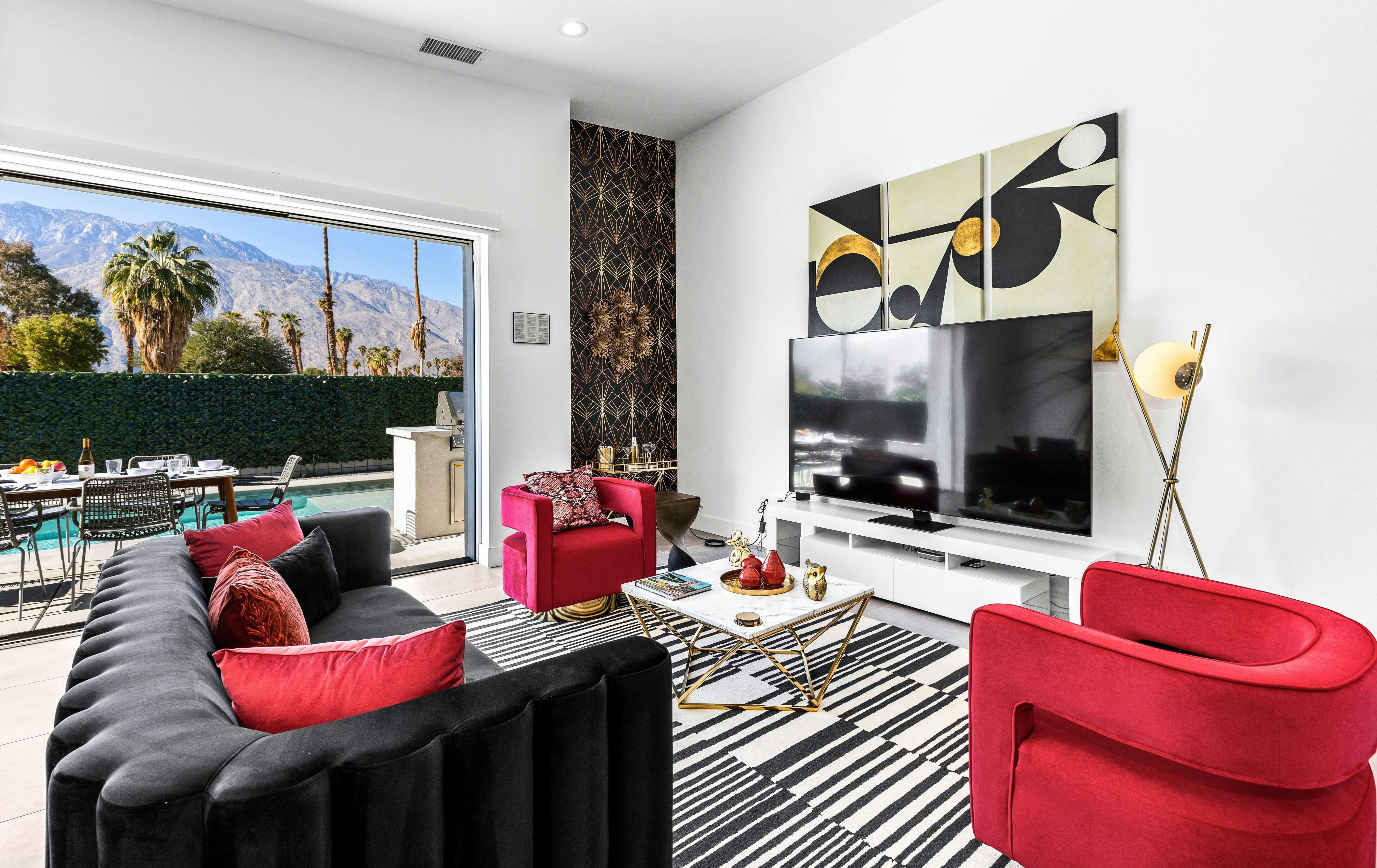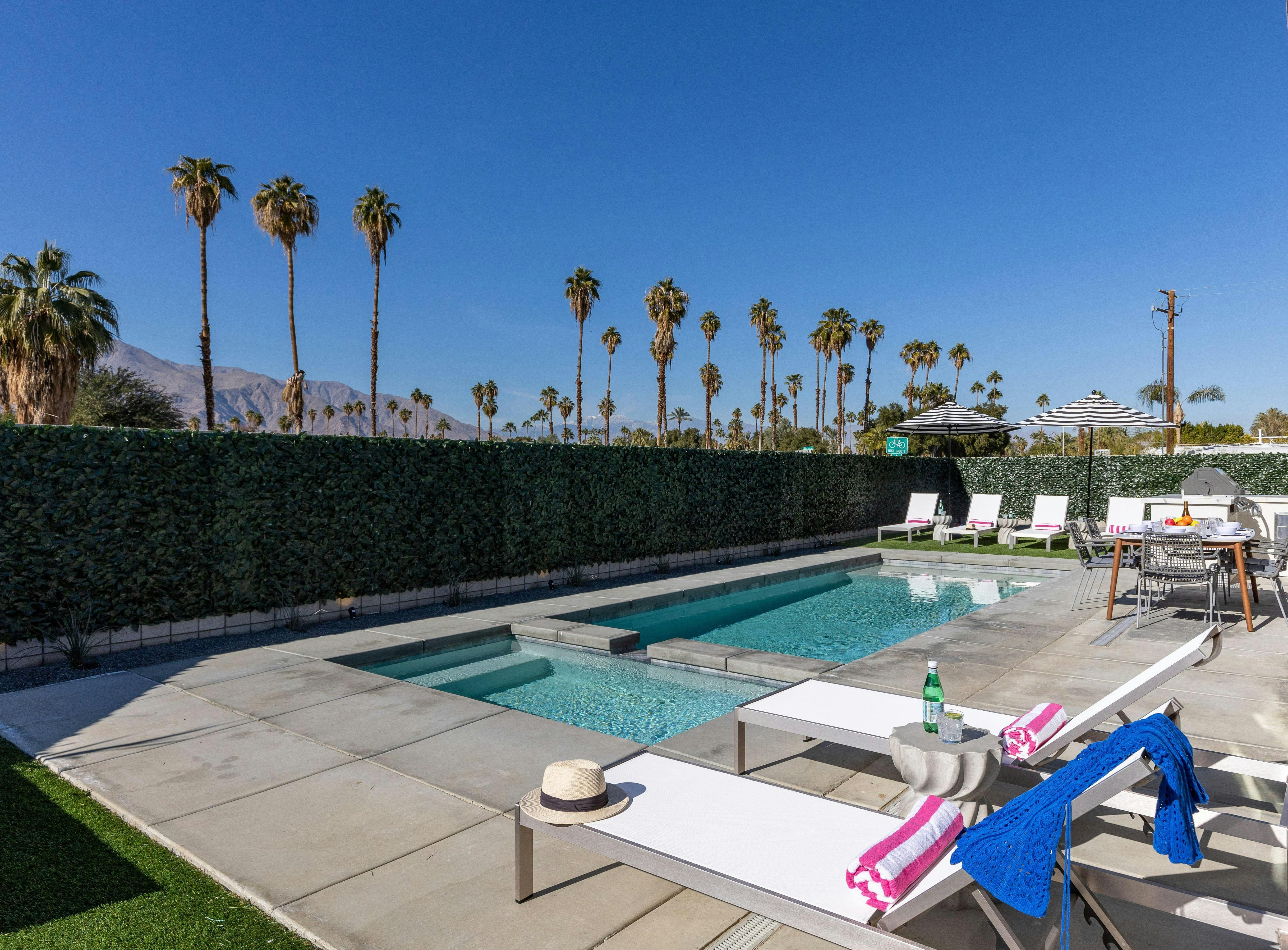 Looking for that laid-back Palm Springs magic? You’ve just found it. This sun-soaked home blends vintage Hollywood vibes with all the comforts of modern living – with large bedrooms with king-sized beds (each with their own ensuite), there’s plenty of space for your crew to spread out and relax. Slide open the glass doors and step into your own private oasis – think pool dips, hot tub soaks, al fresco dinners, and late-night chats around the firepit. And when you’re ready to venture out, you’re just minutes from downtown and even closer to nature, with the Prescott Preserve nearby – and Joshua Tree National Park is an easy day trip away, too.