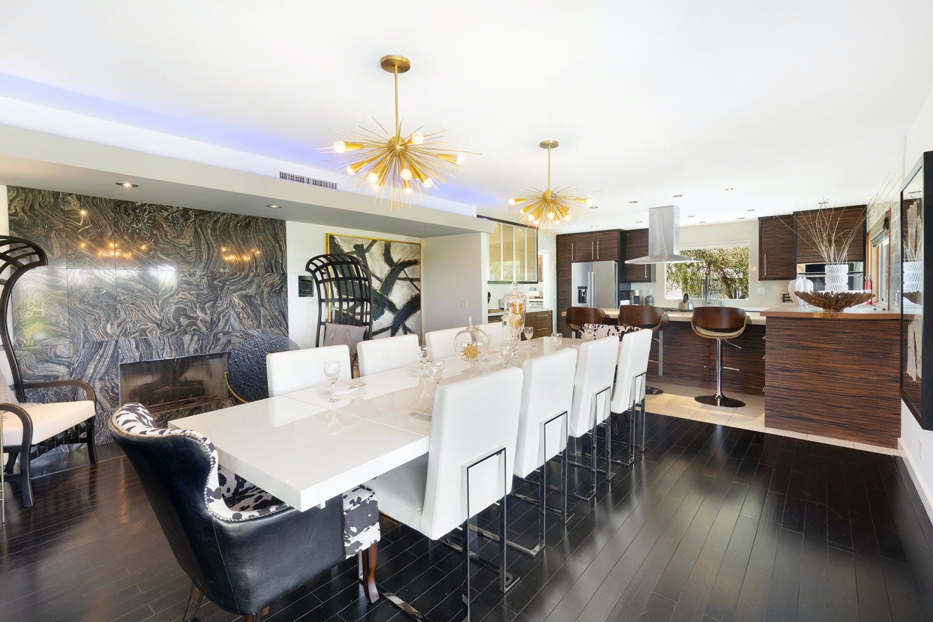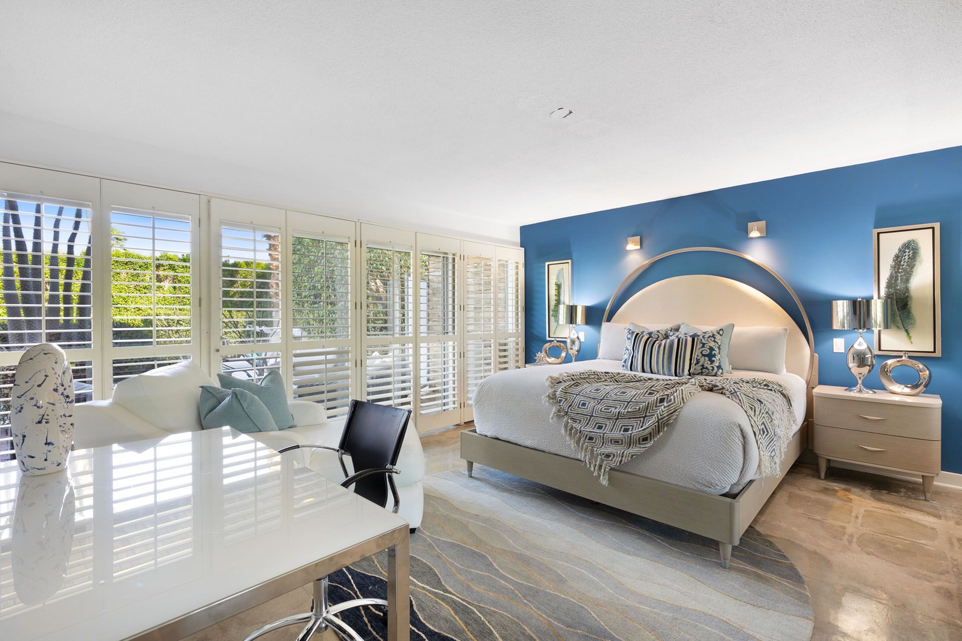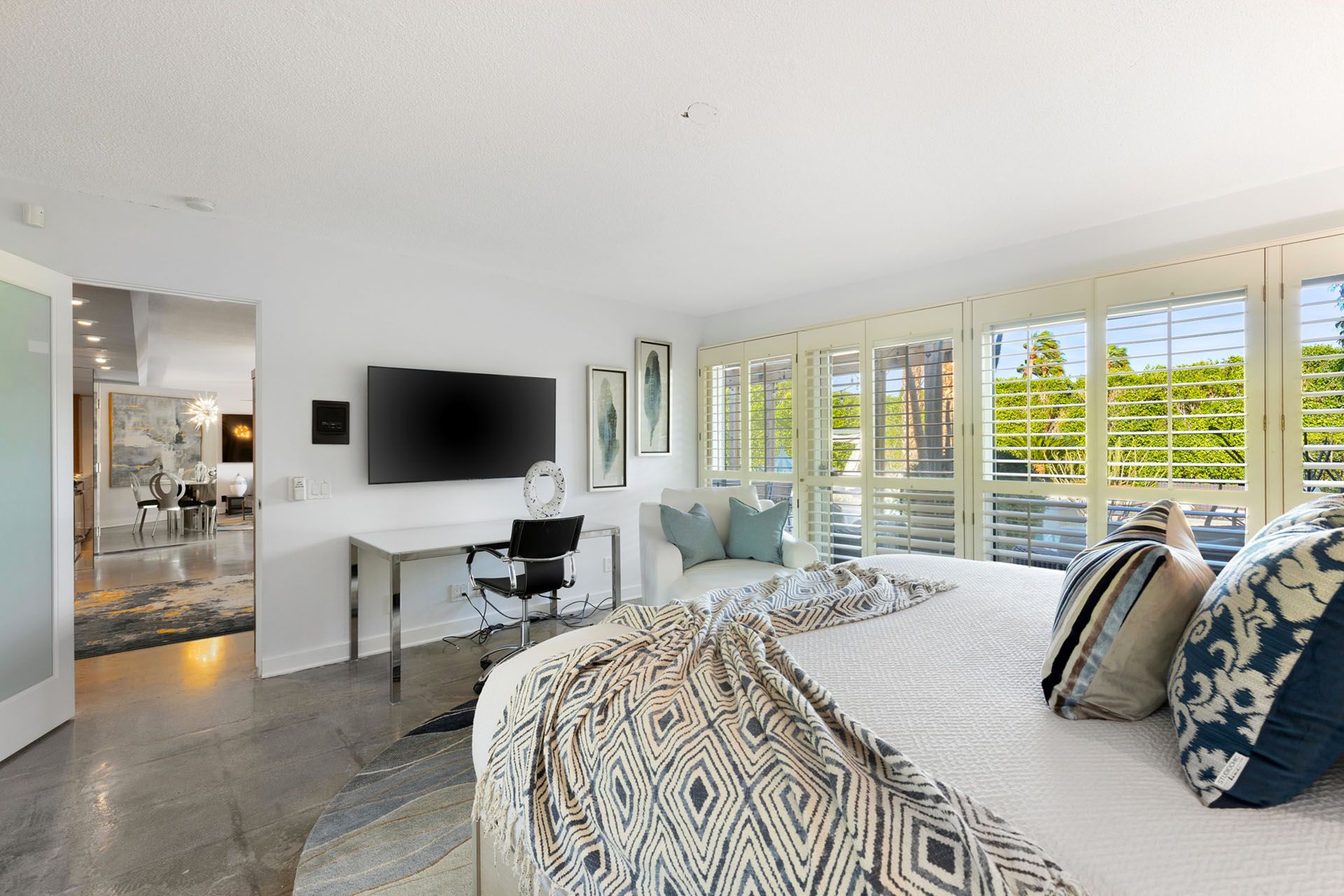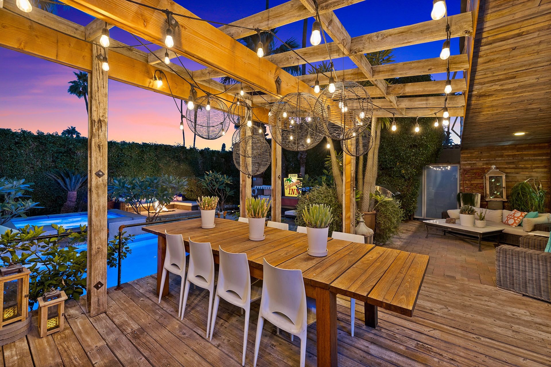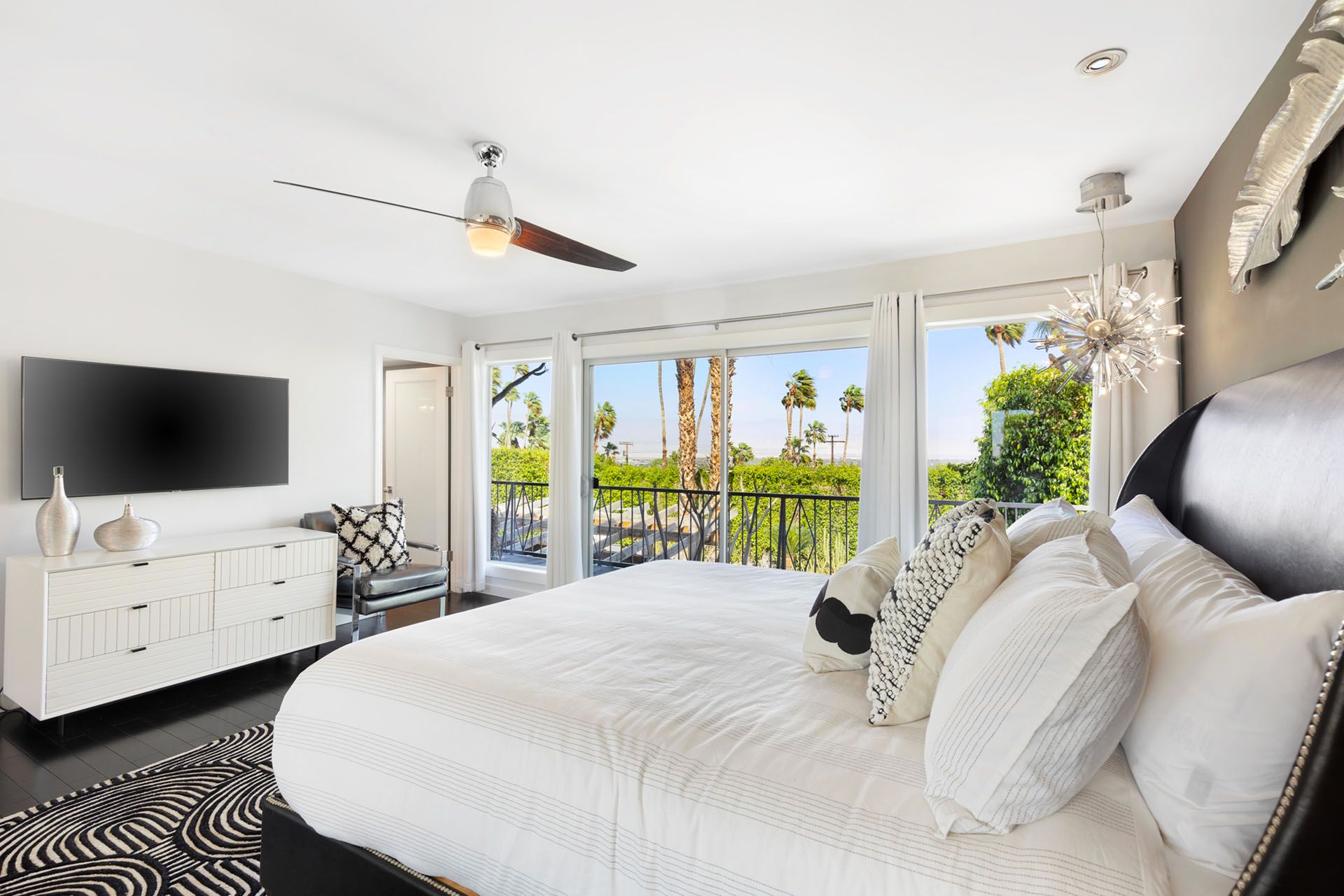 This 60’s Palm Springs oasis makes a strong case for outdoor living. With two private pools, a Baja bar with loungers, a canopied daybed and a sofa area, it’s likely that most of the holiday will be spent poolside – thought it might be hard to choose which one you set up camp by. Take in the extraordinary view of the mountains during the day, and at night get the fire pit going and turn on the fairy lights for a dinner party under the stars. You’ll feel a tranquility and privacy here, thanks to the verdant hedges, but you’ll still see swaying palm trees overhead, whether you’re on the tanning deck or swimming laps. Inside, three kitchens and three living spaces give this home a compound feel perfect for large groups. The stylish design affords plenty of privacy thanks to the divided living areas, but when it’s time to come together, the large dining table is perfect for hosting meals all together – that is if you aren’t eating at the grogeous wooden table outside. And after a long day of sunshine, plush bedroom suites with beautiful views invite a good night of beauty rest. When you’re ready to pry yourself away from this magical compound, you’ll find yourself just a four-minute drive from the Uptown Design District of Downtown Palm Springs. Visit the Palm Springs Art Museum, hike at Indian and Tahquitz Canyons and frequent the many restaurants, coffee shops, golf courses and cabarets of this lovely desert resort town.
