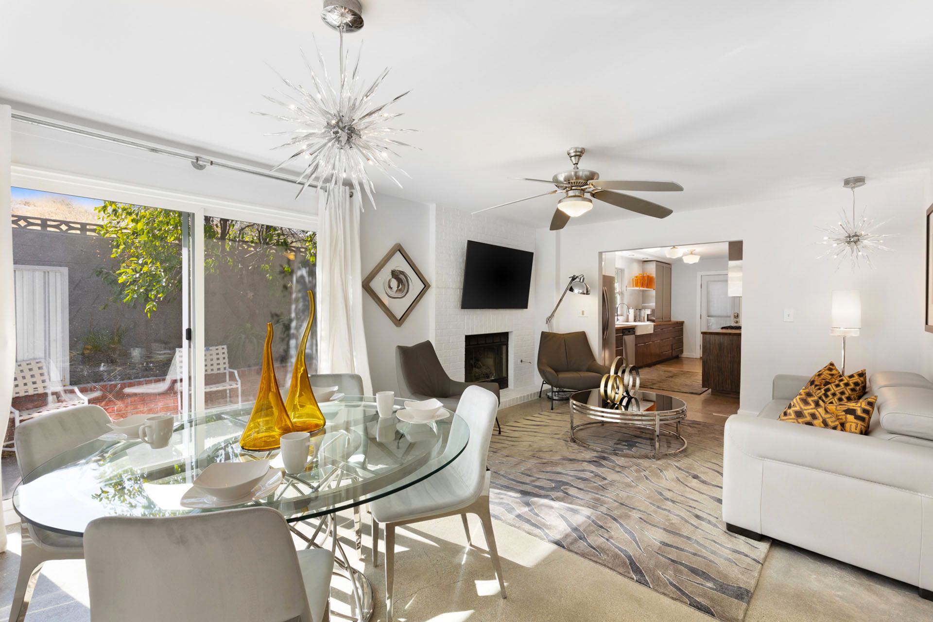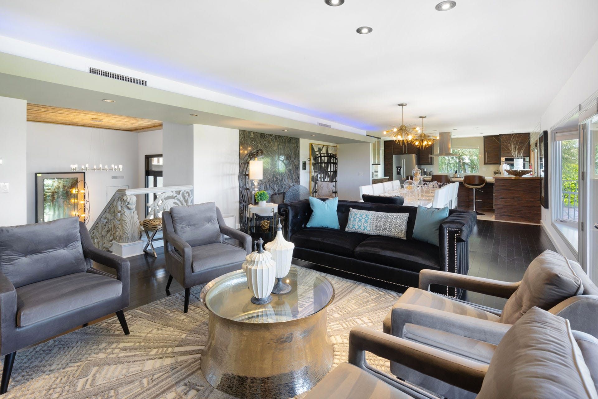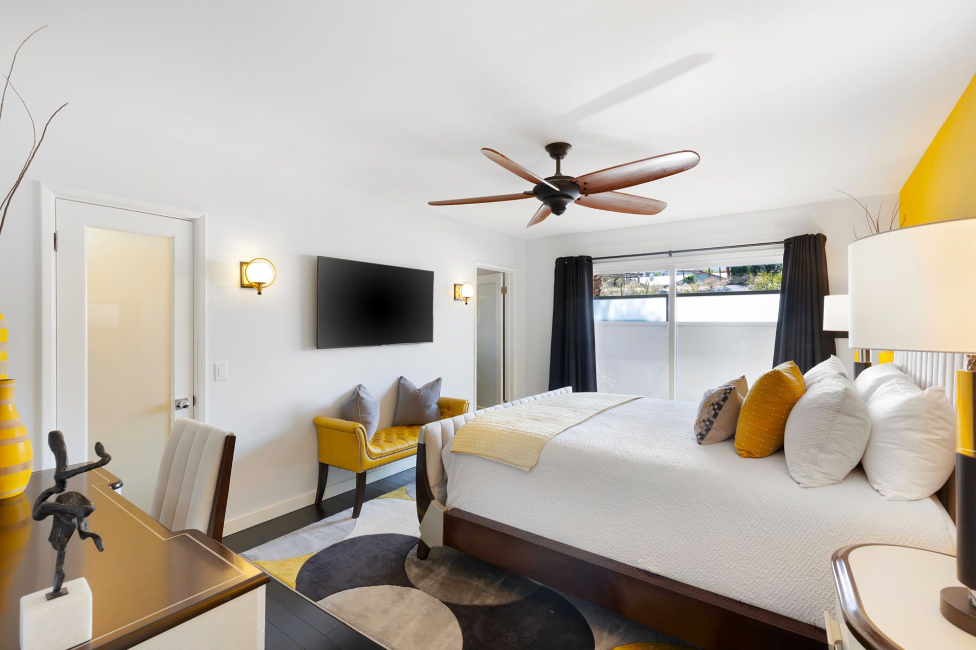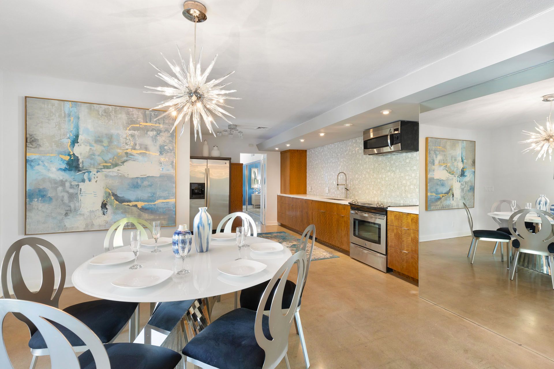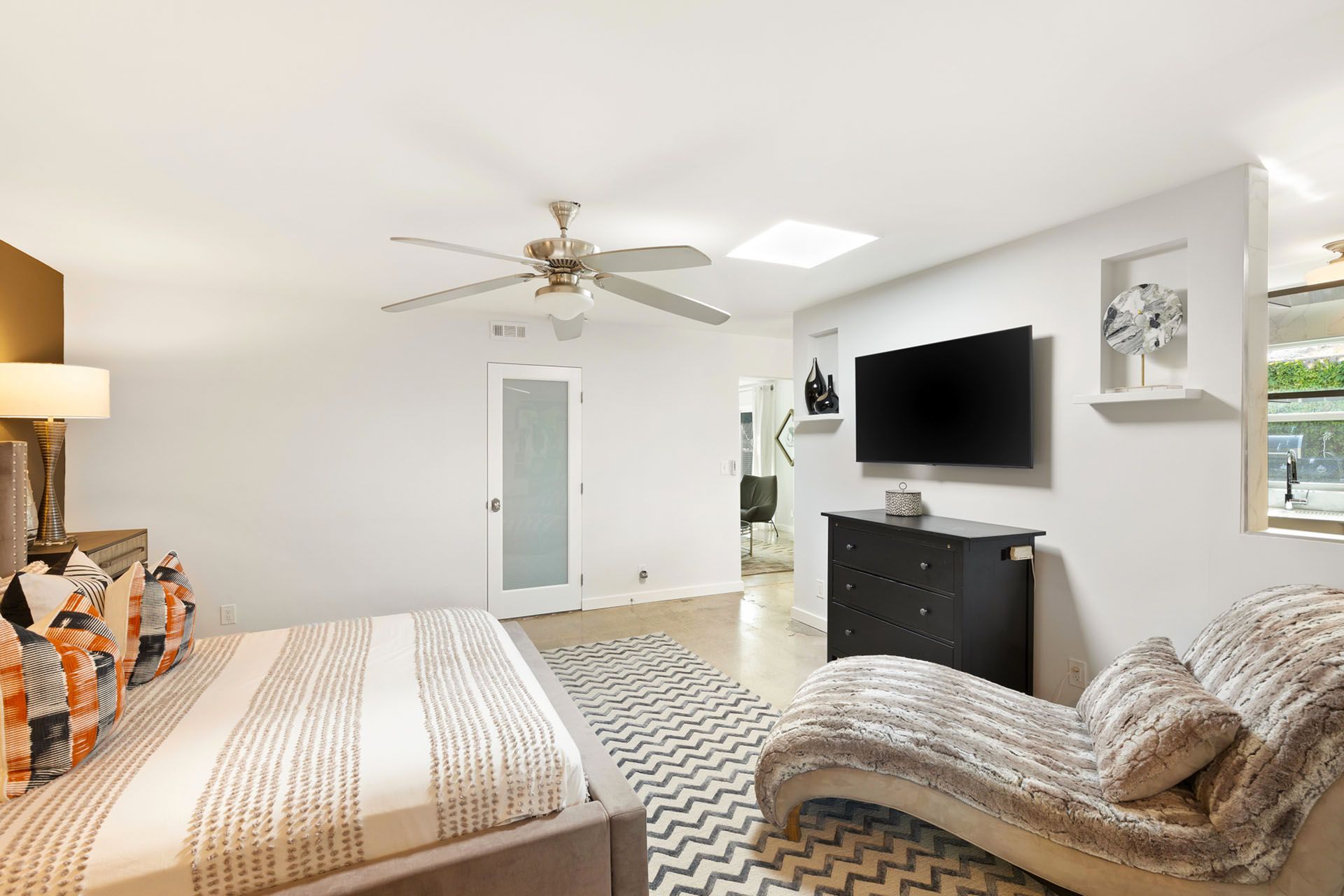 This 60’s Palm Springs oasis makes a strong case for outdoor living. With two private pools, a Baja bar with loungers, a canopied daybed and a sofa area, it’s likely that most of the holiday will be spent poolside – thought it might be hard to choose which one you set up camp by. Take in the extraordinary view of the mountains during the day, and at night get the fire pit going and turn on the fairy lights for a dinner party under the stars. You’ll feel a tranquility and privacy here, thanks to the verdant hedges, but you’ll still see swaying palm trees overhead, whether you’re on the tanning deck or swimming laps. Inside, three kitchens and three living spaces give this home a compound feel perfect for large groups. The stylish design affords plenty of privacy thanks to the divided living areas, but when it’s time to come together, the large dining table is perfect for hosting meals all together – that is if you aren’t eating at the grogeous wooden table outside. And after a long day of sunshine, plush bedroom suites with beautiful views invite a good night of beauty rest. When you’re ready to pry yourself away from this magical compound, you’ll find yourself just a four-minute drive from the Uptown Design District of Downtown Palm Springs. Visit the Palm Springs Art Museum, hike at Indian and Tahquitz Canyons and frequent the many restaurants, coffee shops, golf courses and cabarets of this lovely desert resort town.