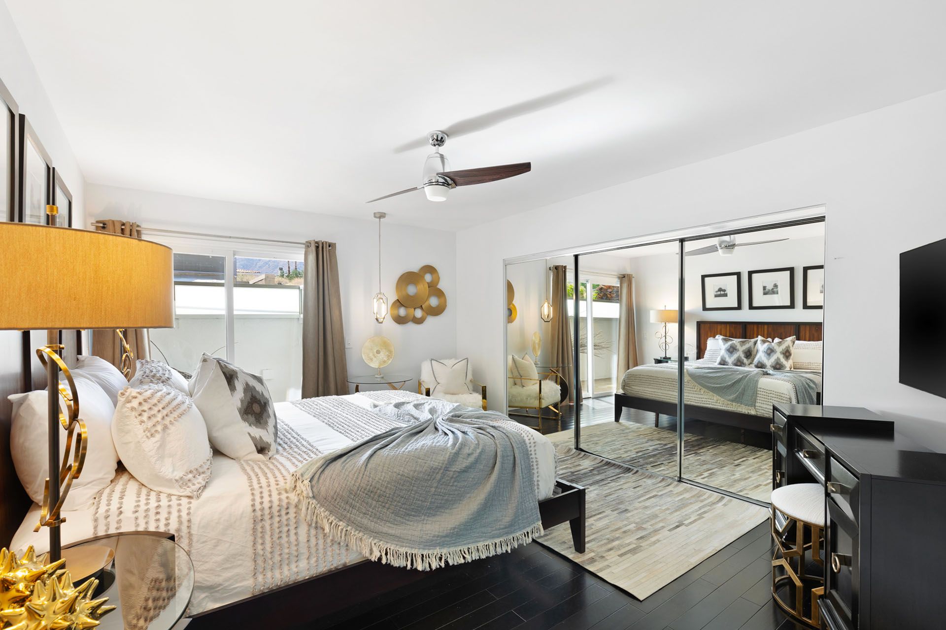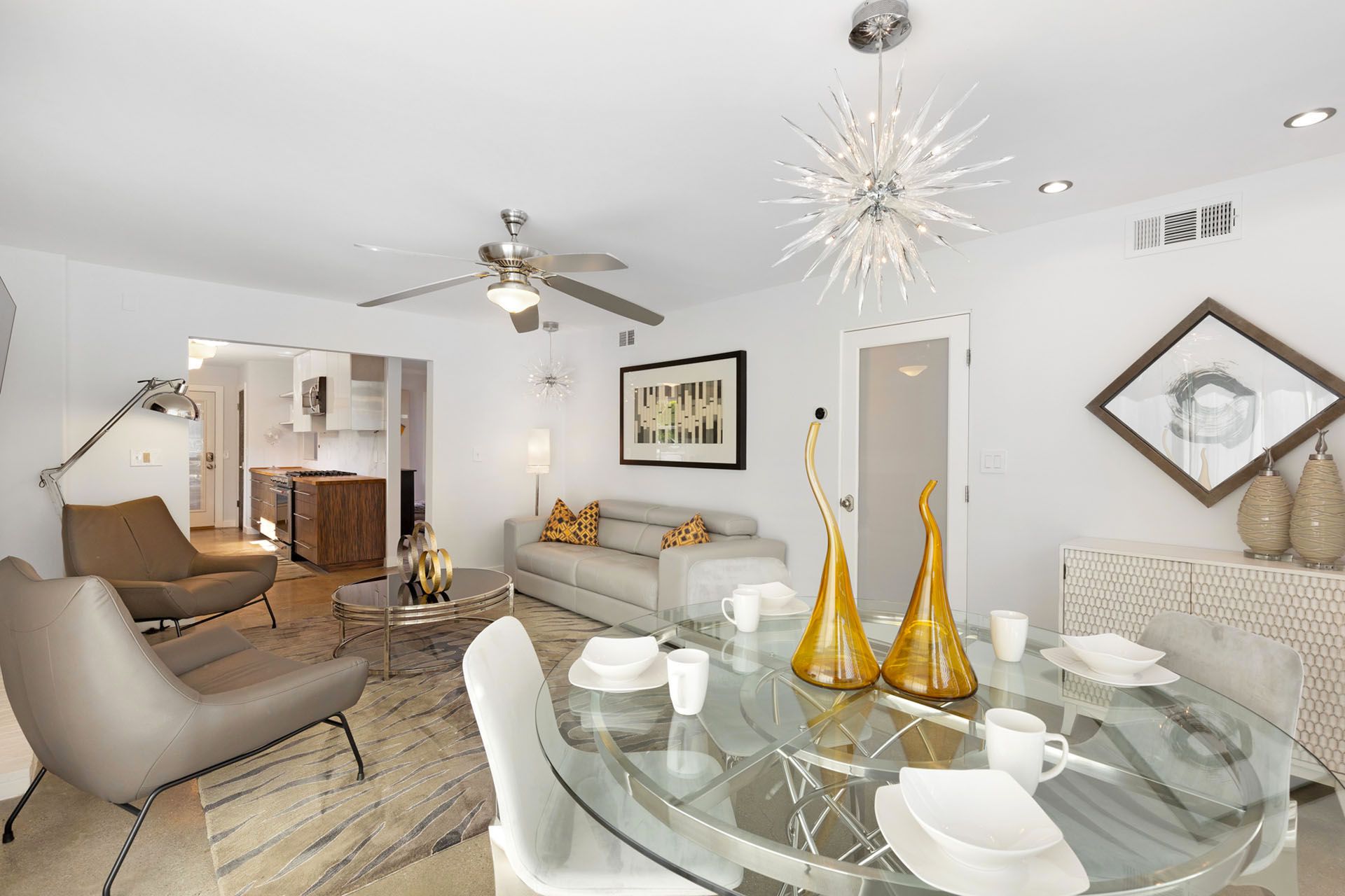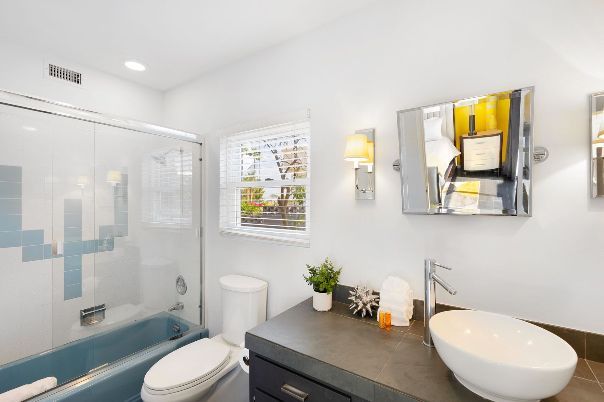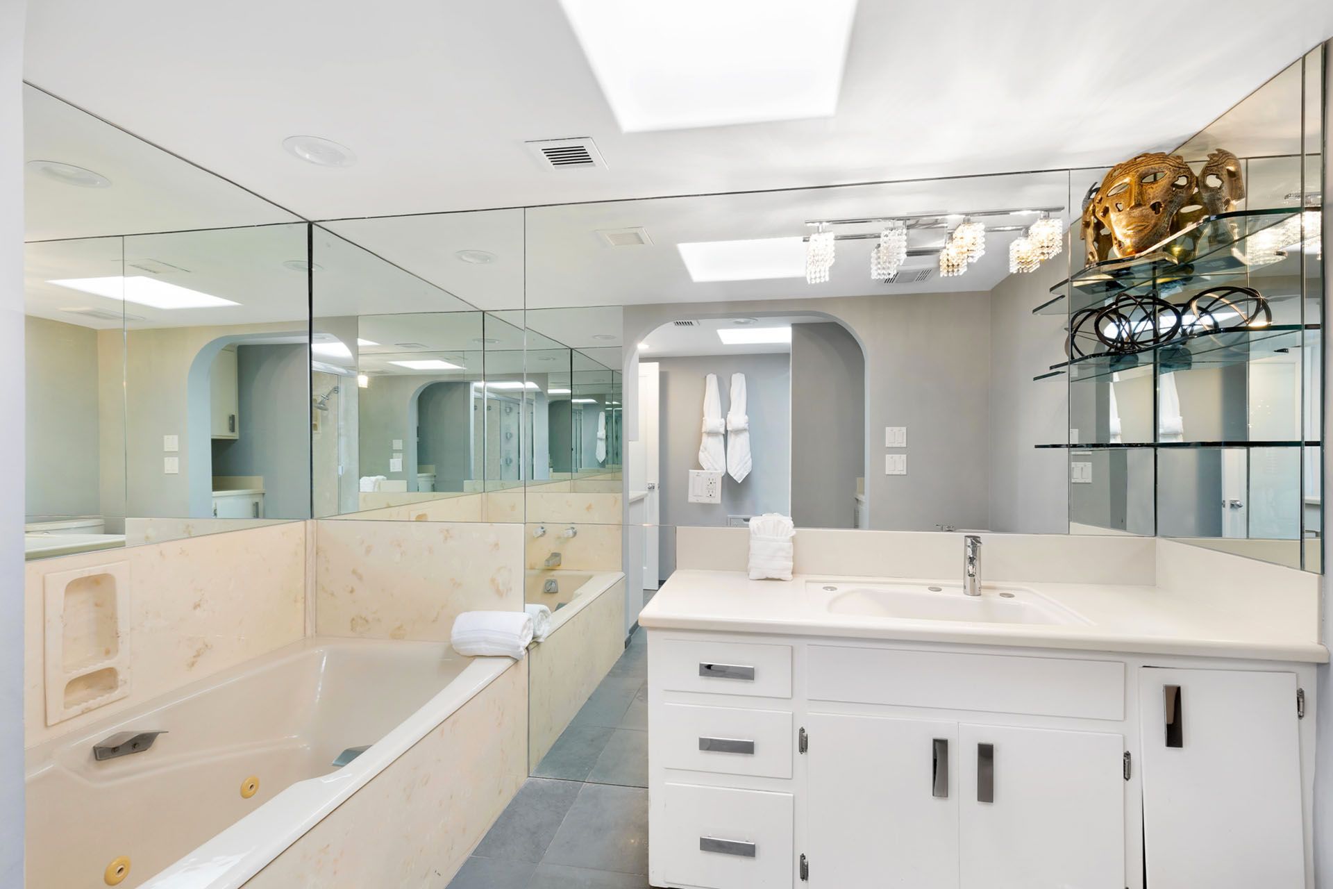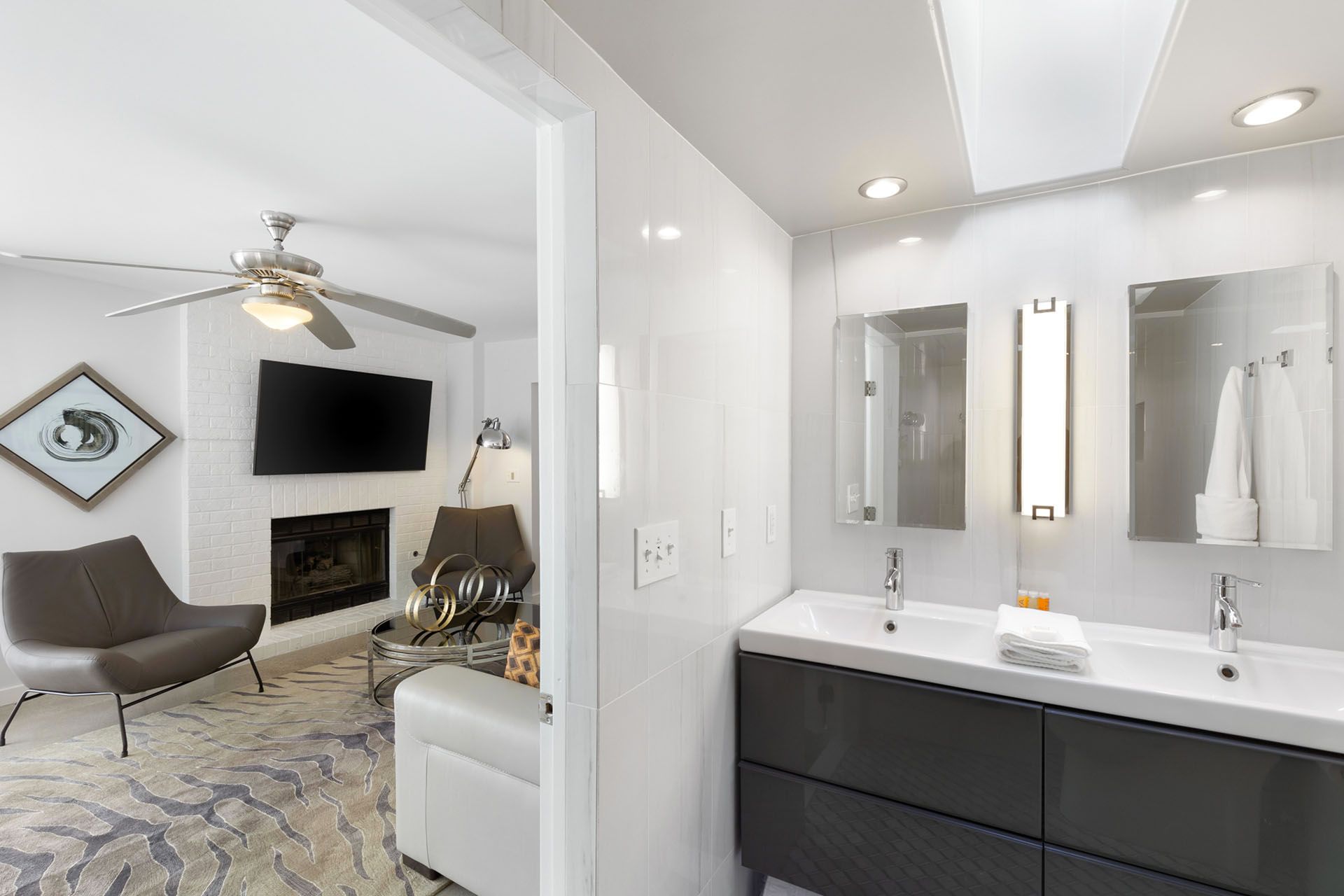 This 60’s Palm Springs oasis makes a strong case for outdoor living. With two private pools, a Baja bar with loungers, a canopied daybed and a sofa area, it’s likely that most of the holiday will be spent poolside – thought it might be hard to choose which one you set up camp by. Take in the extraordinary view of the mountains during the day, and at night get the fire pit going and turn on the fairy lights for a dinner party under the stars. You’ll feel a tranquility and privacy here, thanks to the verdant hedges, but you’ll still see swaying palm trees overhead, whether you’re on the tanning deck or swimming laps. Inside, three kitchens and three living spaces give this home a compound feel perfect for large groups. The stylish design affords plenty of privacy thanks to the divided living areas, but when it’s time to come together, the large dining table is perfect for hosting meals all together – that is if you aren’t eating at the grogeous wooden table outside. And after a long day of sunshine, plush bedroom suites with beautiful views invite a good night of beauty rest. When you’re ready to pry yourself away from this magical compound, you’ll find yourself just a four-minute drive from the Uptown Design District of Downtown Palm Springs. Visit the Palm Springs Art Museum, hike at Indian and Tahquitz Canyons and frequent the many restaurants, coffee shops, golf courses and cabarets of this lovely desert resort town.