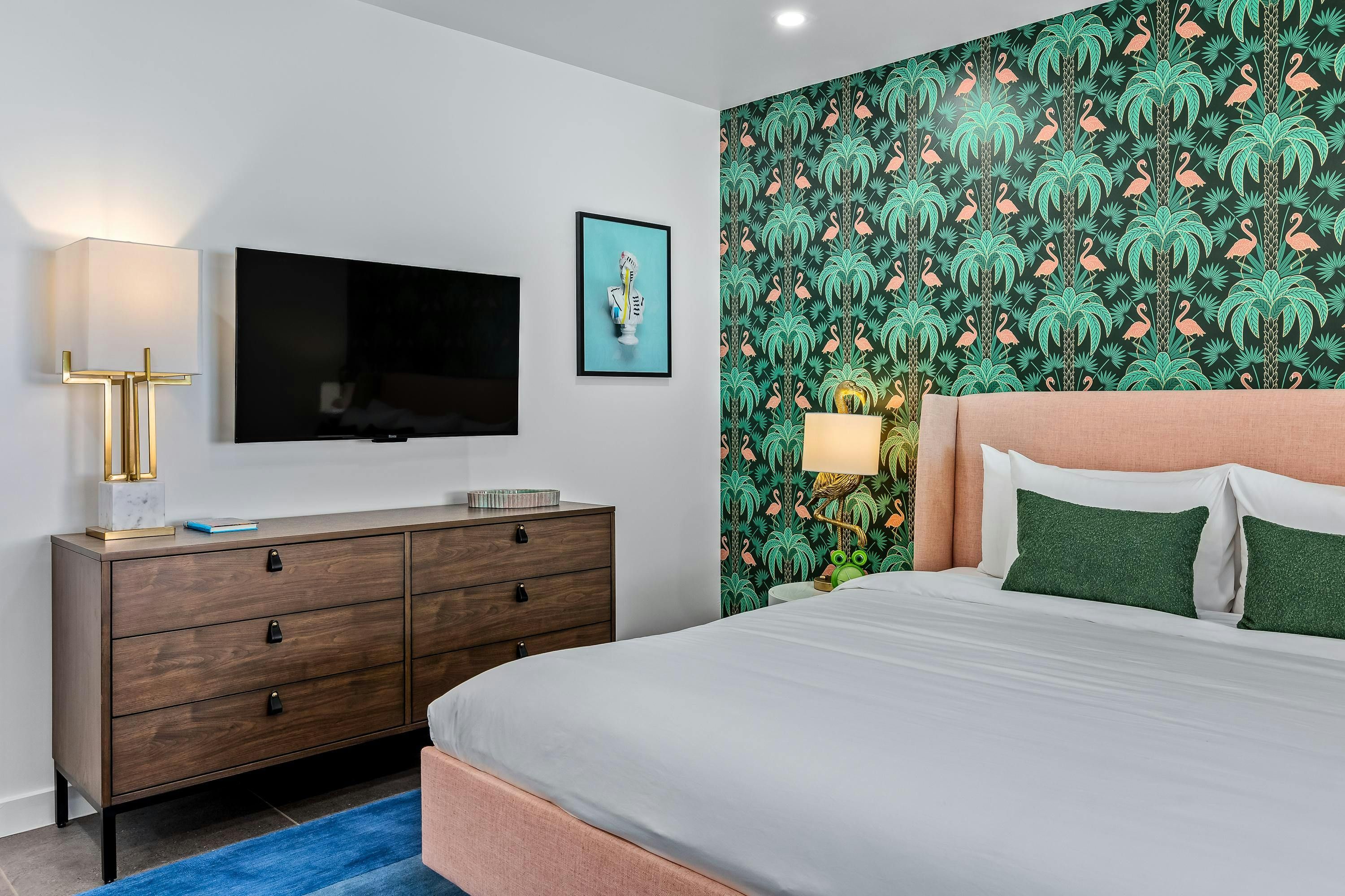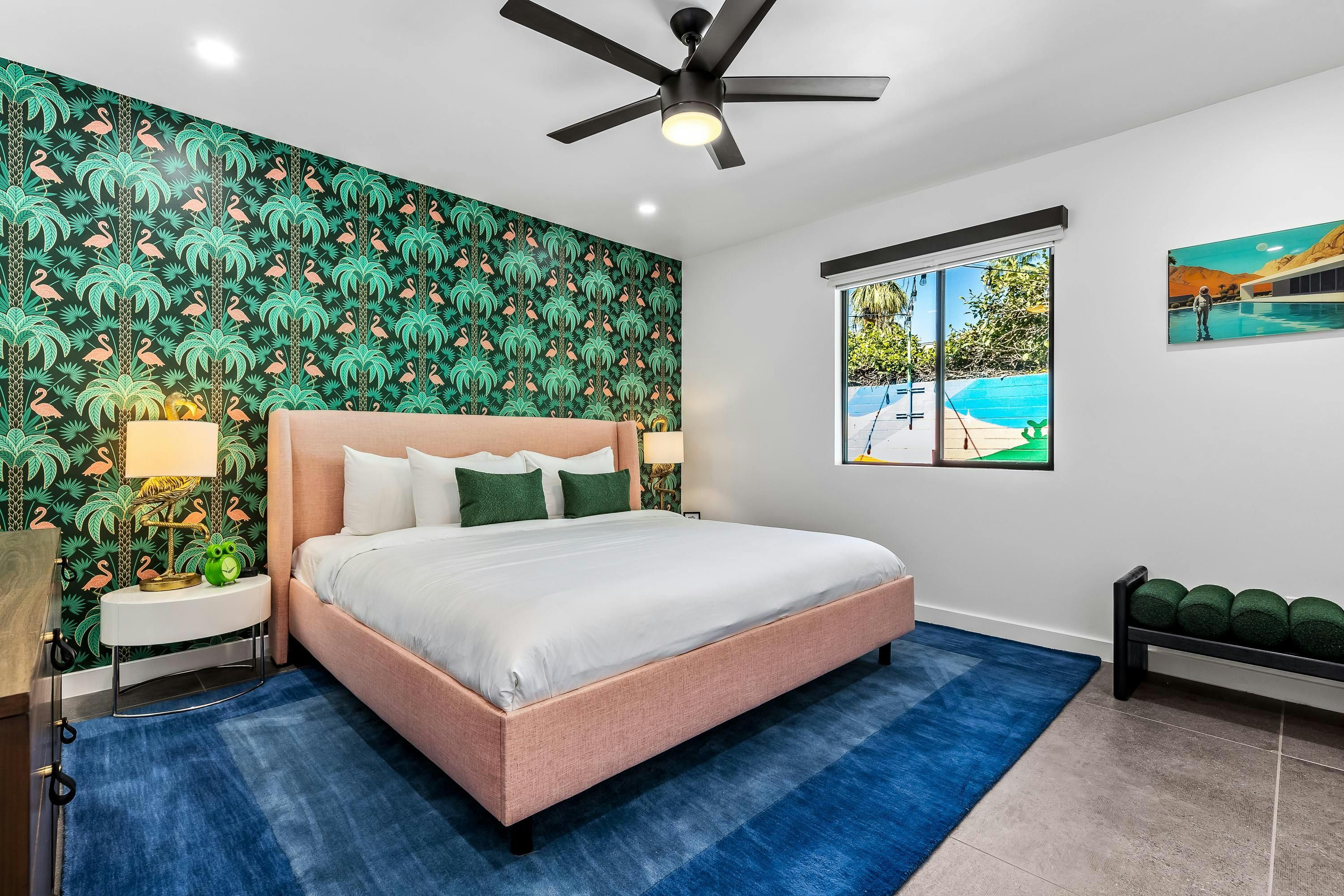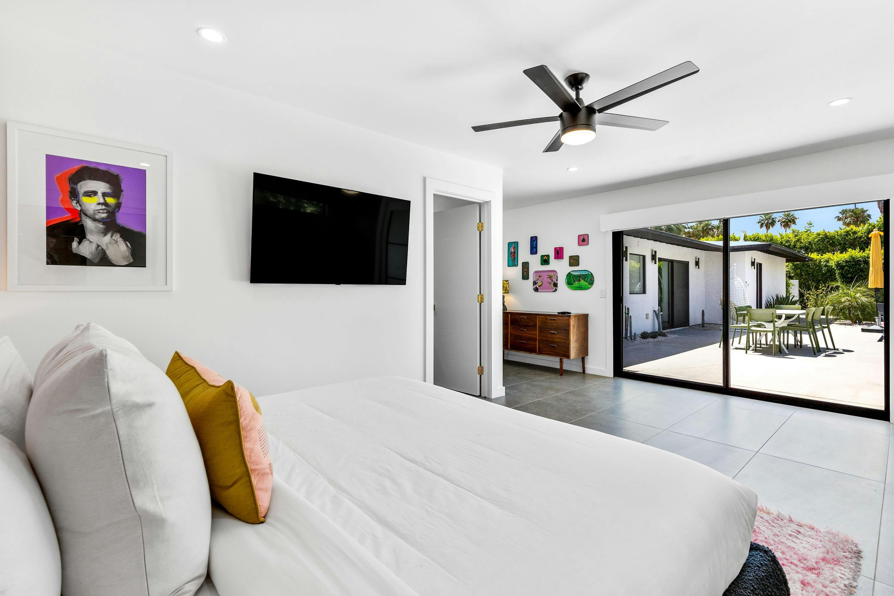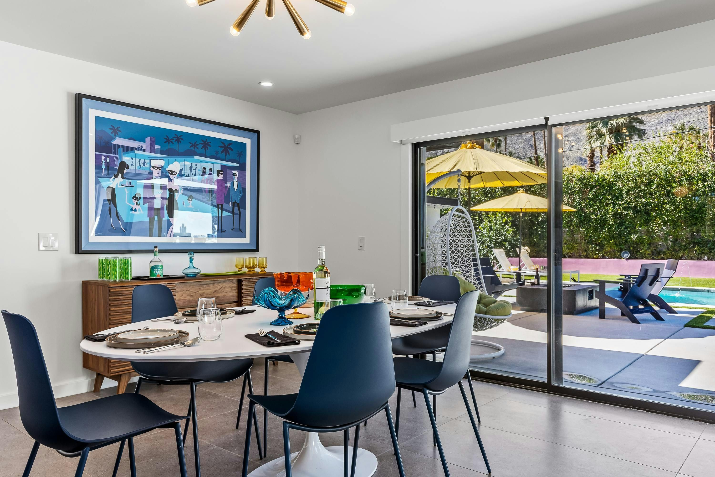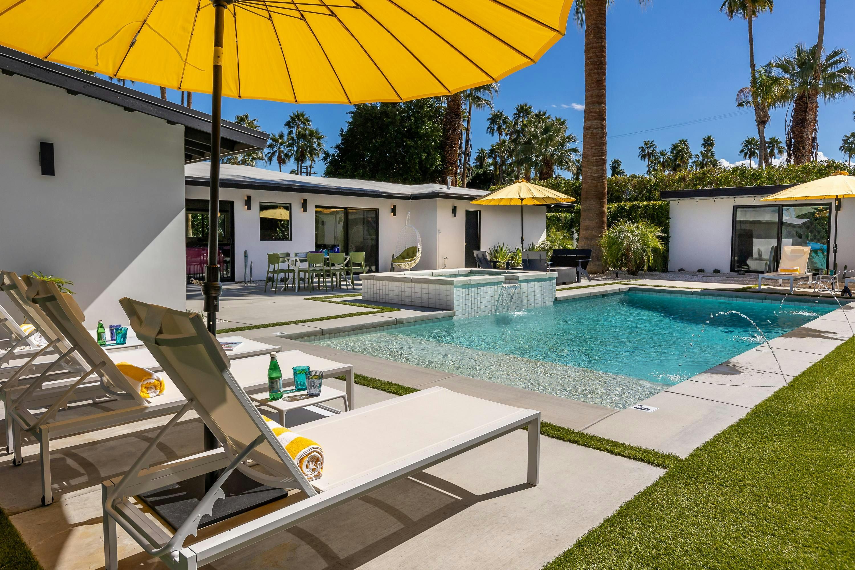 If you’re after a Palm Springs stay that’s bold, colourful and built for fun group getaways, this home is the one. Everything is on one level, with a saltwater pool, spa, lawn games, and alfresco dining framed by stunning mountain views. When the sun sets, gather by the firepit under the desert sky. There’s even a detached annexe with its own en-suite and workspace – perfect for guests wanting a bit more privacy. The location’s great too. It’s in a quiet spot with food, vintage shops, and bars on your doorstep, plus downtown and hiking trails are only a short drive away.