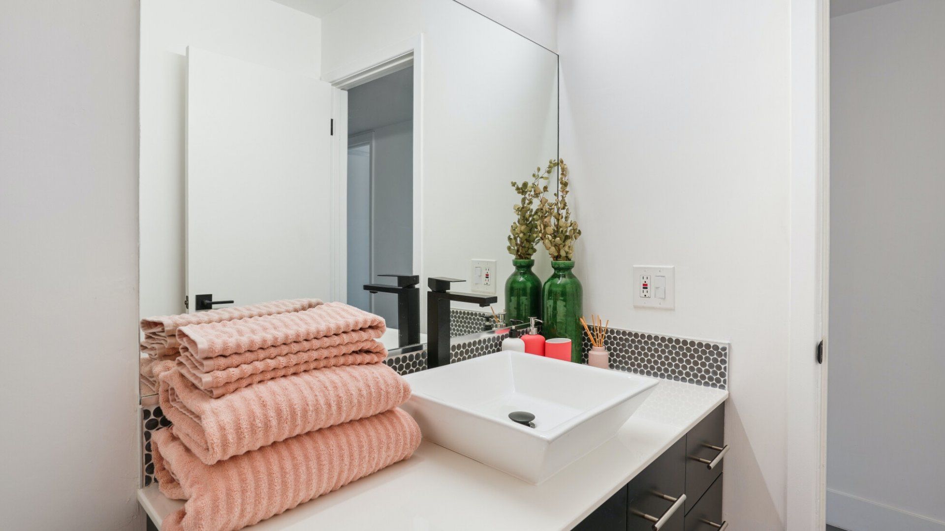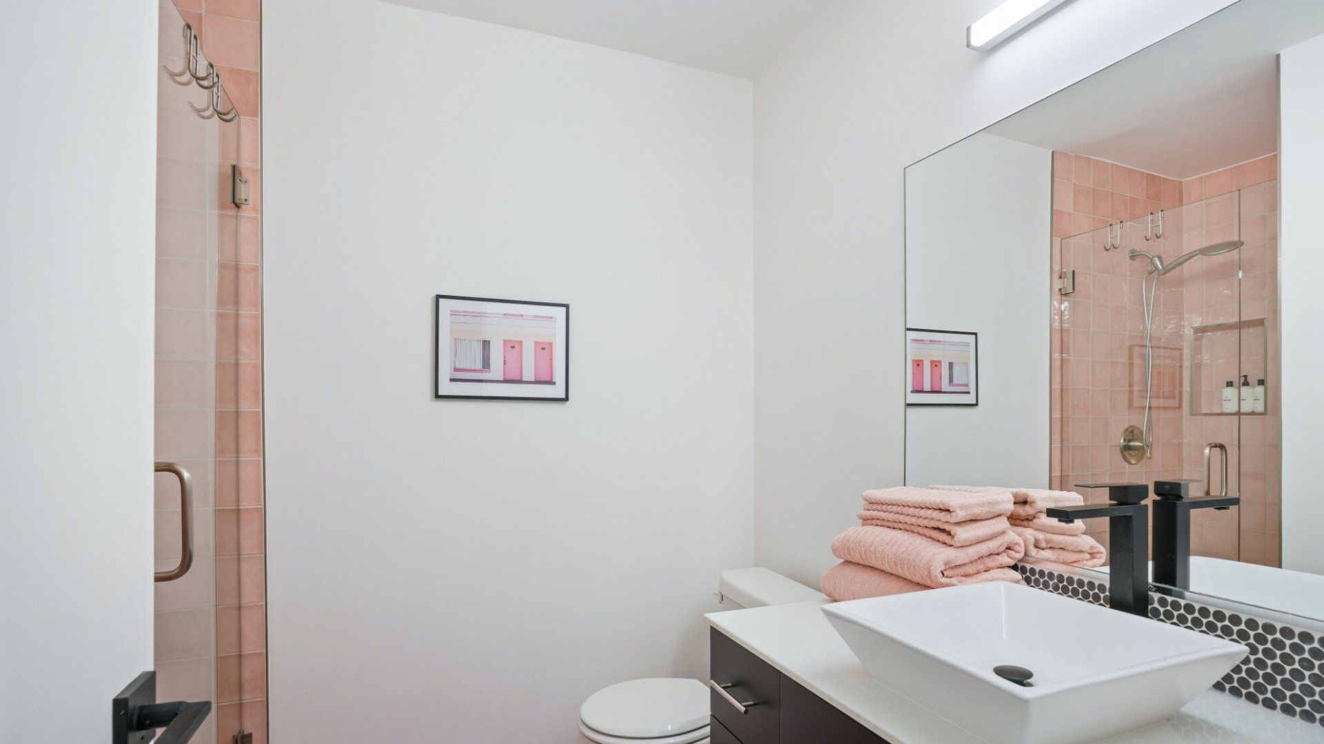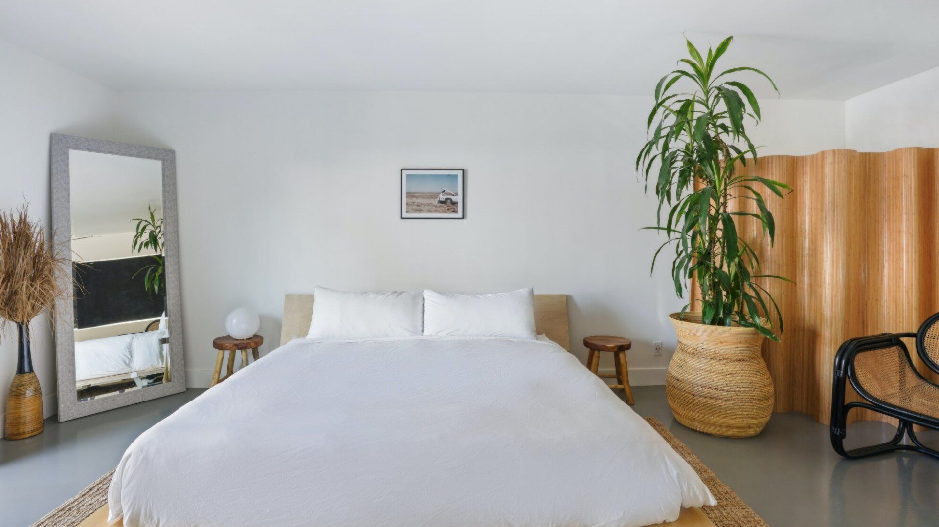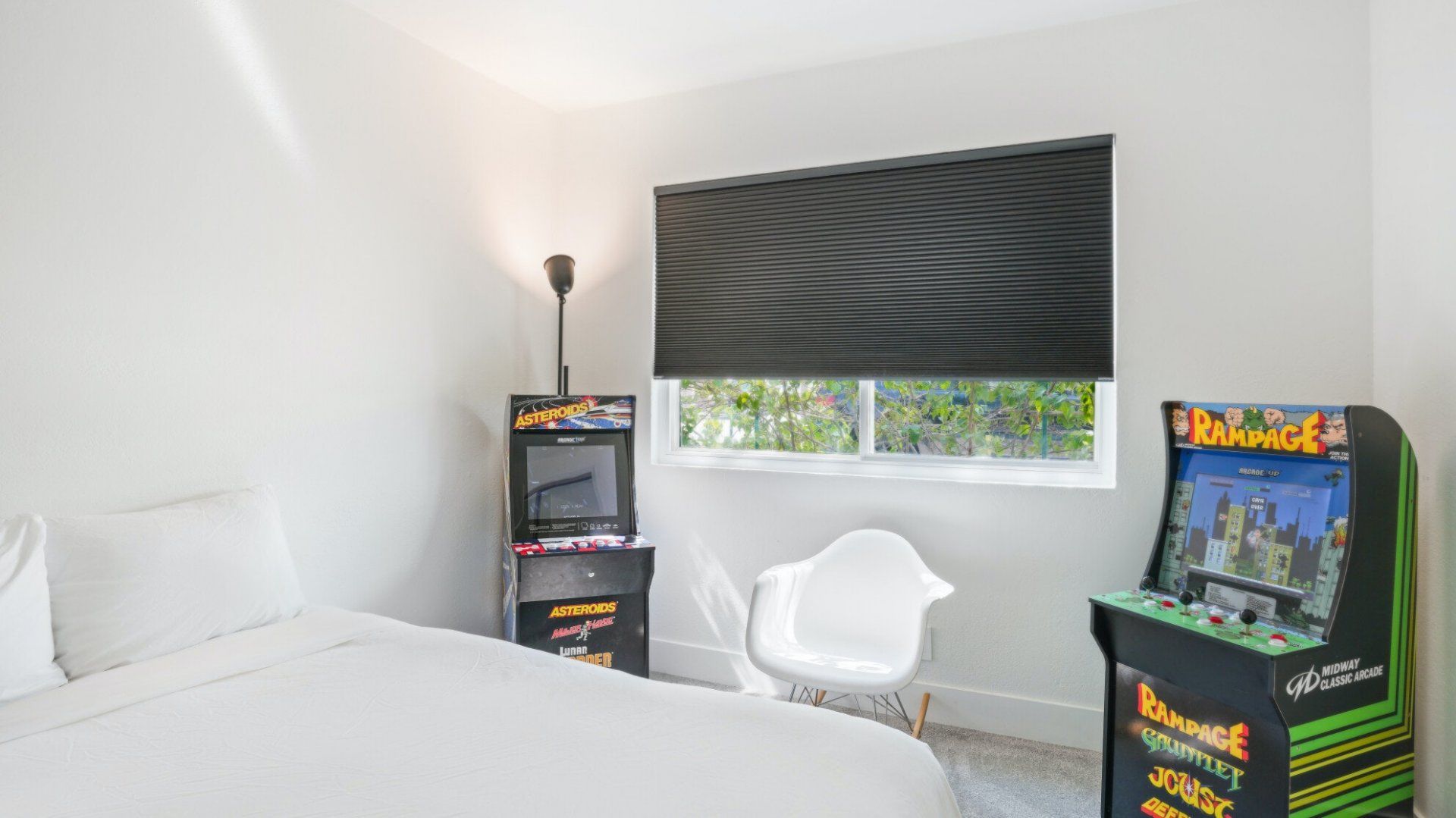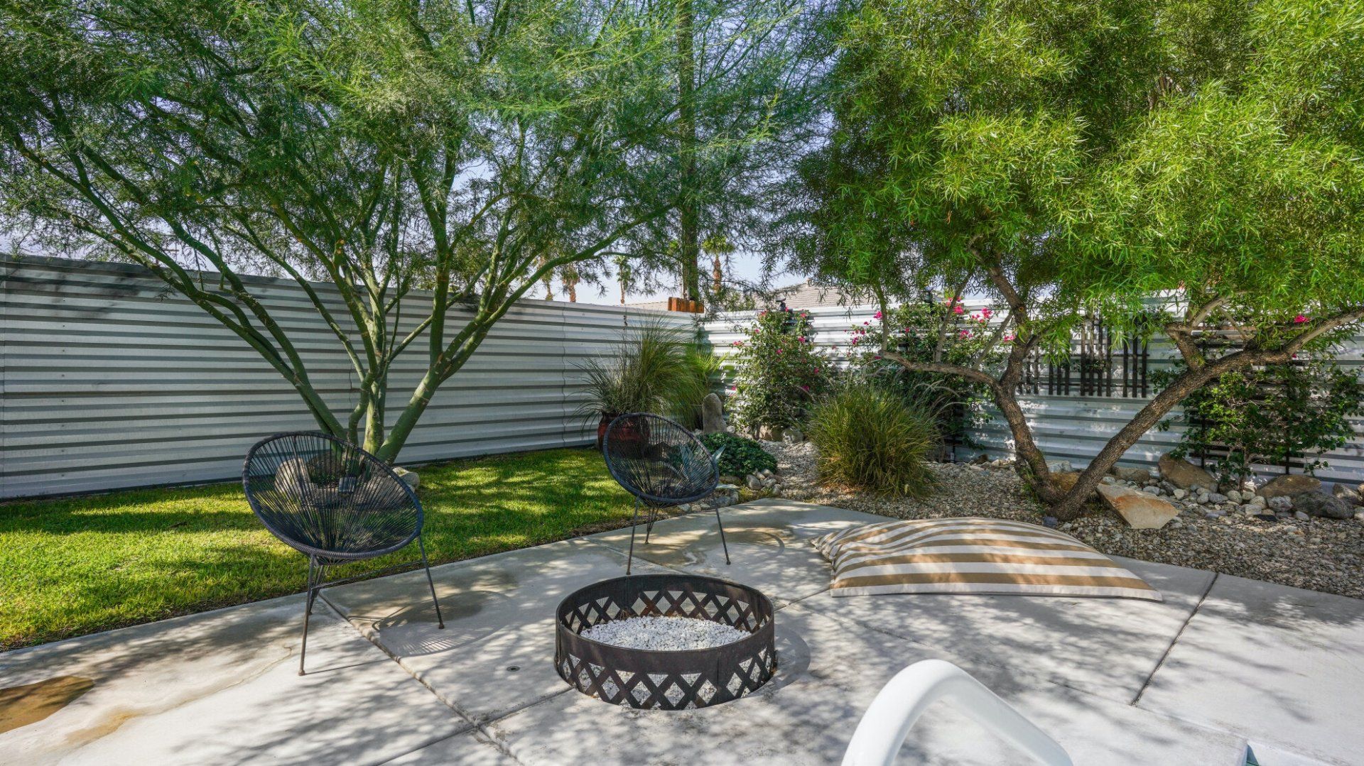 Surrounded by rugged desert mountains and towering palms, there’s no doubt you’re in Palm Springs here. There’s a festival vibe to the backyard, where stringed lights illuminate the trees at twilight, and a double hammock awaits for sunny days. A turquoise rectangle of swimming pool with a Jacuzzi and Baja shelf sits in the centre and a shaded seating area provides an escape from the midday heat. Inside, it’s sleek, white and modern with retro touches in true Palm Springs style. A mid-century pine-green sofa draws the eye in the living room, there are a couple of retro arcade games in the second bedroom, and the main bathroom fully embraces retro-chic with the marshmallow-pink shower tiles. There’s sleek modernity just where you want it – in the kitchen with its hardwood countertops and big Belfast sink. If you don’t fancy cooking at home (even on the gas grill outside), it’s a five-minute drive to the endless shops, restaurants and cafés of Palm Canyon Drive.
