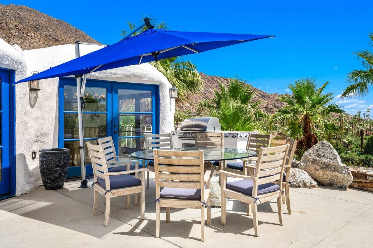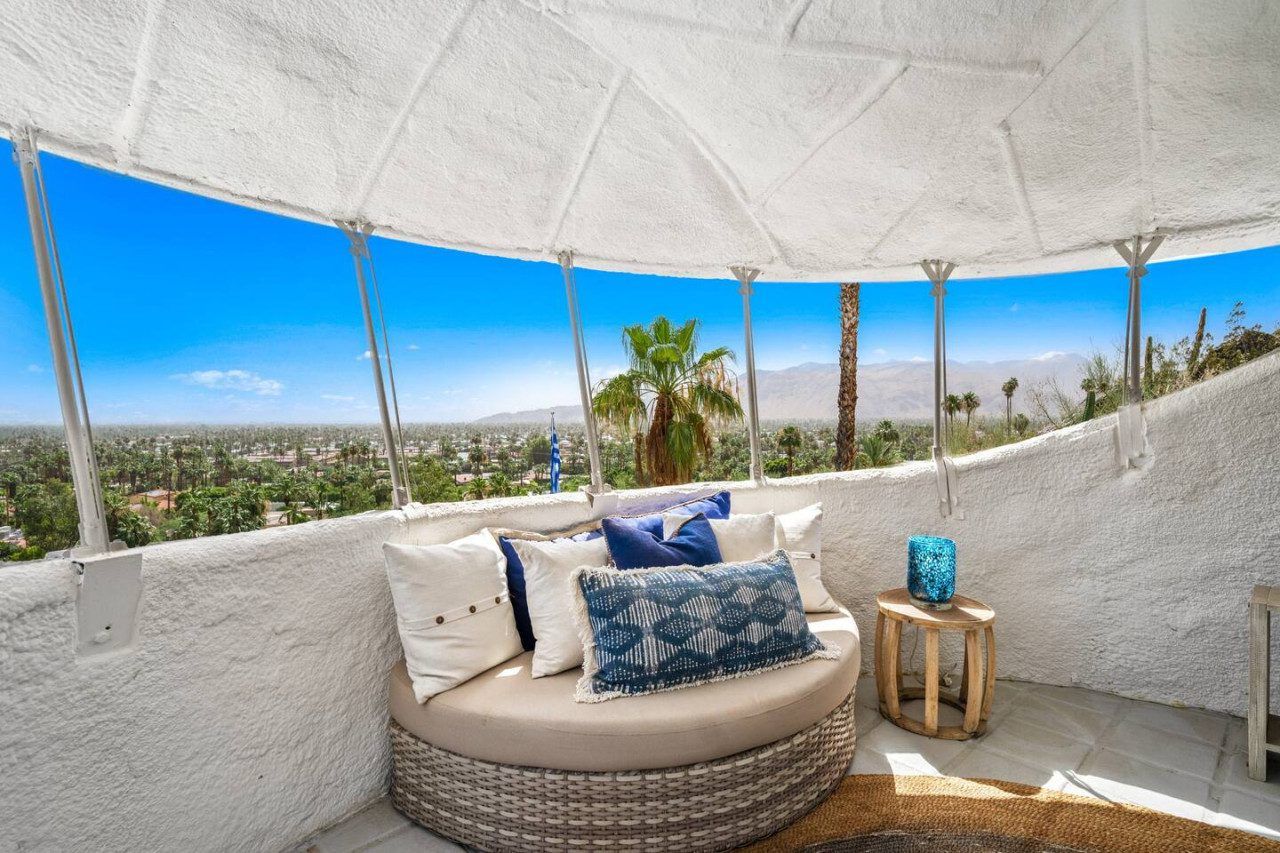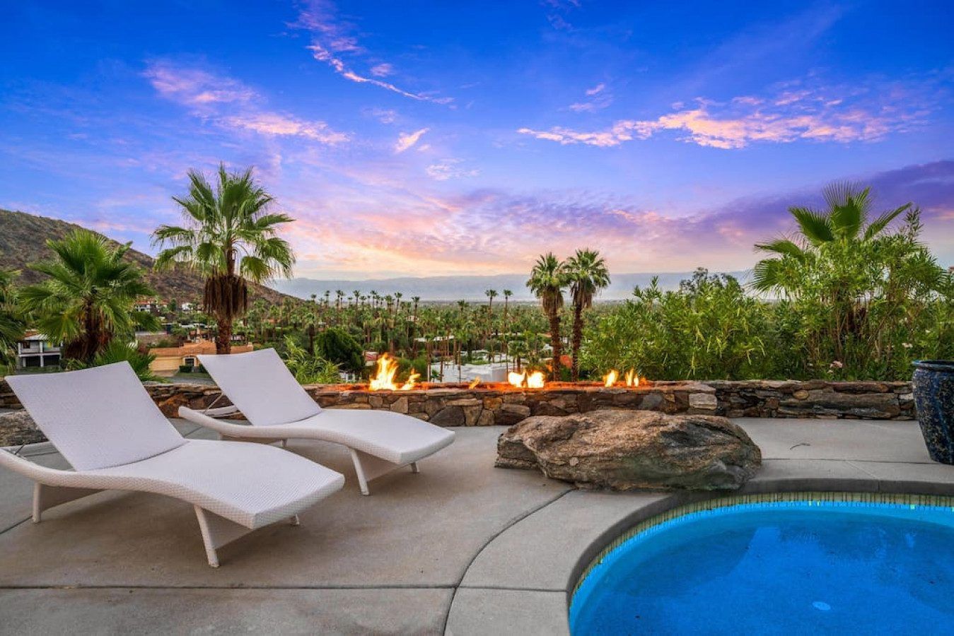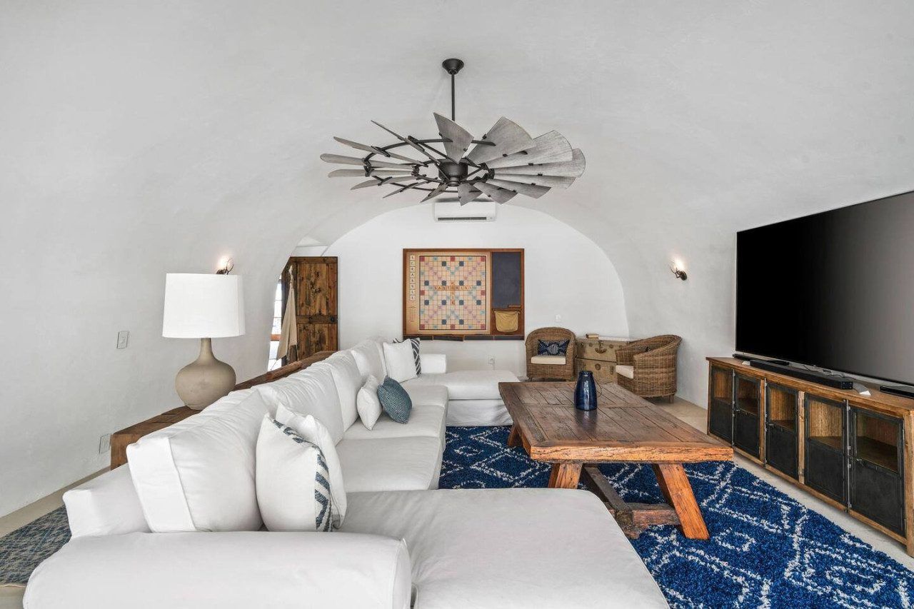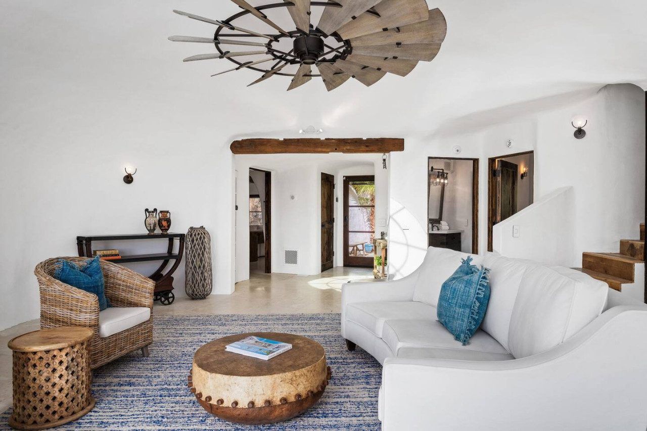 The architect who designed and built this Palm Springs abode was inspired by Santorini β this home is truly unique for its desert setting. You'll be greeted by the curved walls of Cycladic design, a private pool and hot tub, and a resort-style garden. Or, you can ascend the tower to find an observation deck that looks out over the desert β the perfect perch for cocktails. It's spread over a main house and a smaller casita and features century-old beams from a 120-year-old farmhouse and marble imported from Greece. Itβs a magnificent home.
