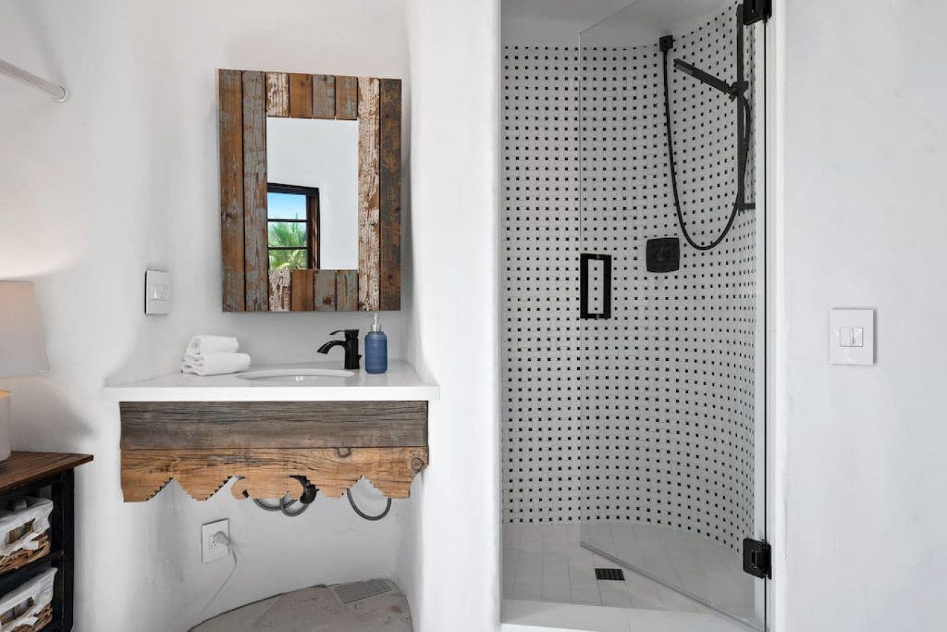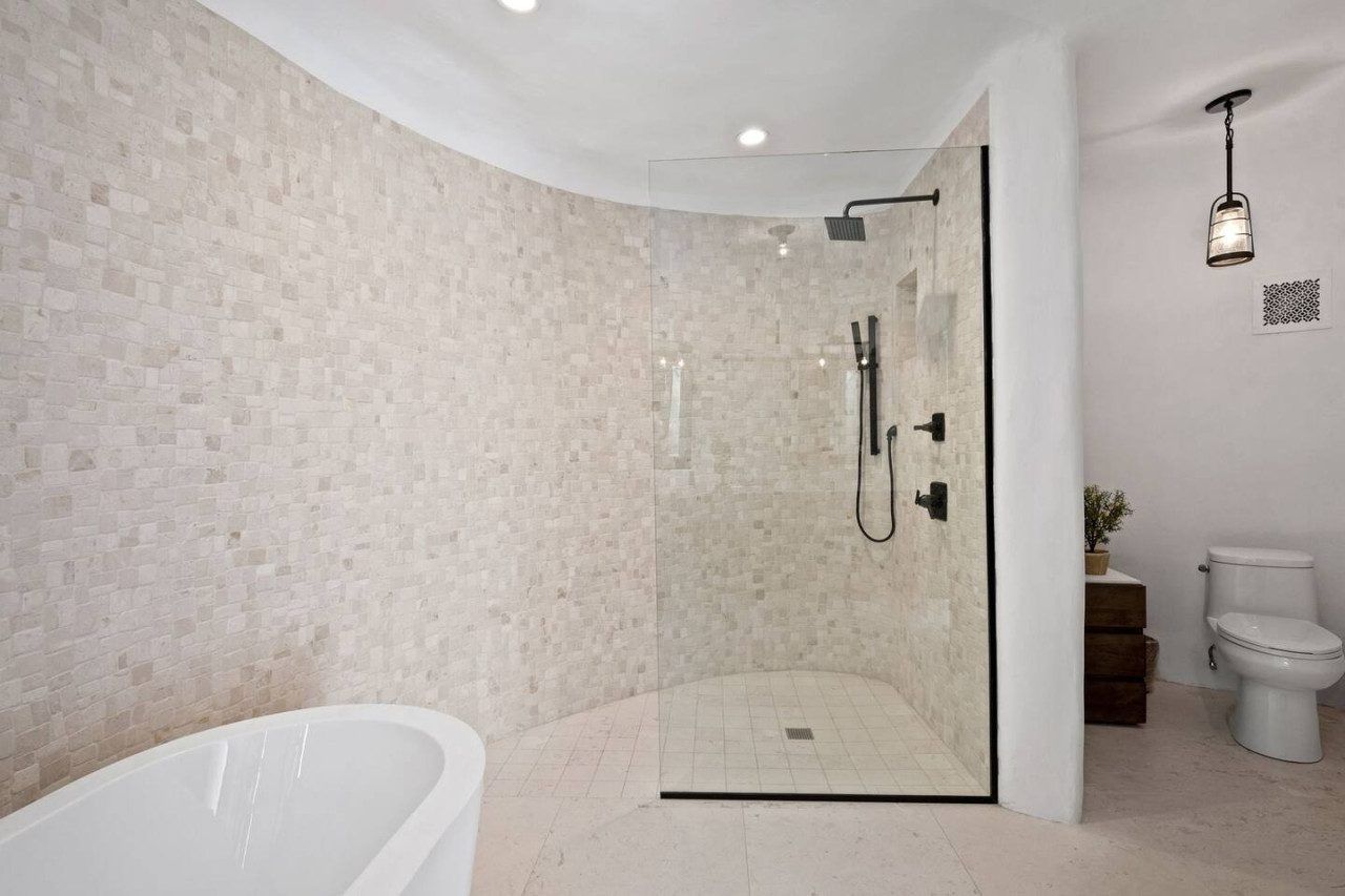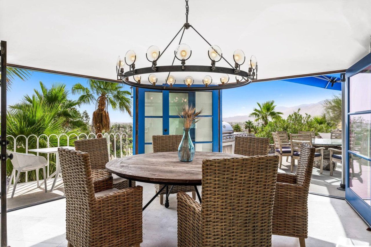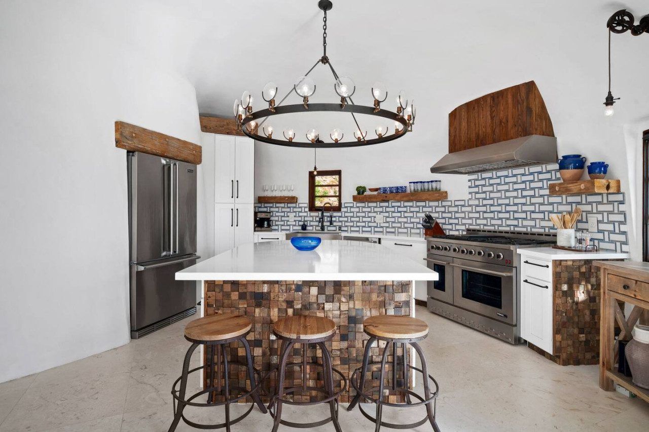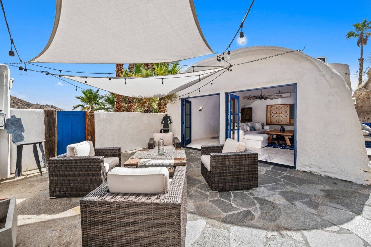 The architect who designed and built this Palm Springs abode was inspired by Santorini β this home is truly unique for its desert setting. You'll be greeted by the curved walls of Cycladic design, a private pool and hot tub, and a resort-style garden. Or, you can ascend the tower to find an observation deck that looks out over the desert β the perfect perch for cocktails. It's spread over a main house and a smaller casita and features century-old beams from a 120-year-old farmhouse and marble imported from Greece. Itβs a magnificent home.