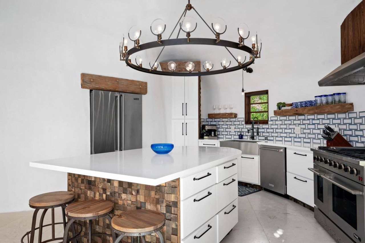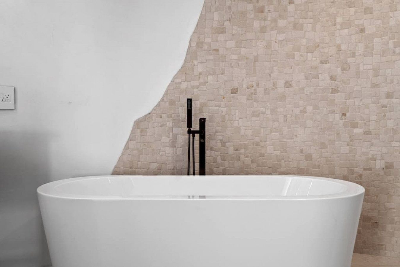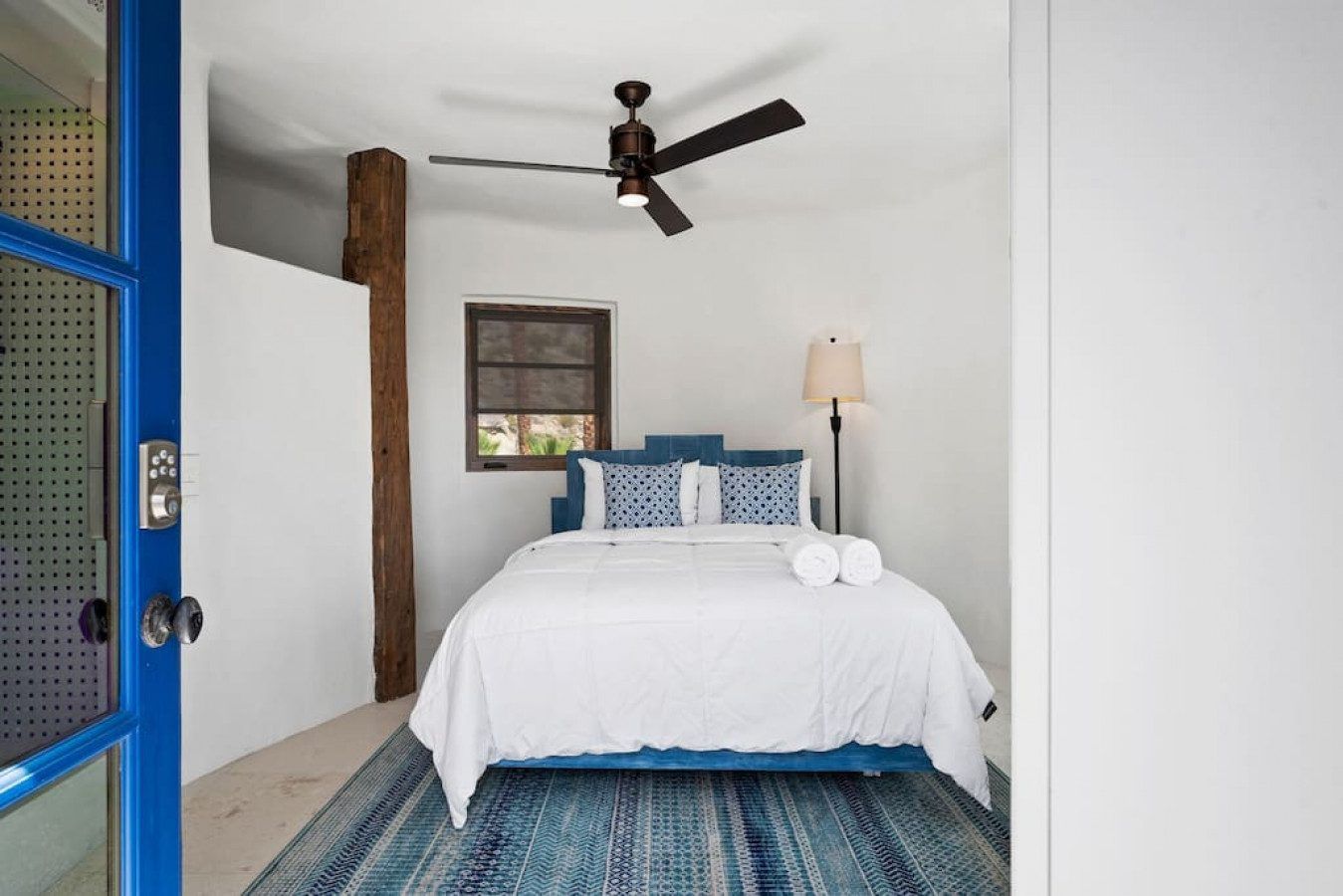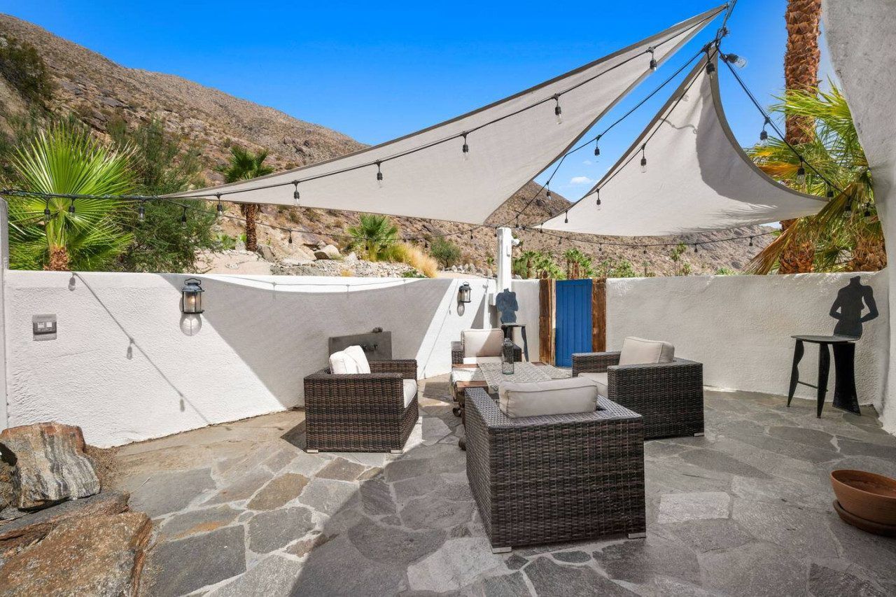 The architect who designed and built this Palm Springs abode was inspired by Santorini β this home is truly unique for its desert setting. You'll be greeted by the curved walls of Cycladic design, a private pool and hot tub, and a resort-style garden. Or, you can ascend the tower to find an observation deck that looks out over the desert β the perfect perch for cocktails. It's spread over a main house and a smaller casita and features century-old beams from a 120-year-old farmhouse and marble imported from Greece. Itβs a magnificent home.