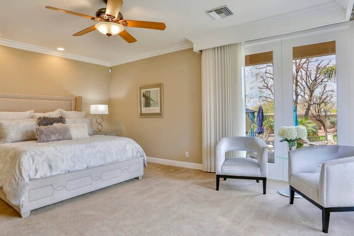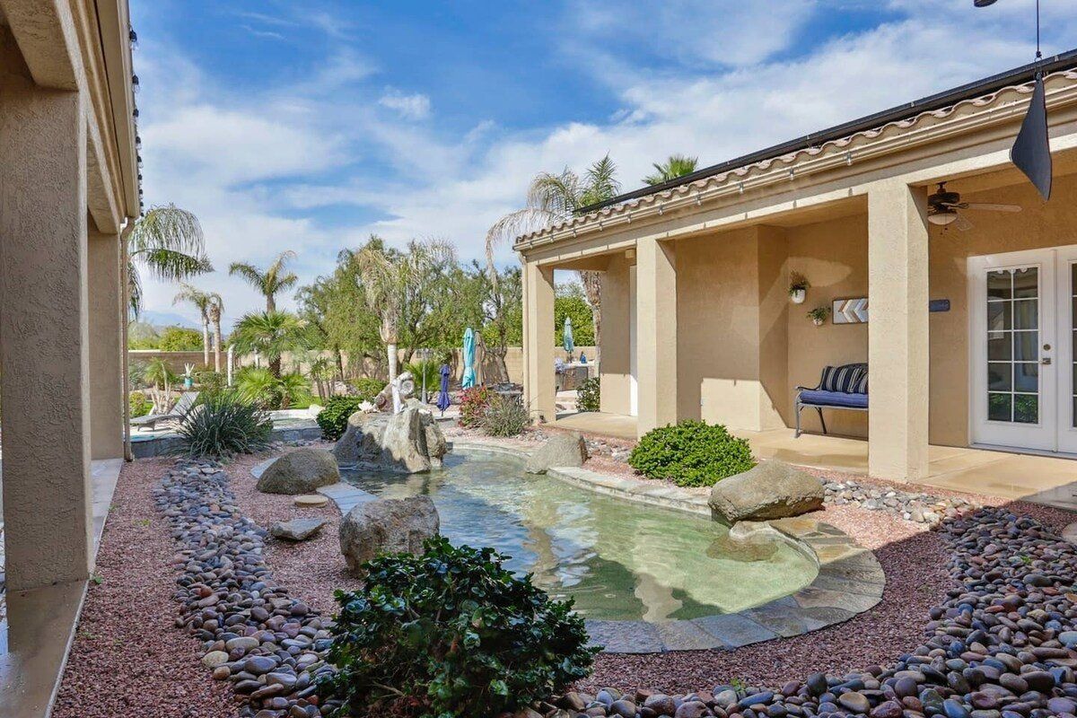 Nestled between the desert and the mountains, this pad in Palm Desert is your own little oasis. With shopping, restaurants, bars and golf mere minutes away in any direction, you’ll feel slap bang in the centre of everything, but you’ll also have this relaxed, private home to return to when you’re ready.