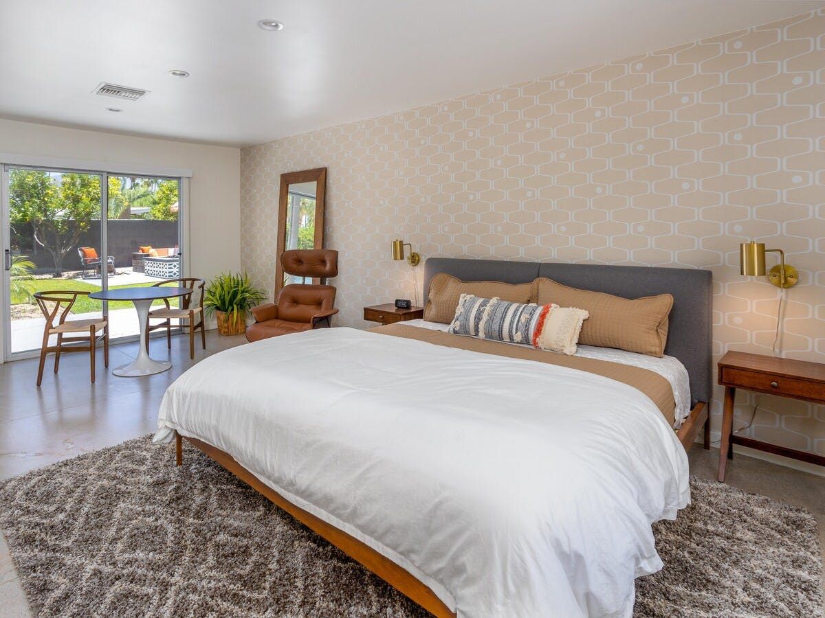 Afterwards, guests can sleep well in the individually designed bedrooms, all of which feature intricate wallpaper to give you that retro feeling while you wind down from a long day. After all, you’ll want to be well-rested to enjoy all that Palm Springs has to offer.
