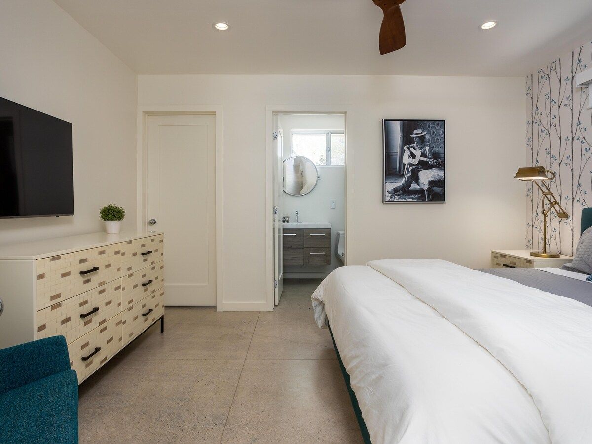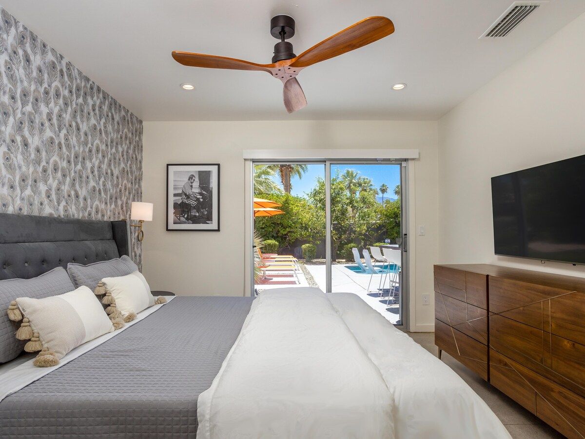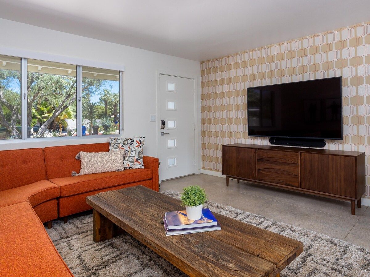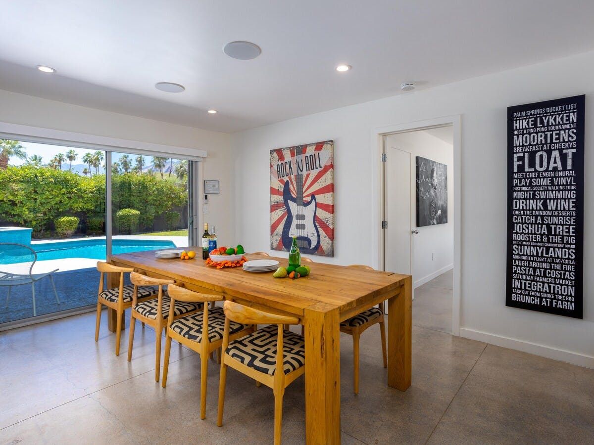 With a nod to classic Rock-n-Roll, this mid-century modern home pays tribute to its era and allows guests to take a step back in history and experience Palm Springs at its finest – without losing any comforts of the twenty-first century.