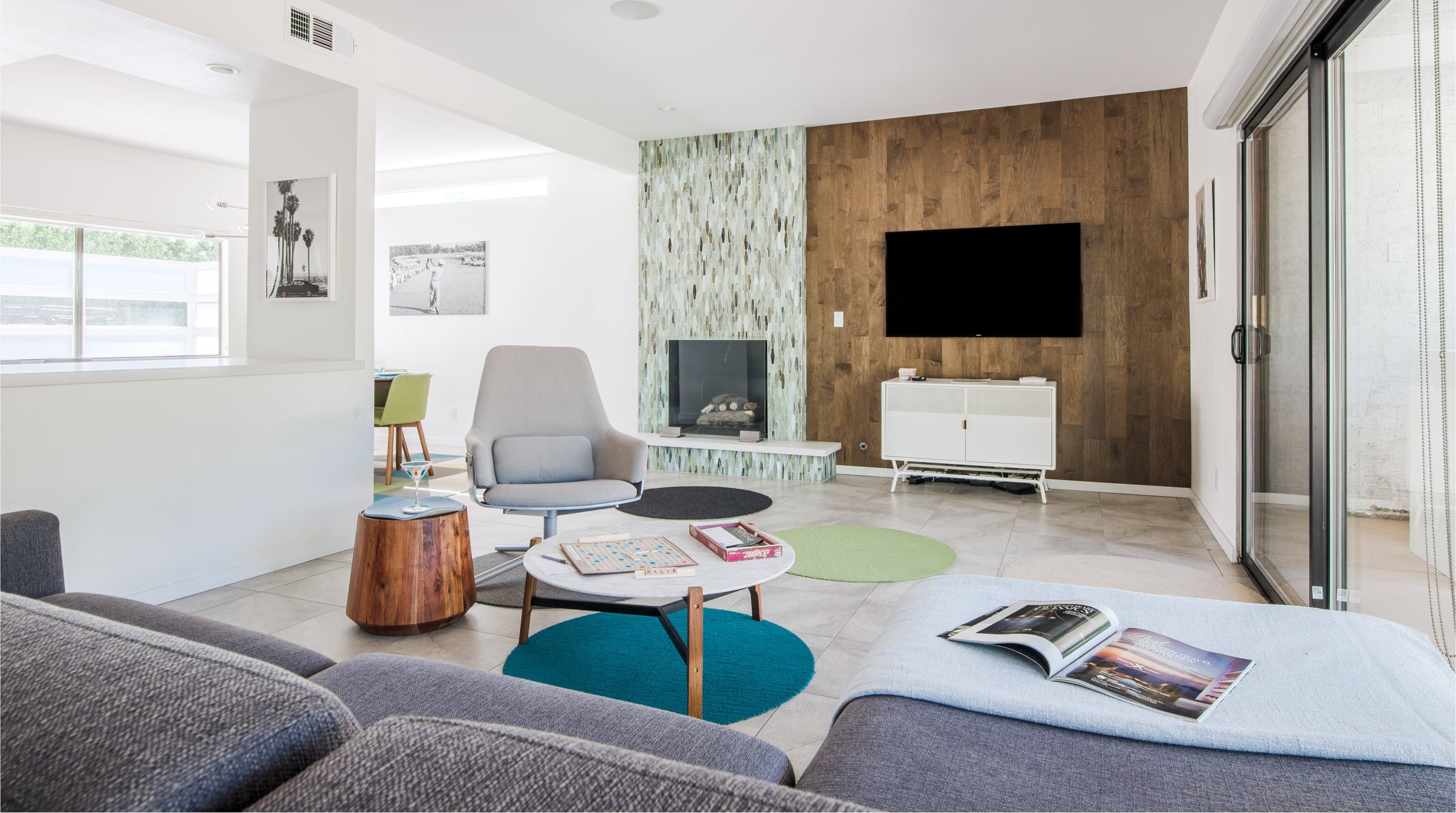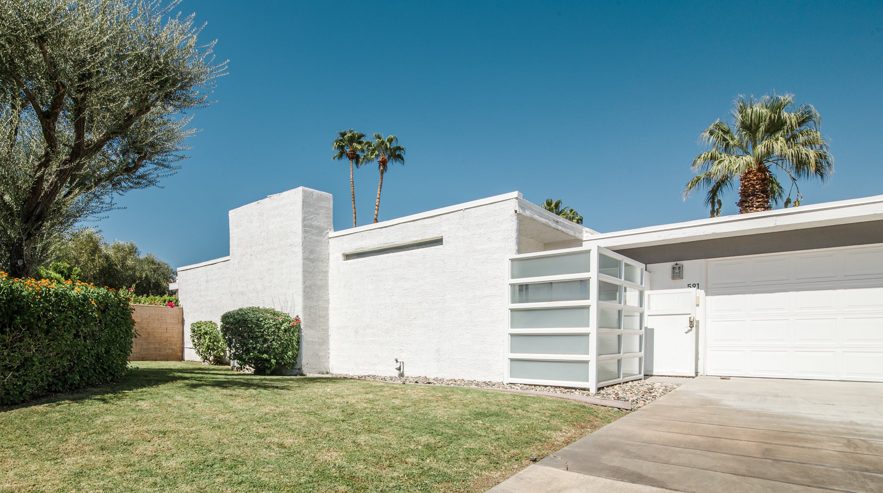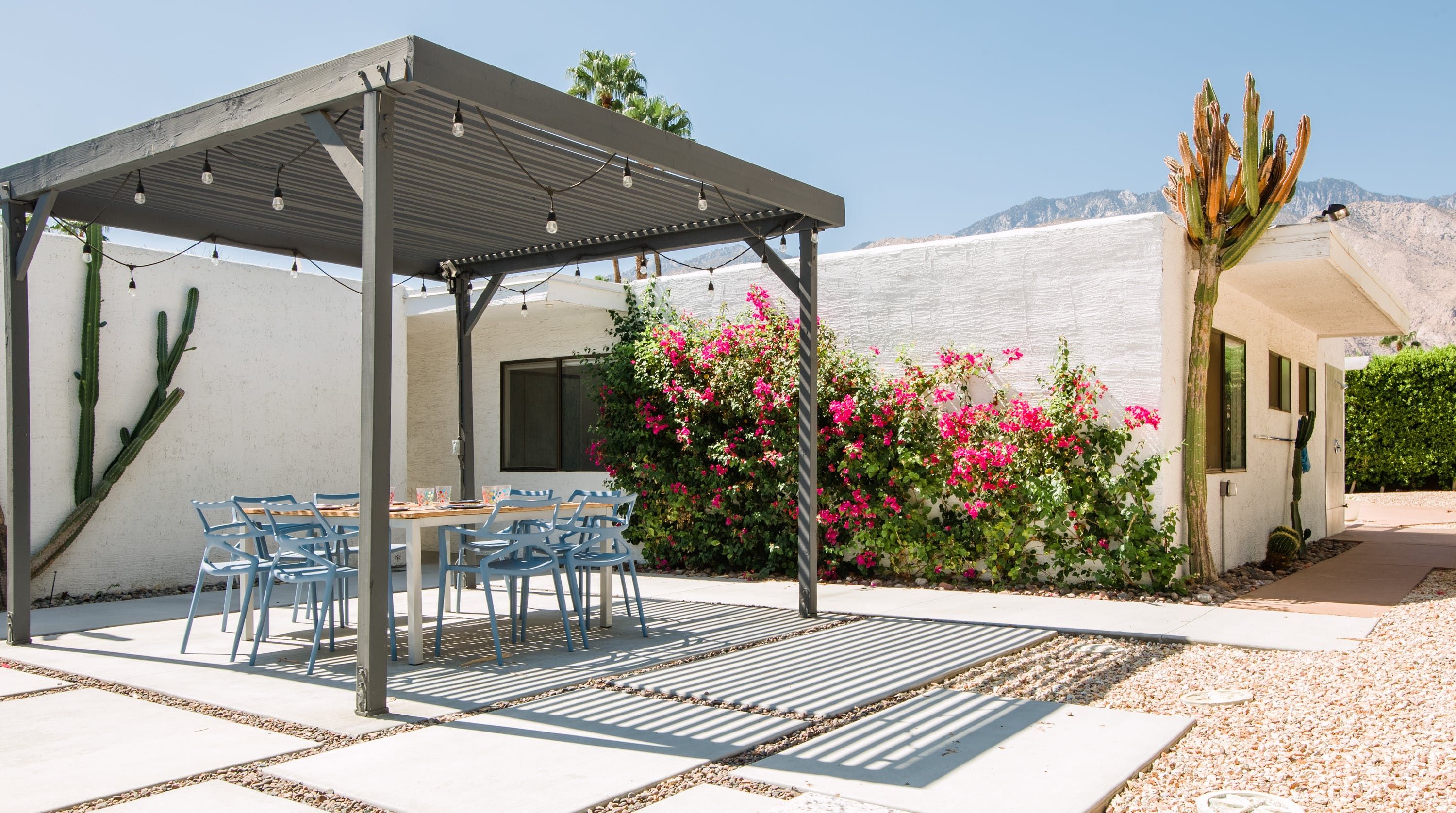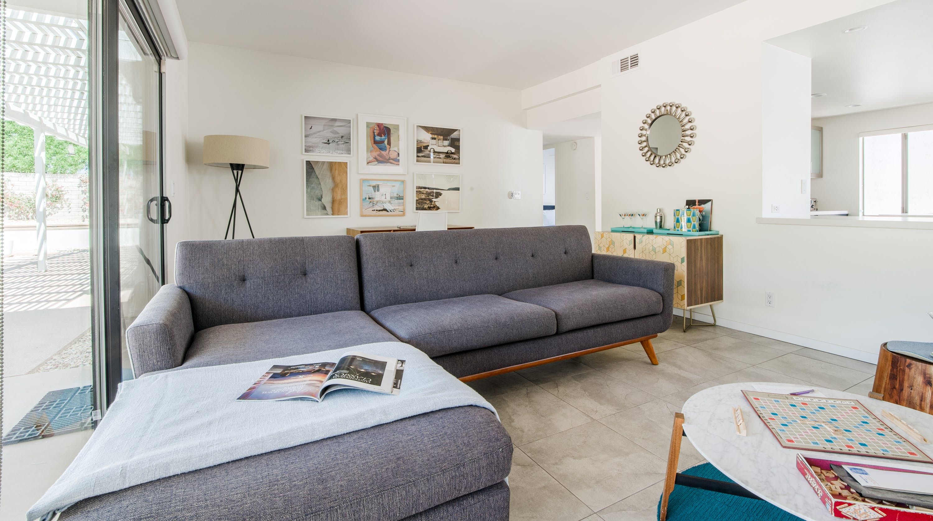 Vast sliding walls of glass blur the lines between indoors and out in this spacious, mid-century home, where glorious Palm Springs sunshine and gorgeous mountain views steal the show.