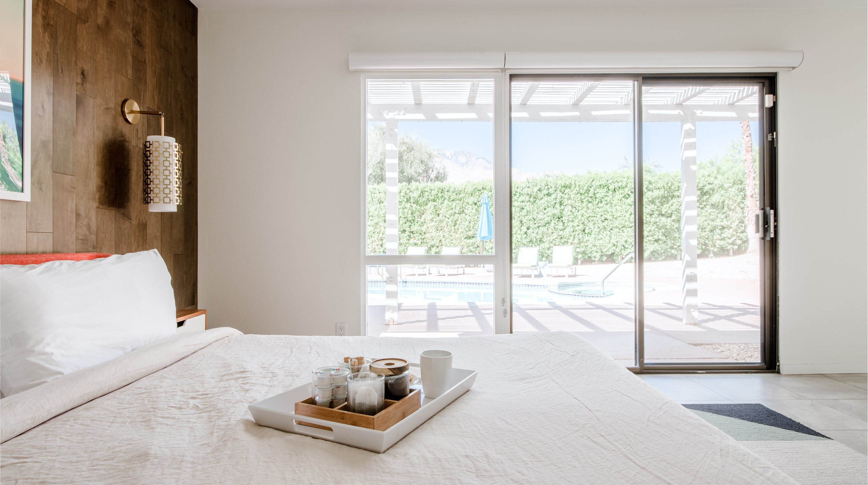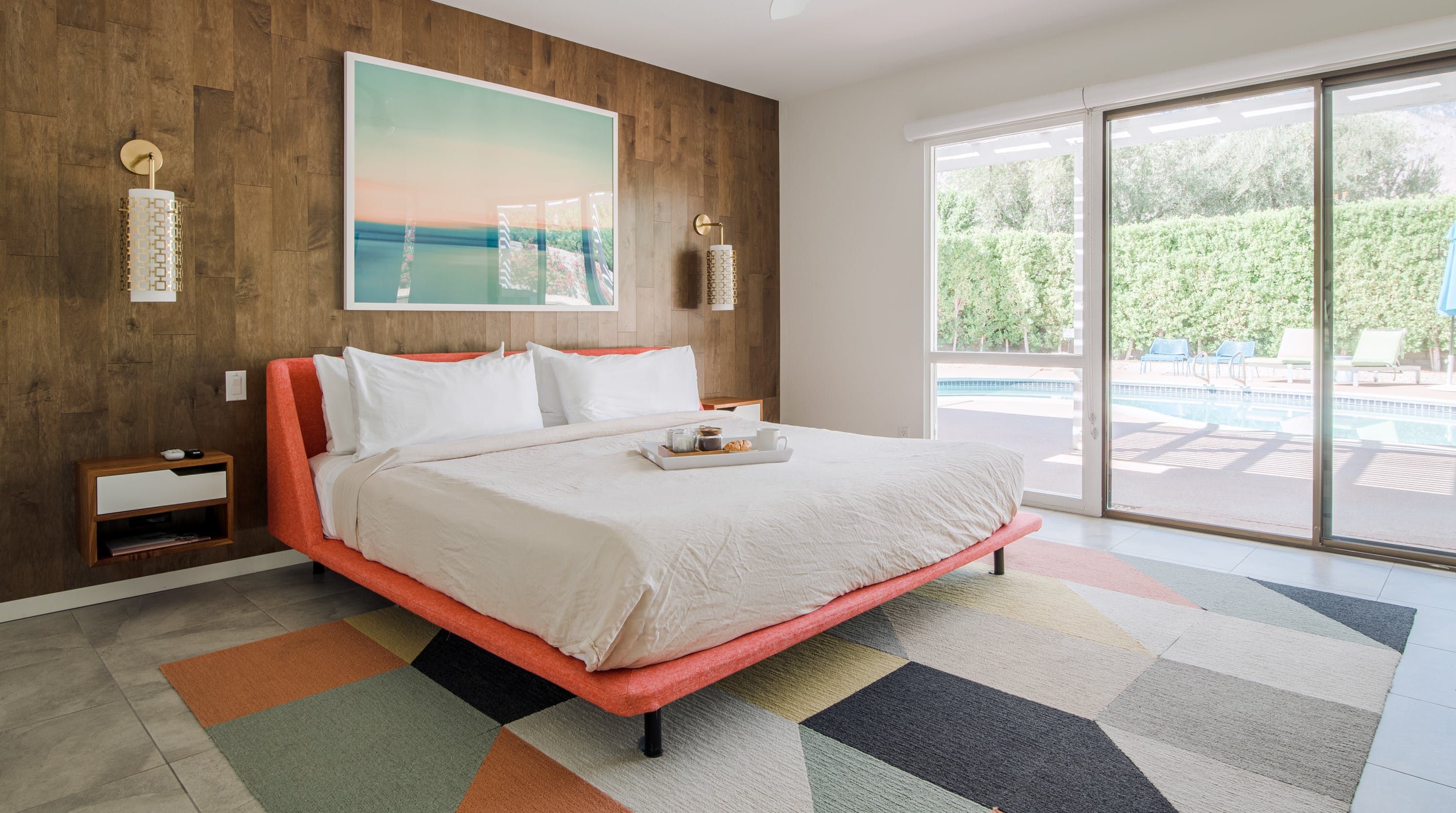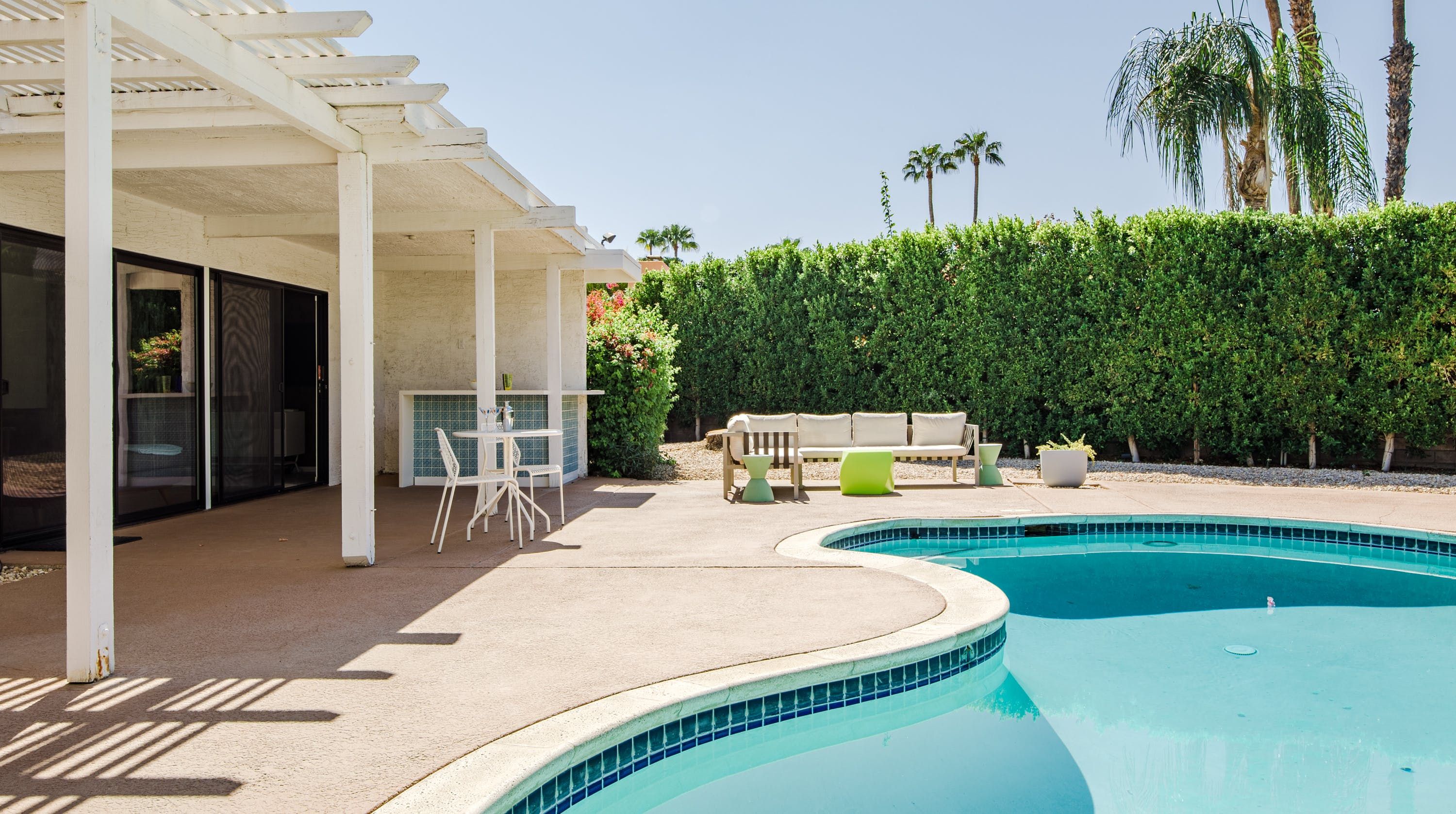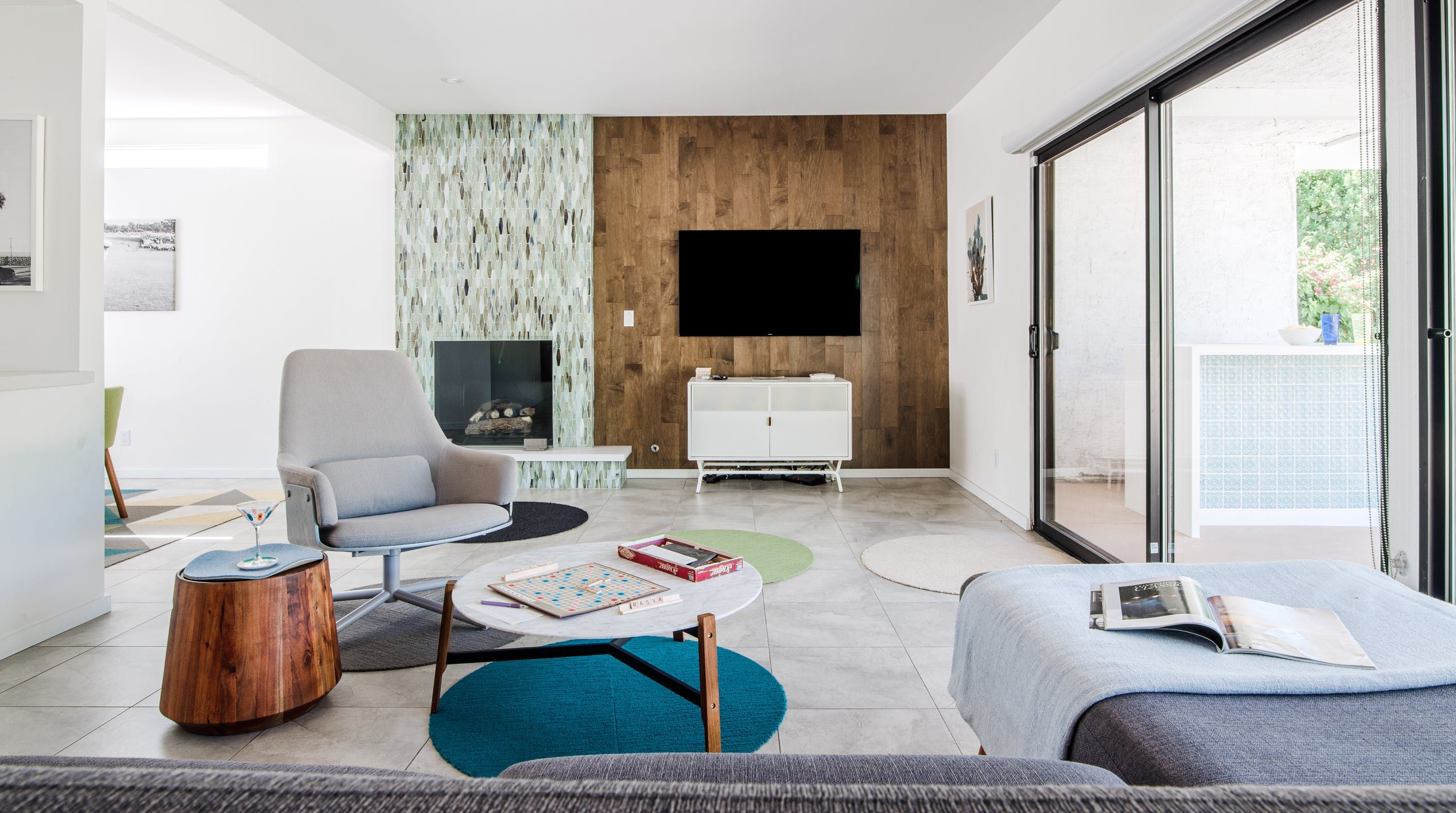 Vast sliding walls of glass blur the lines between indoors and out in this spacious, mid-century home, where glorious Palm Springs sunshine and gorgeous mountain views steal the show.