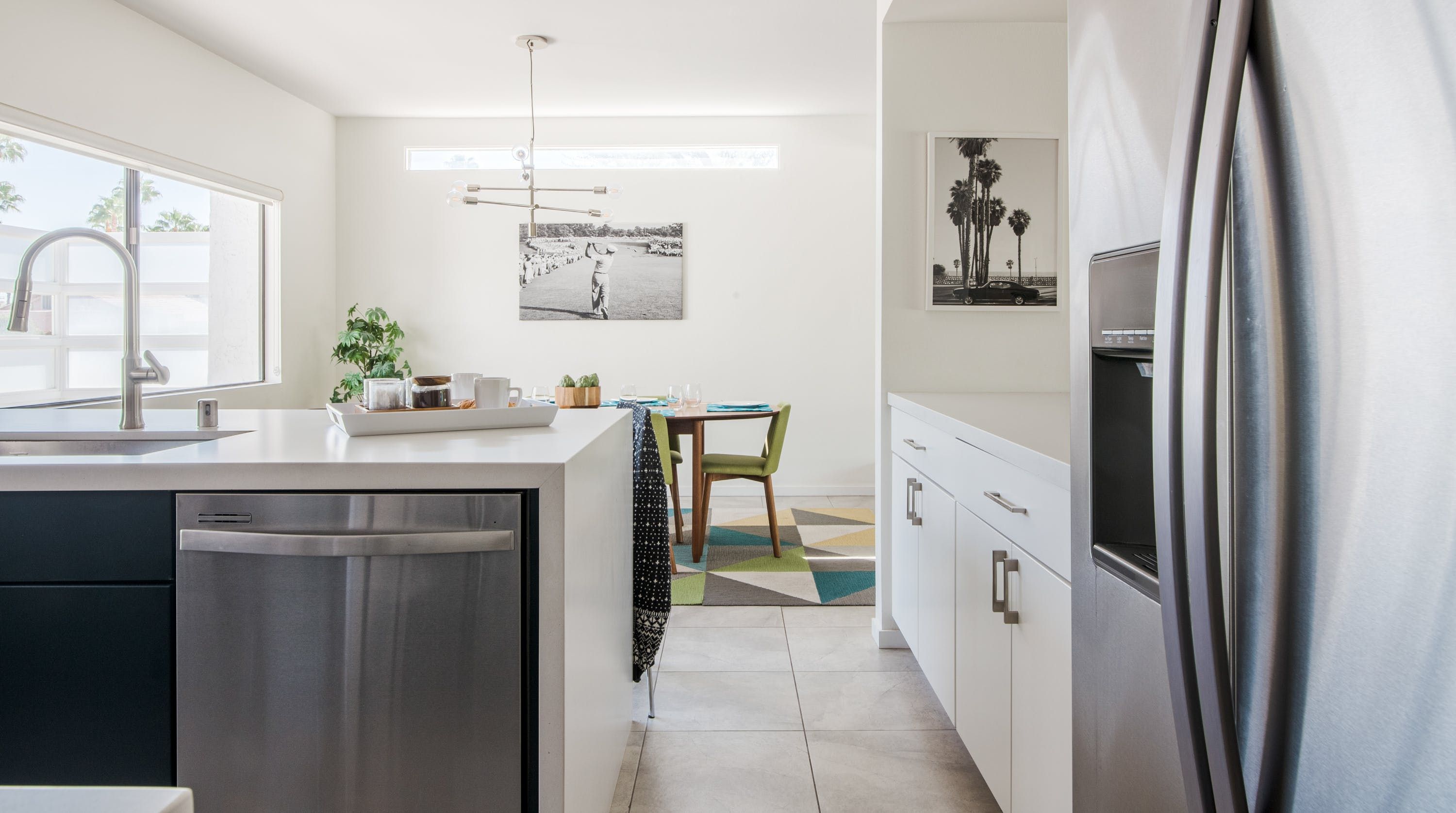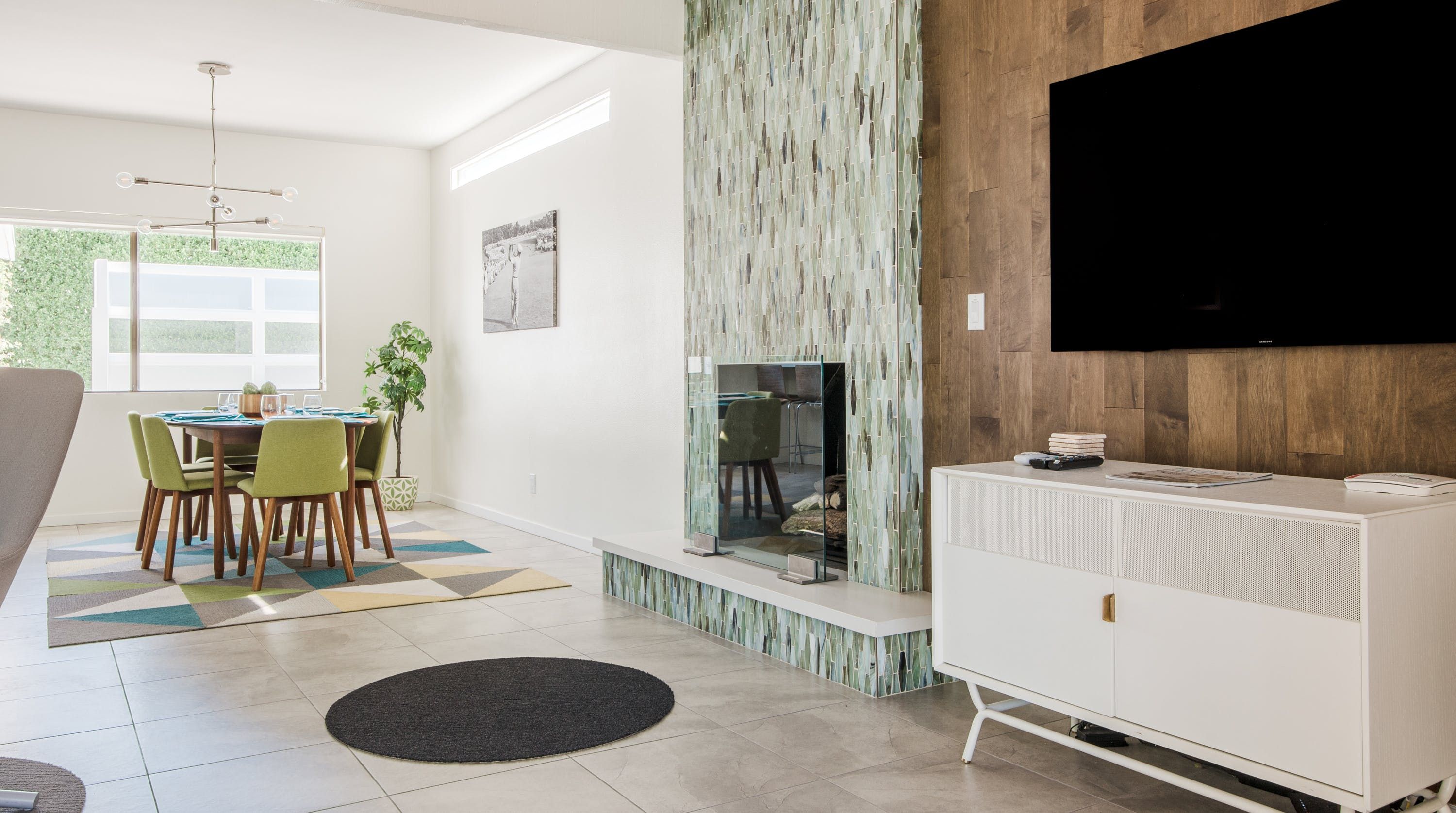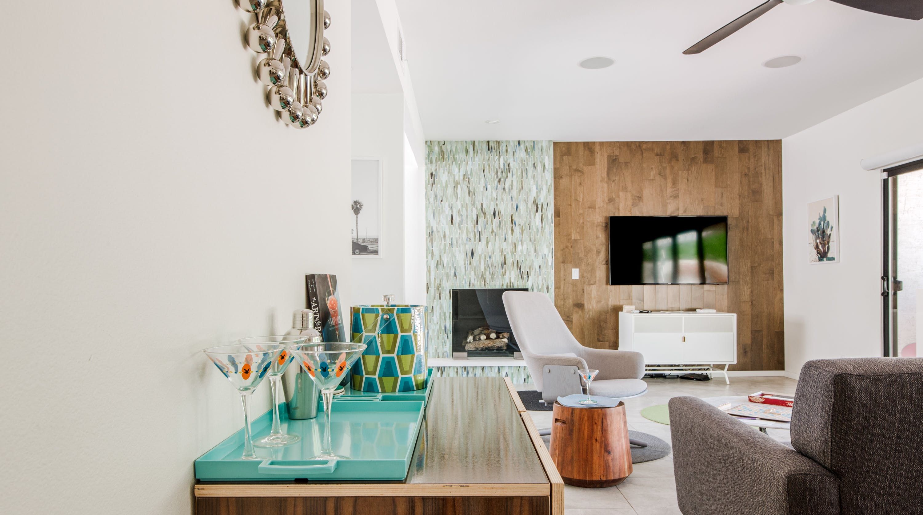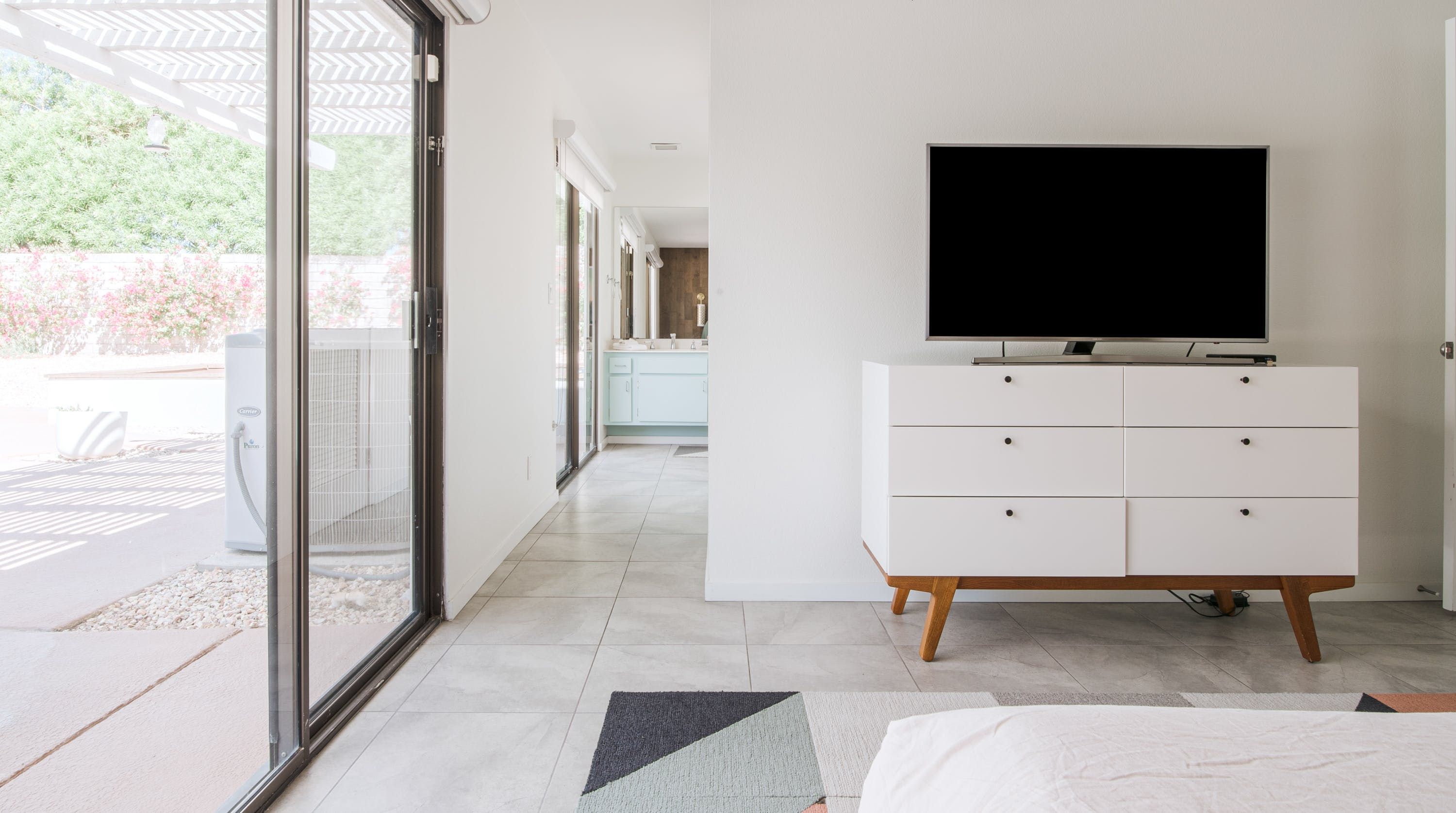 Vast sliding walls of glass blur the lines between indoors and out in this spacious, mid-century home, where glorious Palm Springs sunshine and gorgeous mountain views steal the show.