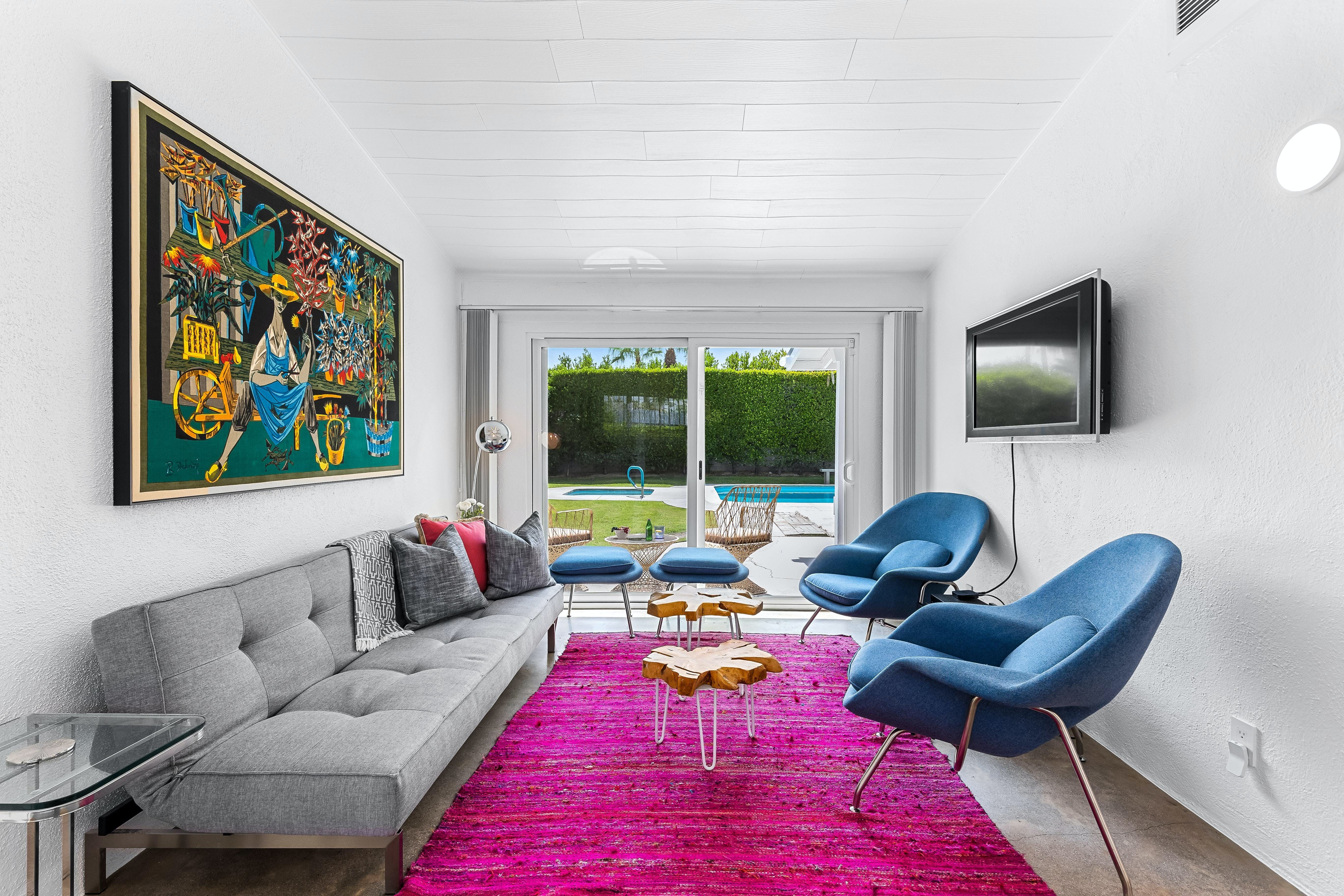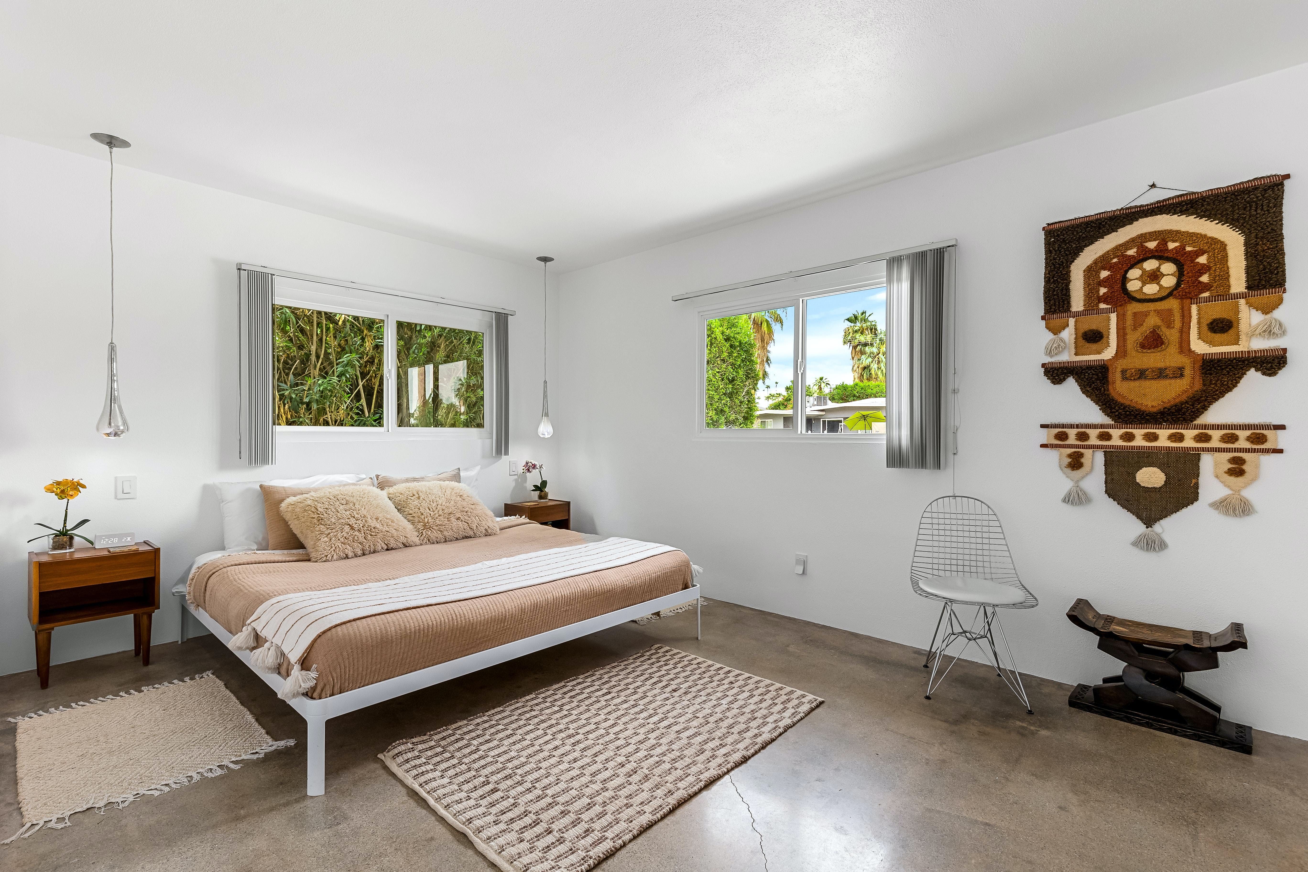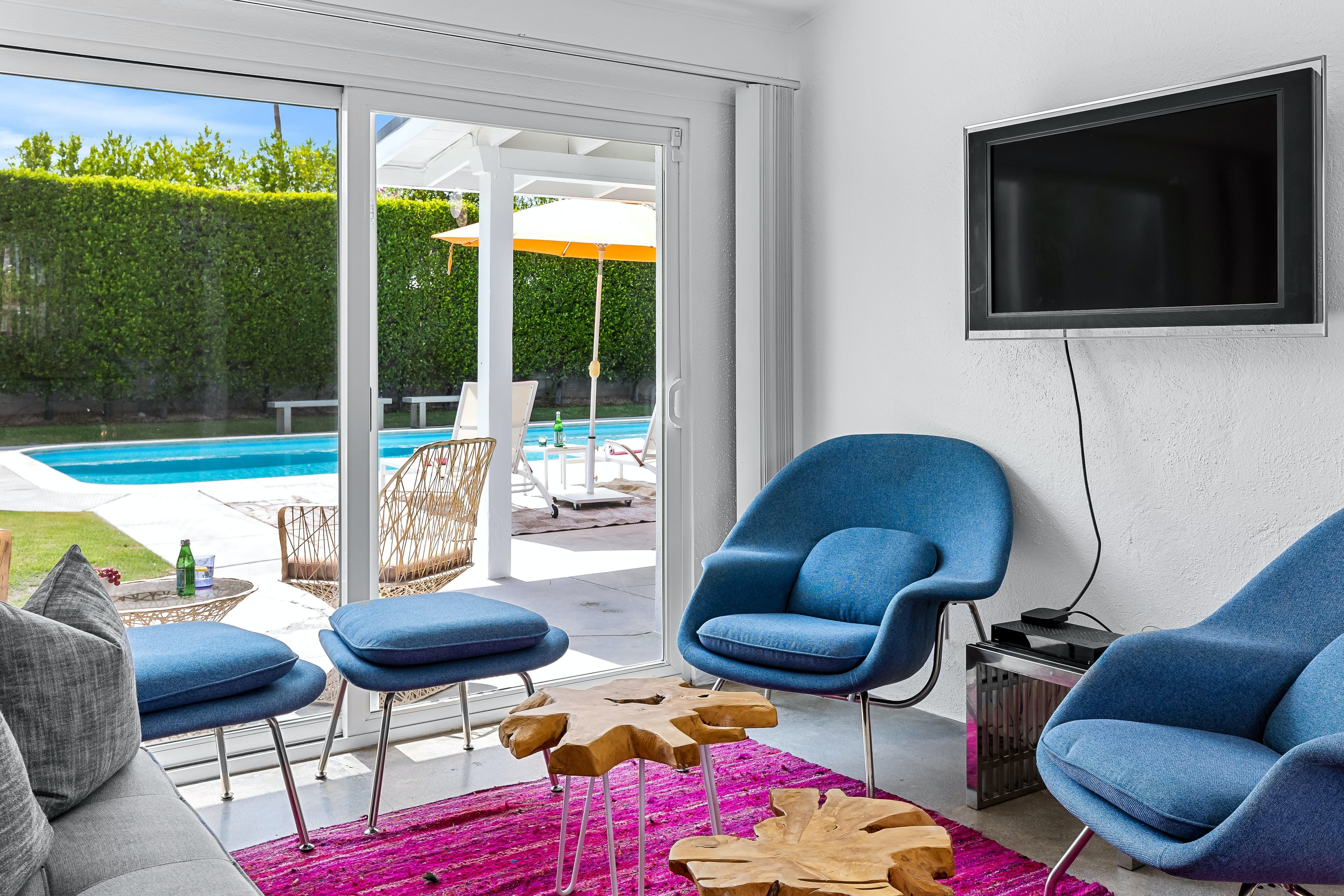 Five minutes from Downtown Palm Springs, this pad was made for fun in the desert sun. The backyard is a true oasis. Spend lazy afternoons floating in the private pool, take a relaxing soak in the hot tub, or sip cocktails on the covered terrace while admiring the mountain views. When the sun goes down, make a beeline for the fire pit and end the evening toasting marshmallows under the stars. Inside, expect a marriage between contemporary design and mid-century modern. It's bright, comfortable, and kitted out with all the essentials – what's not to love?