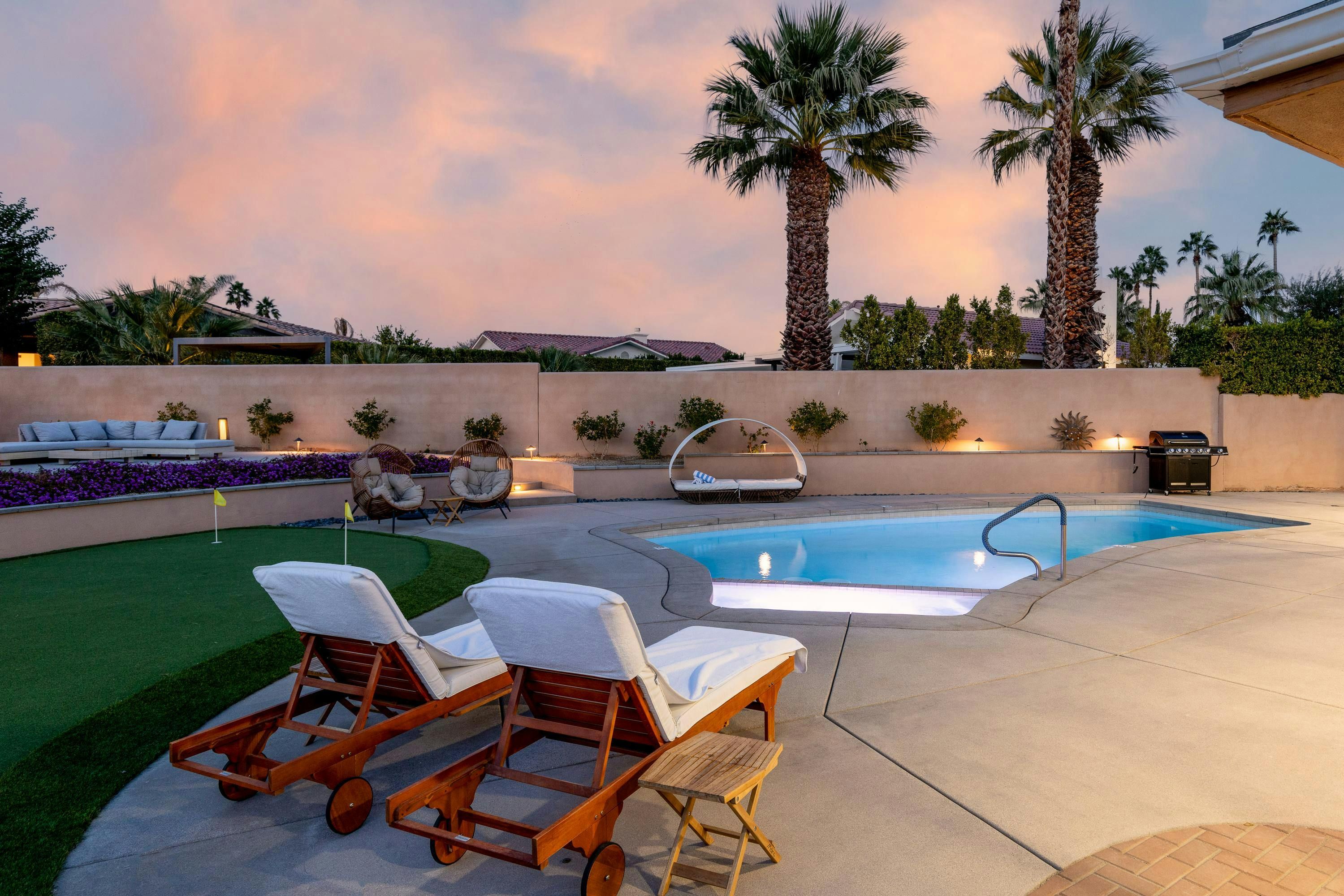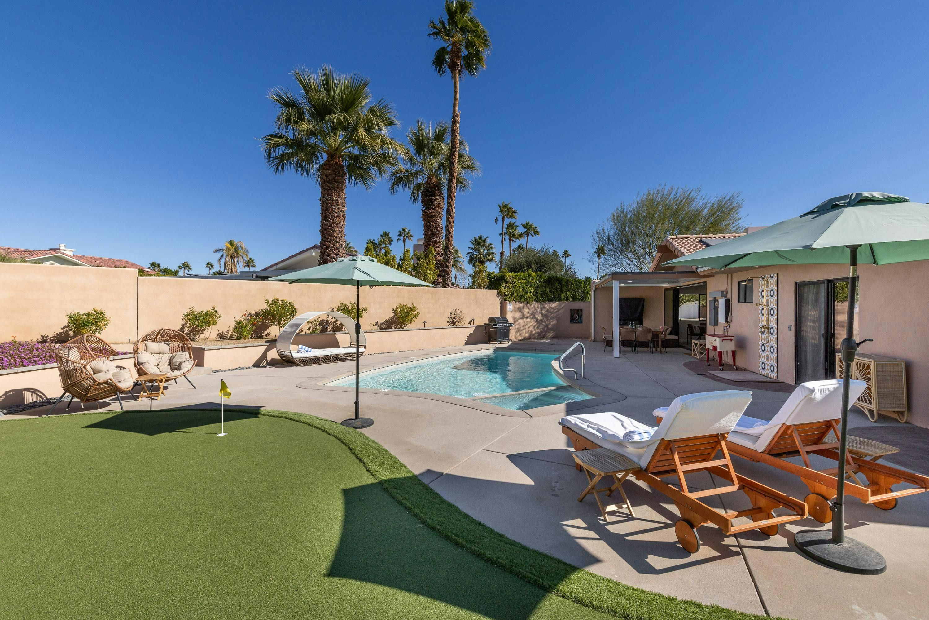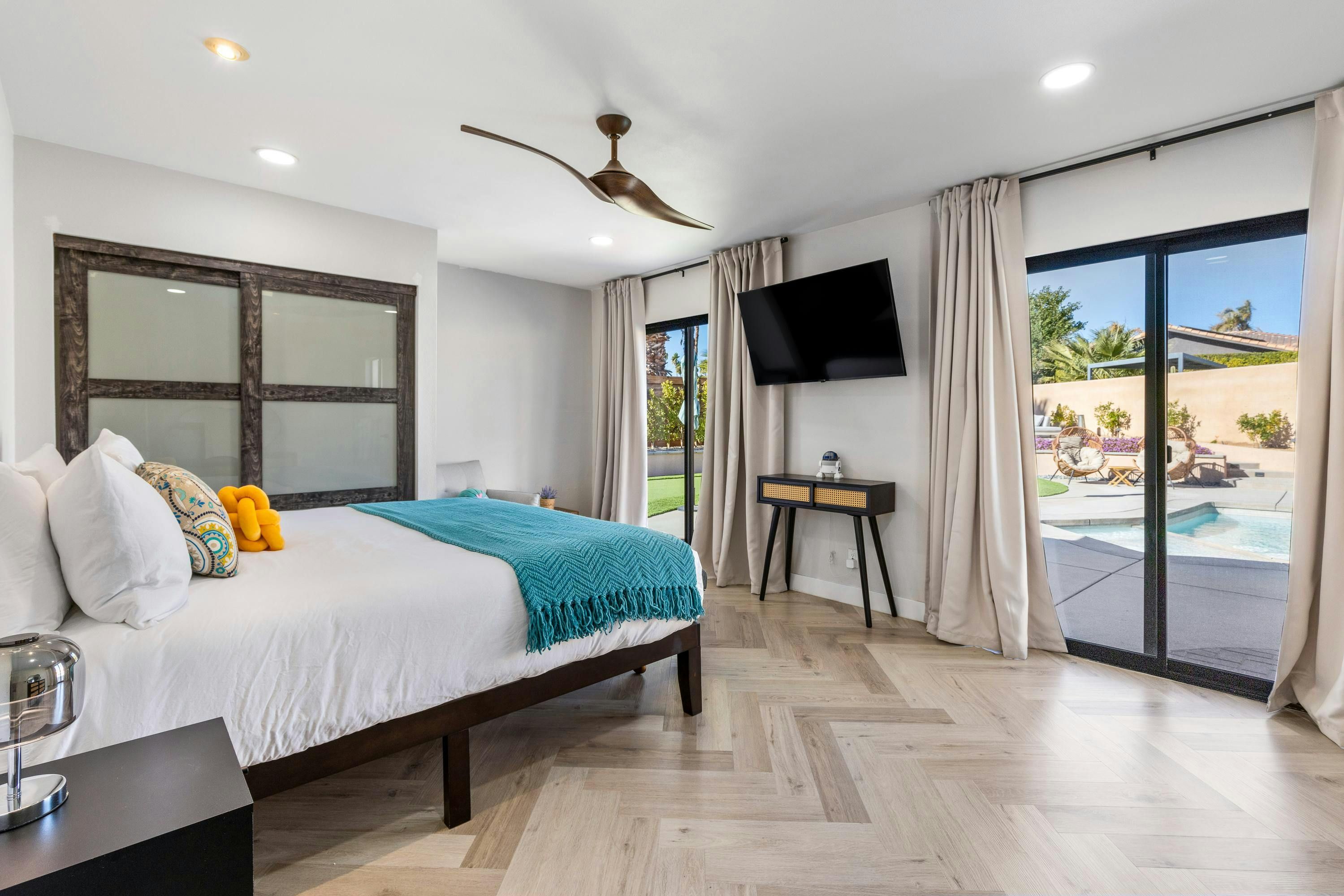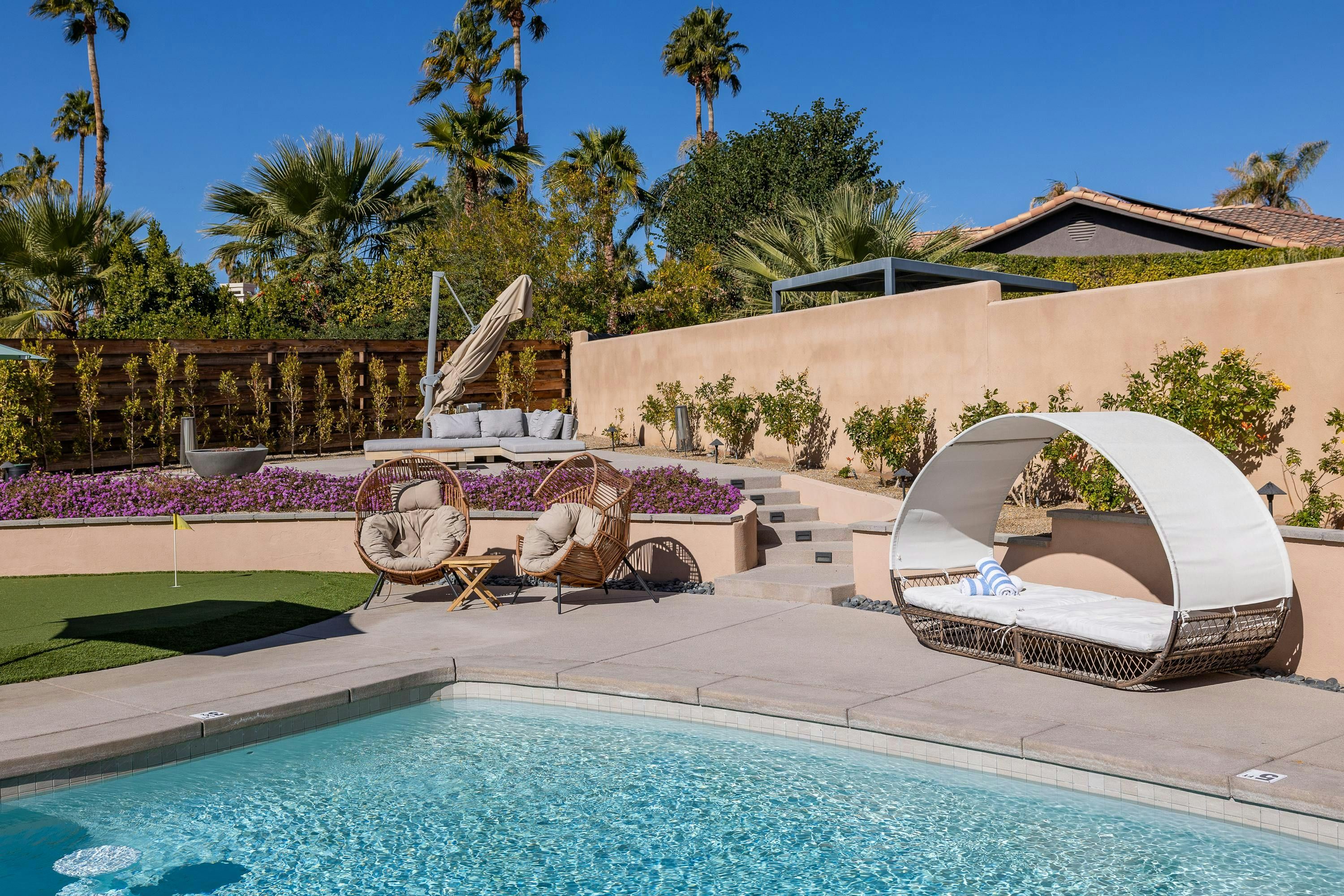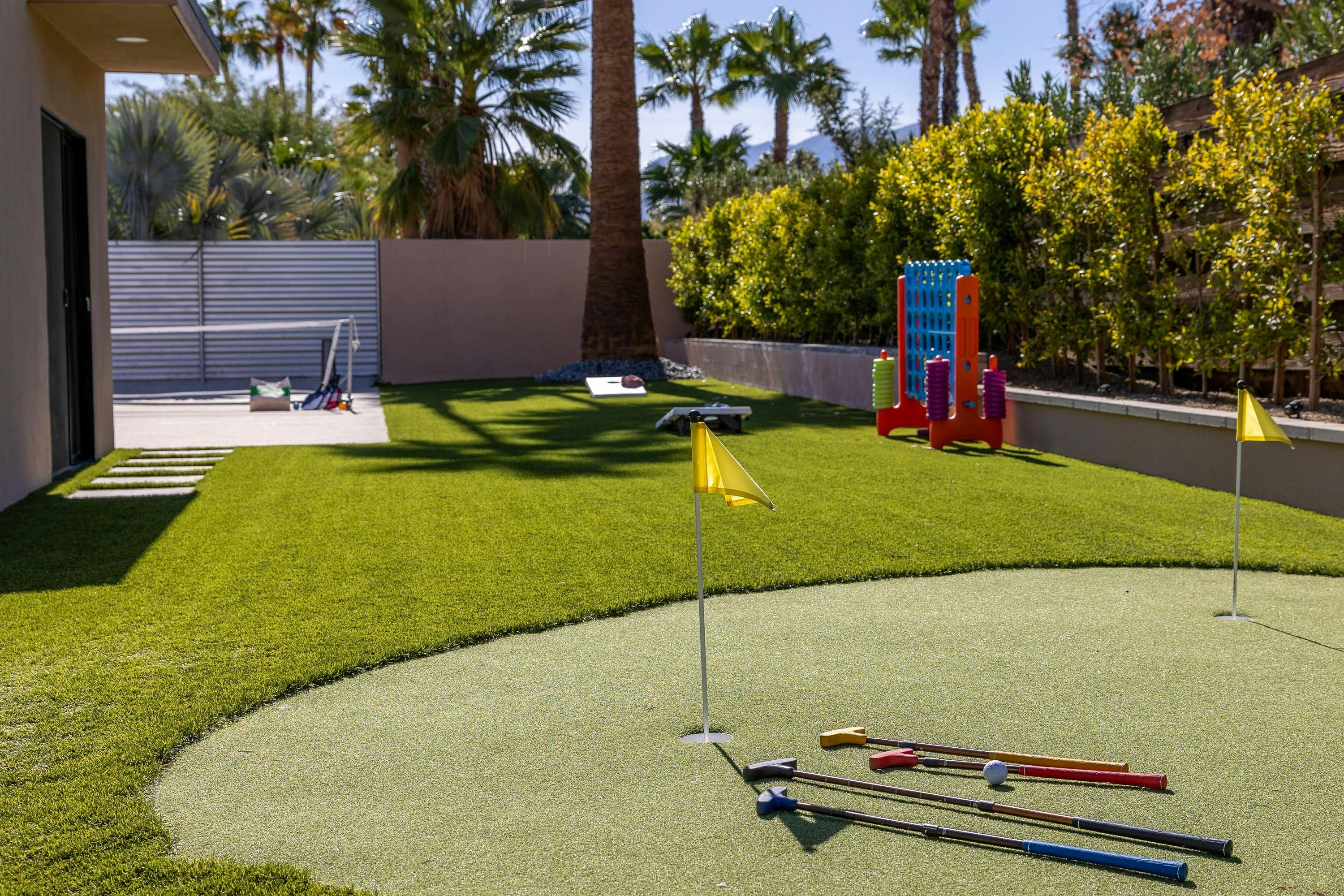 Luxury and fun abound at this wonderful Palm Springs home. The outside space is perfect for relaxing and making memories, whether you’re swimming in the pool, dining alfresco, or roasting marshmallows over the firepit. With its golf putting green, pickleball court, and cornhole, there’s plenty to keep big kids entertained, and you’ll be within easy reach of hiking and biking trails, too. We love the open-plan layout – it’s perfect for a family or group of friends wanting to spend quality time together.