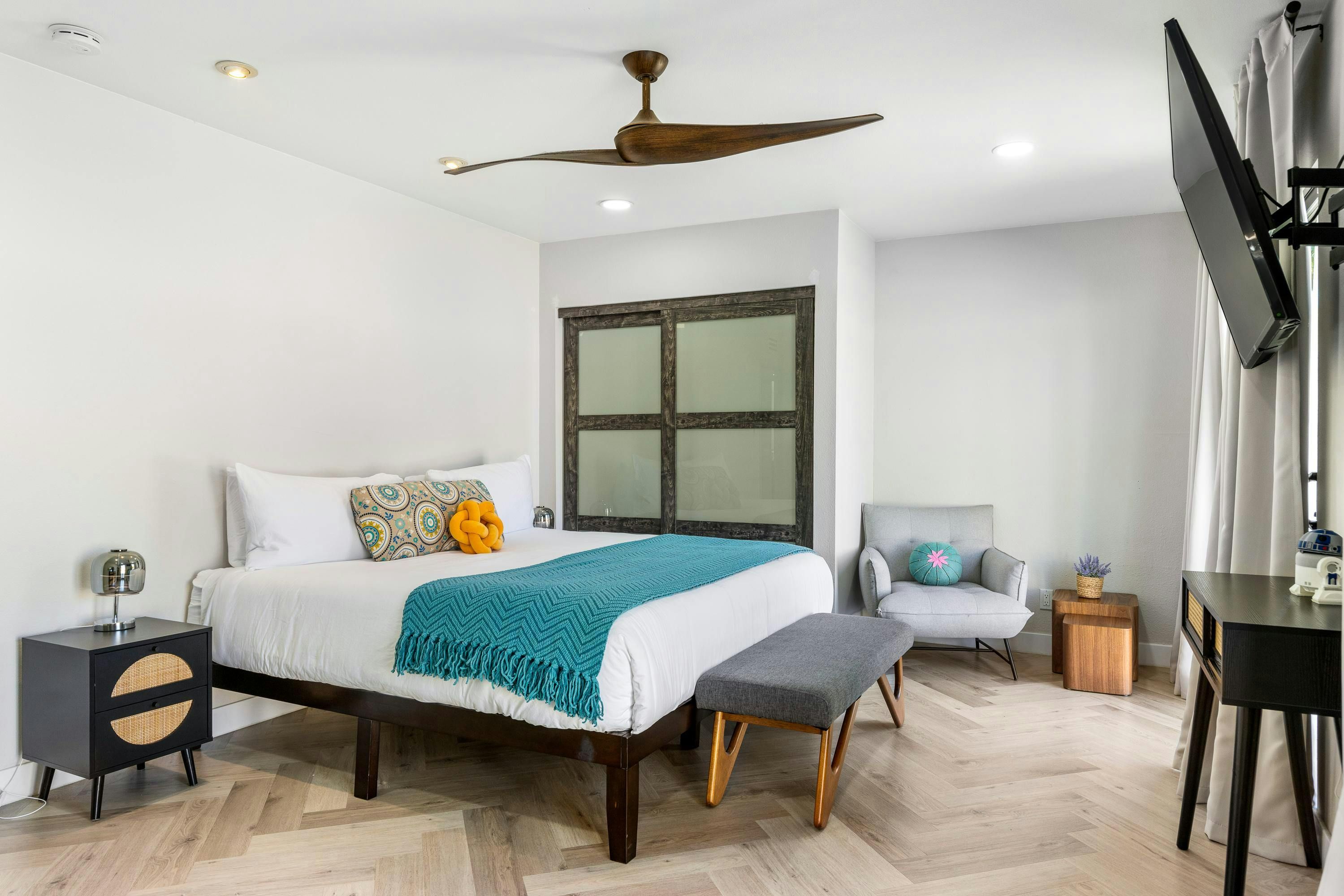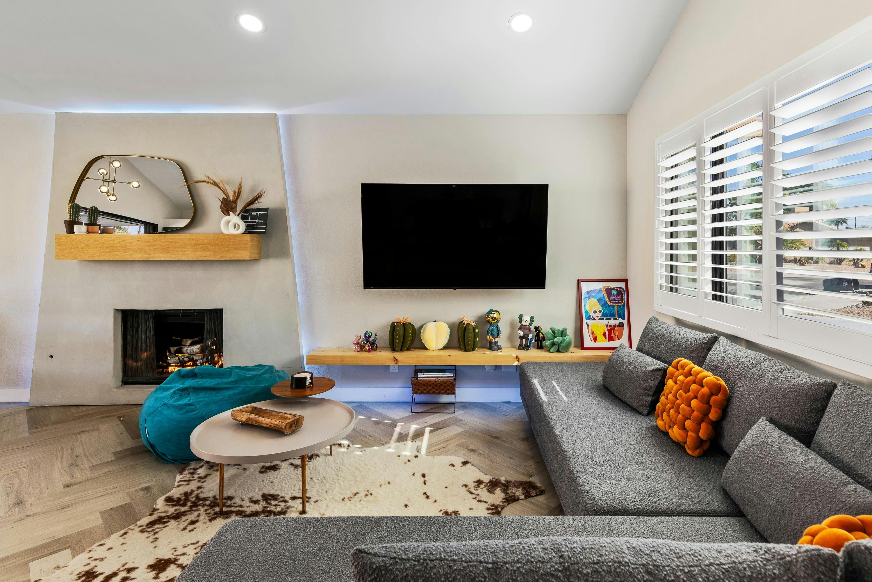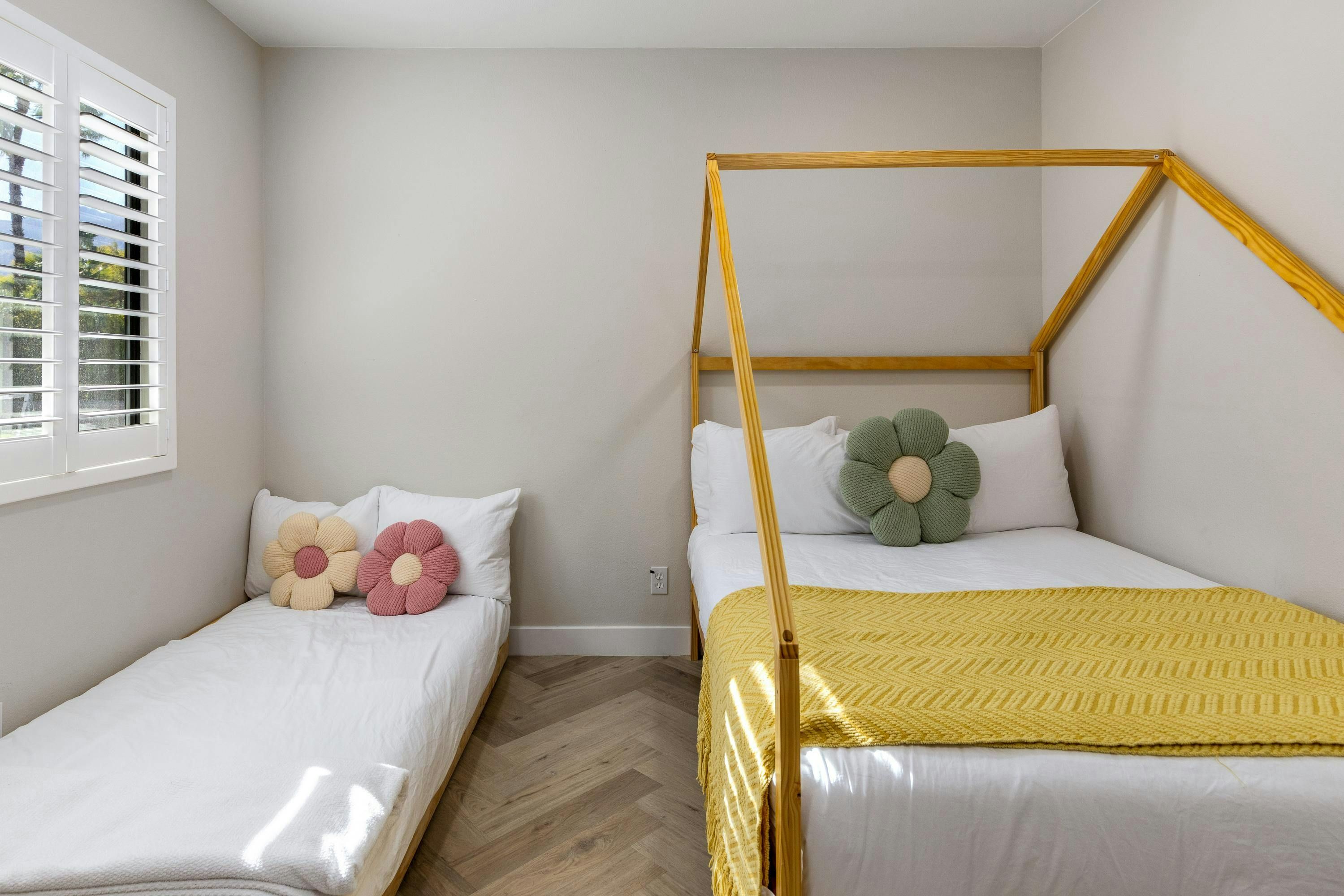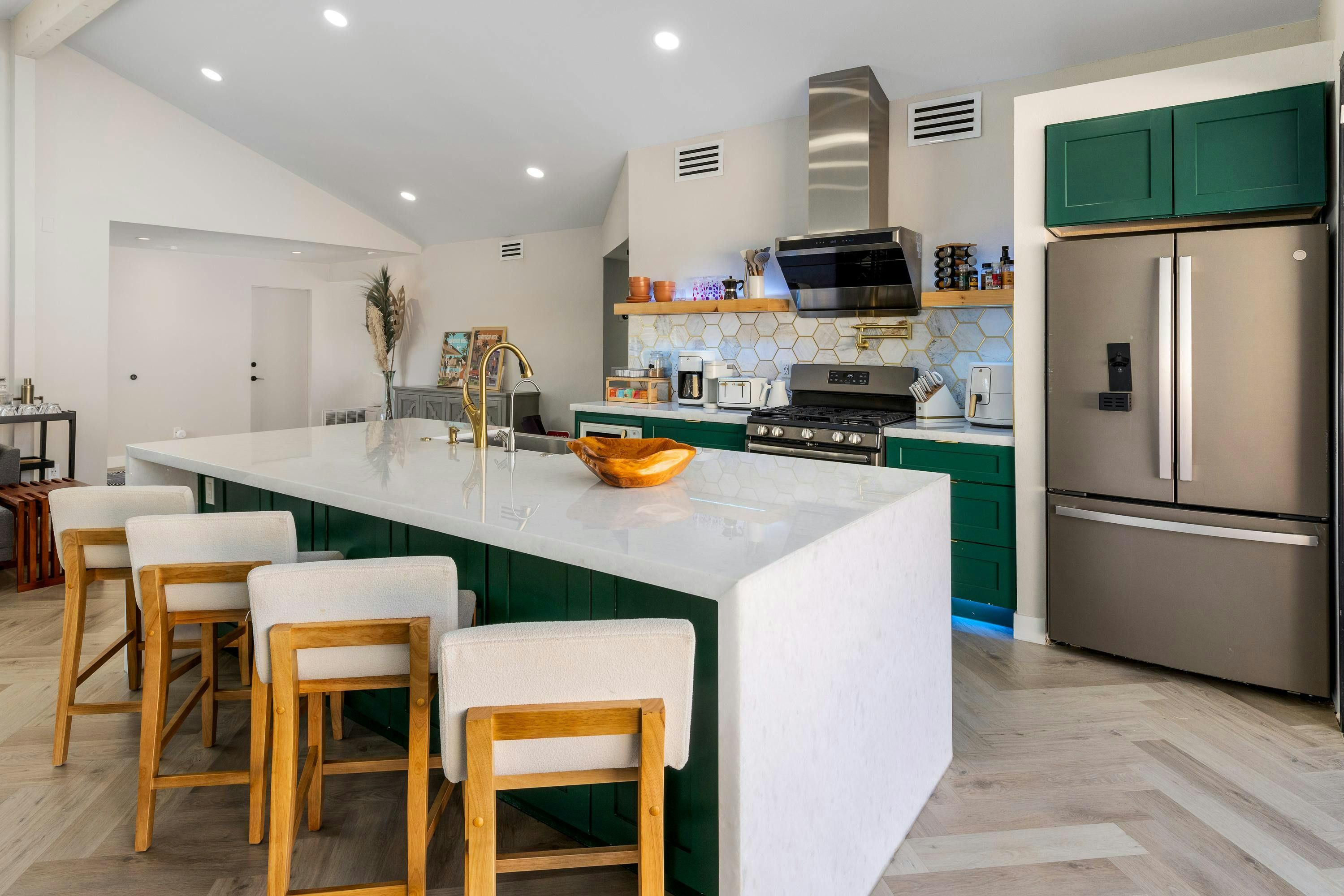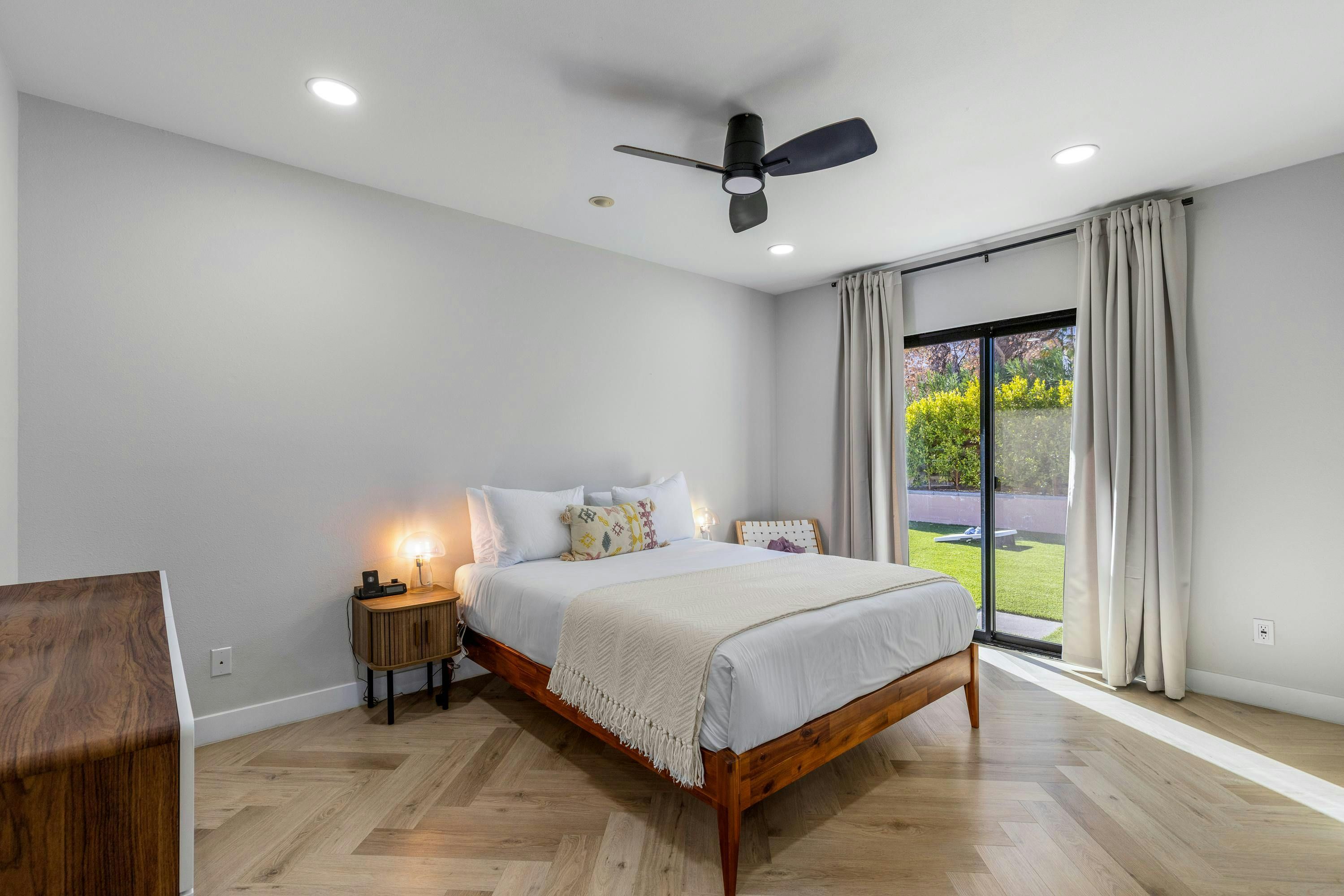 Luxury and fun abound at this wonderful Palm Springs home. The outside space is perfect for relaxing and making memories, whether you’re swimming in the pool, dining alfresco, or roasting marshmallows over the firepit. With its golf putting green, pickleball court, and cornhole, there’s plenty to keep big kids entertained, and you’ll be within easy reach of hiking and biking trails, too. We love the open-plan layout – it’s perfect for a family or group of friends wanting to spend quality time together.
