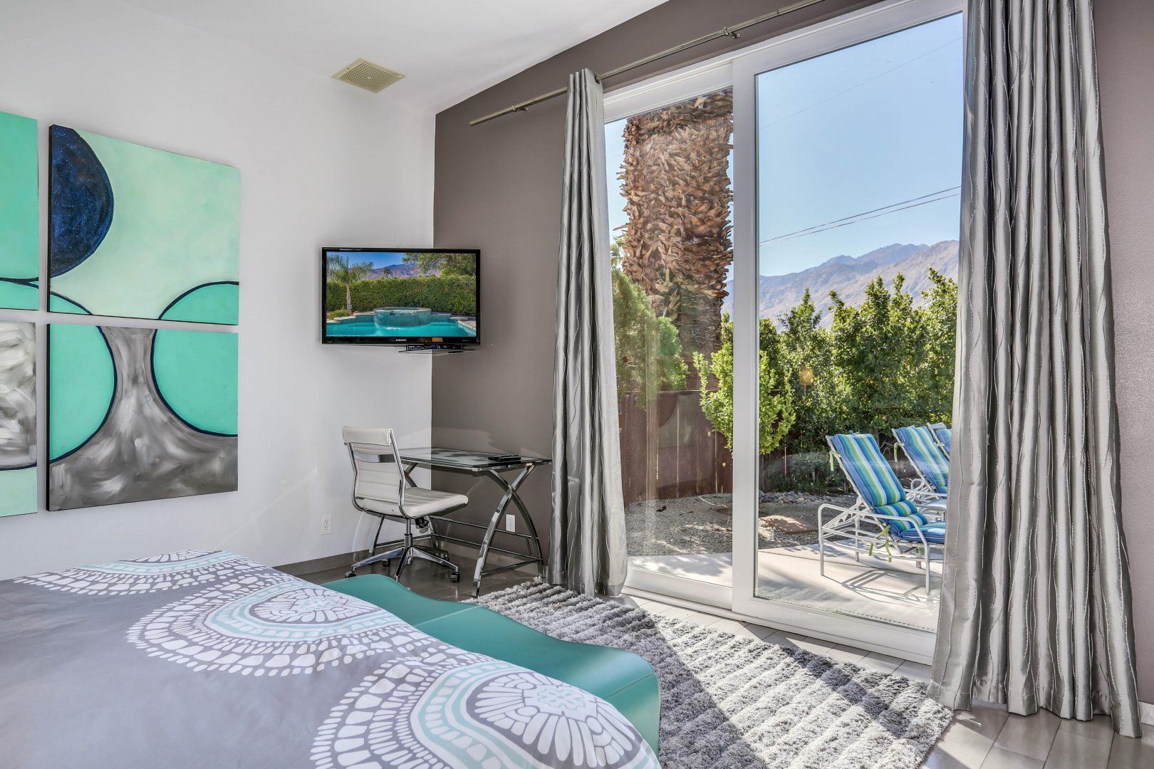 Natural light – and glimpses of the palm trees and cacti outside – streams through huge windows into the bold and eclectic living space, illuminating the dynamic artworks and colour-popped furnishings. This home’s thoughtful interior is all-encompassing – plush velvet sofas invite you to sit back, throw open the patio doors and let the breeze wash over you, whilst the large open kitchen is perfectly designed to host relaxed breakfasts. One of our favourite allures of this home is the garden, where you can spend the day poolside on the loungers or diving into the pristine pool or sinking into the elevated hot tub - complete with a waterfall feature. When evening unfolds, spark the fire pit for S’mores under the starry sky Palm Springs is famous for.