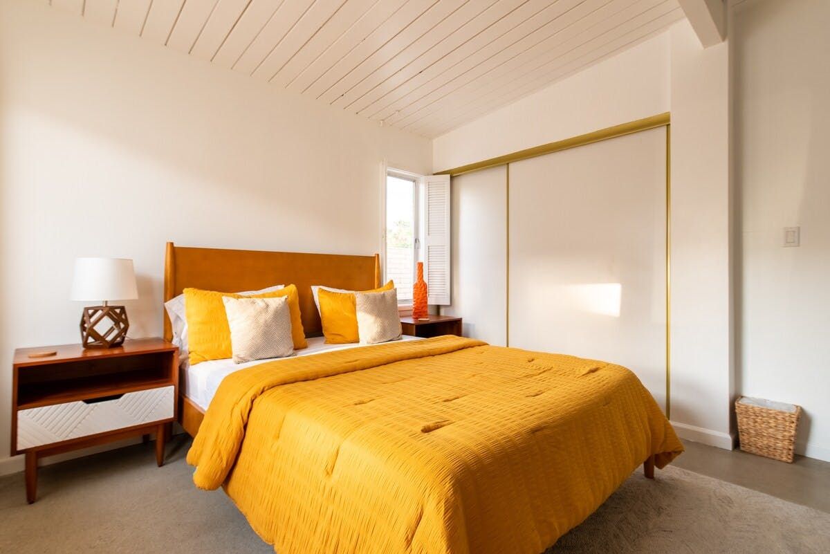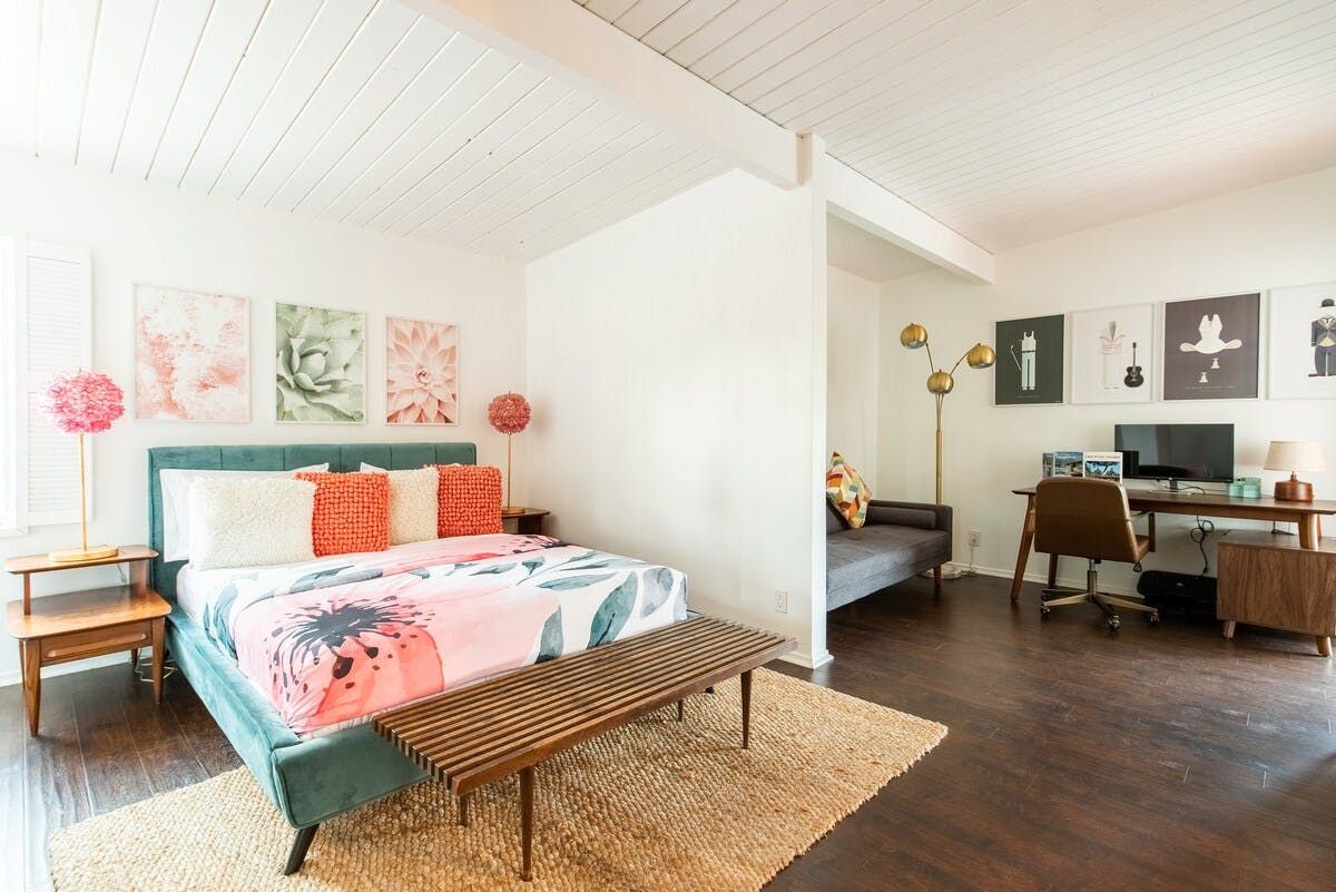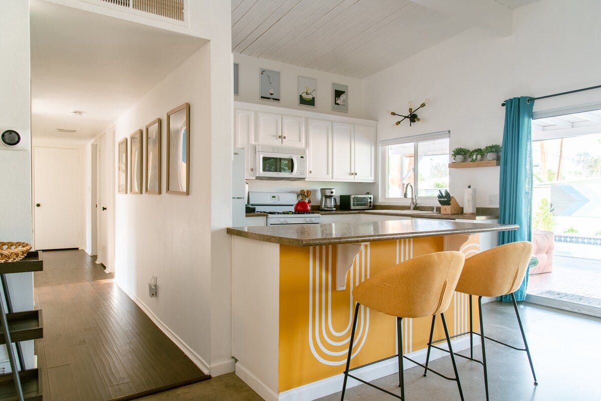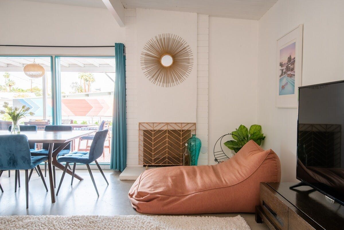 We’re willing to bet that some good-natured individual watched a rainbow materialise in the sky, grabbed a handful of the resulting magic, threw it in a gift box wrapped in serenity and released it into this home. With eye-catching custom murals and generous touches of blue all around, you’ll find yourself in an oasis as exuberant as the outdoors of Palm Springs that Hollywood stars can’t seem to get enough of.