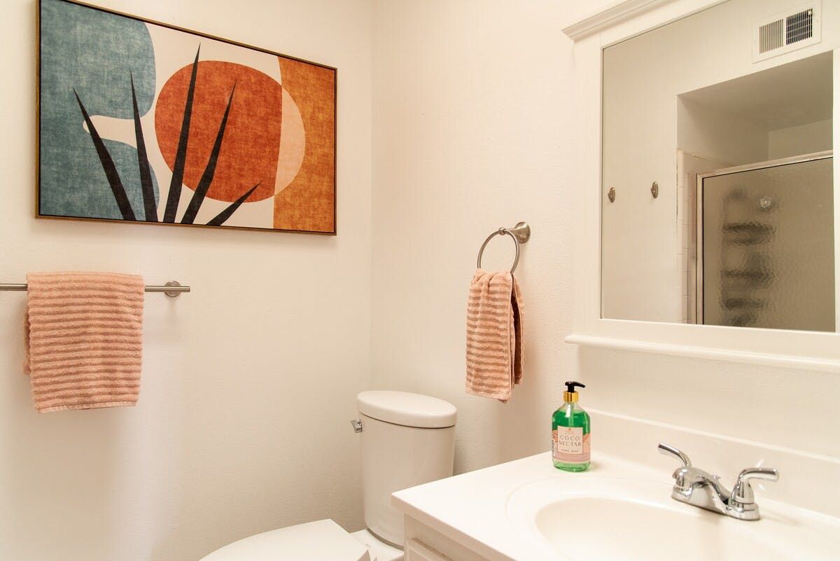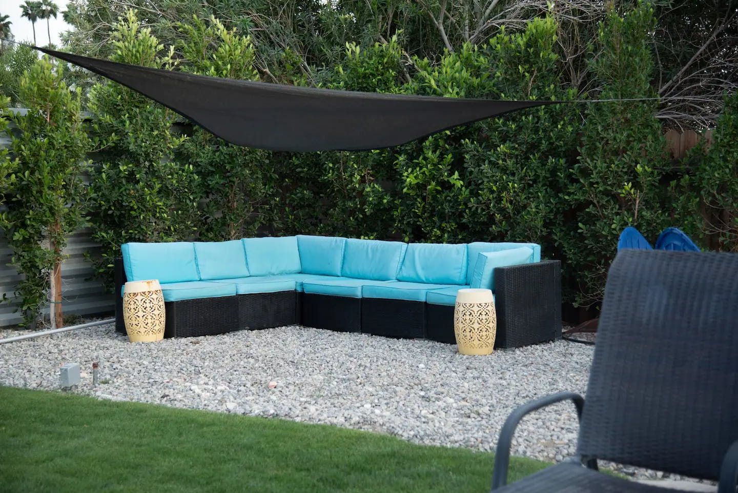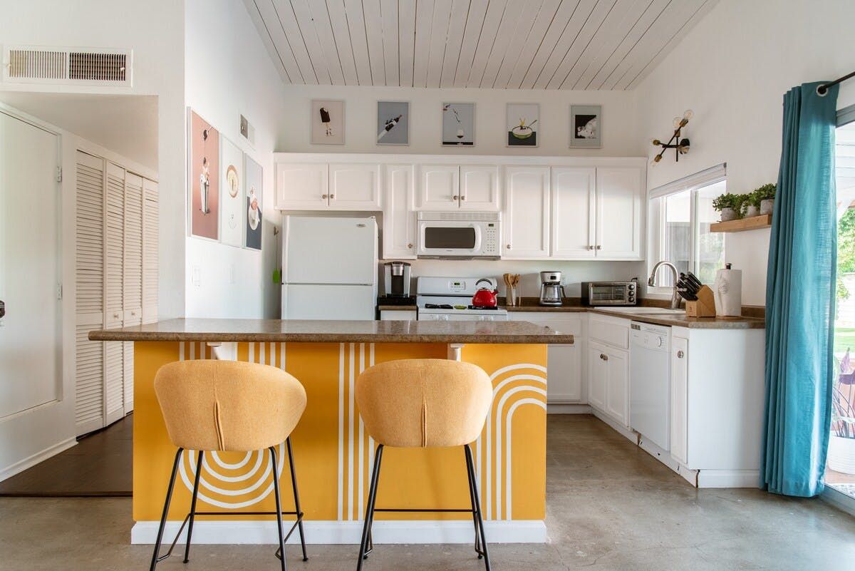 We’re willing to bet that some good-natured individual watched a rainbow materialise in the sky, grabbed a handful of the resulting magic, threw it in a gift box wrapped in serenity and released it into this home. With eye-catching custom murals and generous touches of blue all around, you’ll find yourself in an oasis as exuberant as the outdoors of Palm Springs that Hollywood stars can’t seem to get enough of.