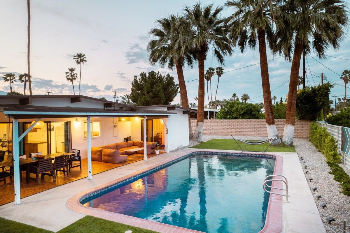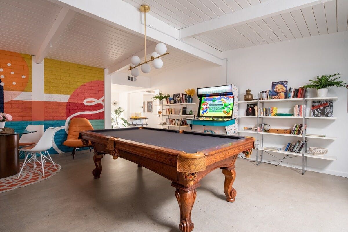 The home is a mid-century modern delight, and you’ll find a library with a lounge just for reading, a pool terrace dotted with energising palm trees and sensational views of the mountains, and a games room made for indulging in some friendly competition with your fellow guests. You won't want to leave but if you ever decide to, an adventure is always calling out in the Indian Canyons and you’re a five-minute drive from the eclectic mix of shops (everything from candy shops to record stores) in Downtown Palm Springs.