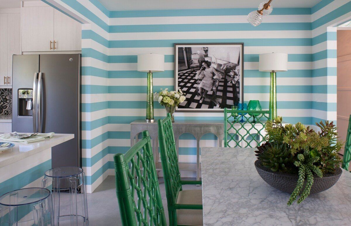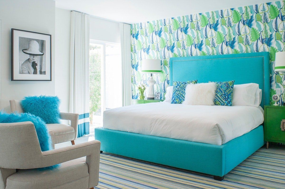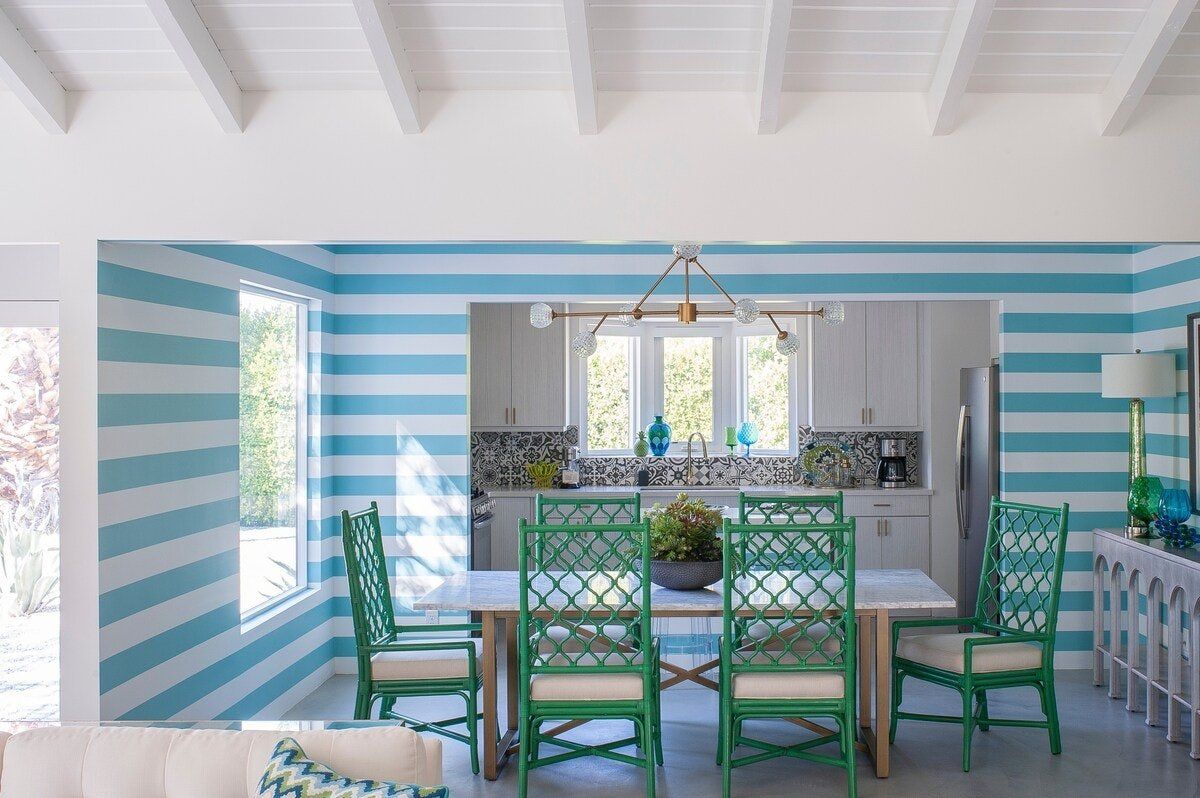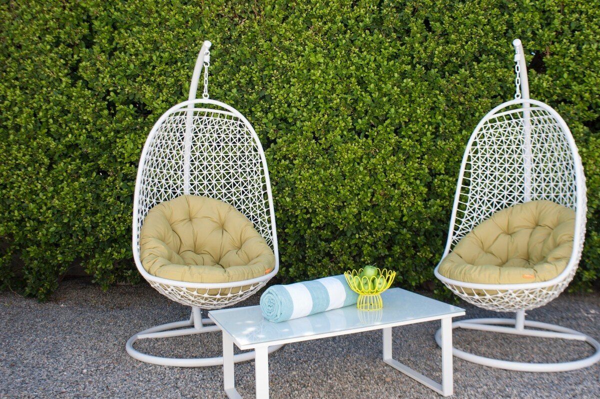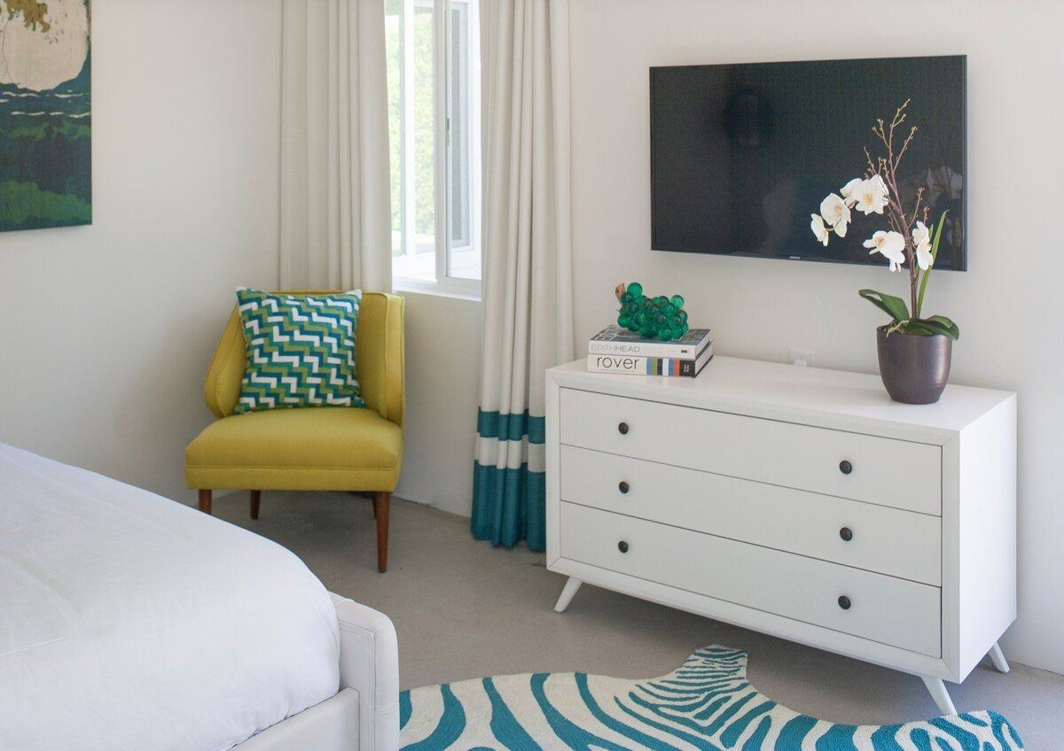 On a corner spot surrounded by high hedges, this Palm Springs home feels private and peaceful. Inside, mid-century style mixes with tropical colours and patterns, which makes for quite a playful atmosphere. There's nothing shy about it, but we love the whimsical wallpaper choices and bold pops of colour. But the real draw here is the garden. As well as the oval-shaped pool, there’s a gas fire pit built into the ground, a croquet lawn and a barbecue, all with views of the San Jacinto Mountains. It's your own little oasis — you can easily spend all day cooling off in the pool and lounging in the sun. If you feel up for an adventure, downtown Palm Springs is just a twenty-minute walk away, and there are plenty of nature trails and hiking spots close by, too.