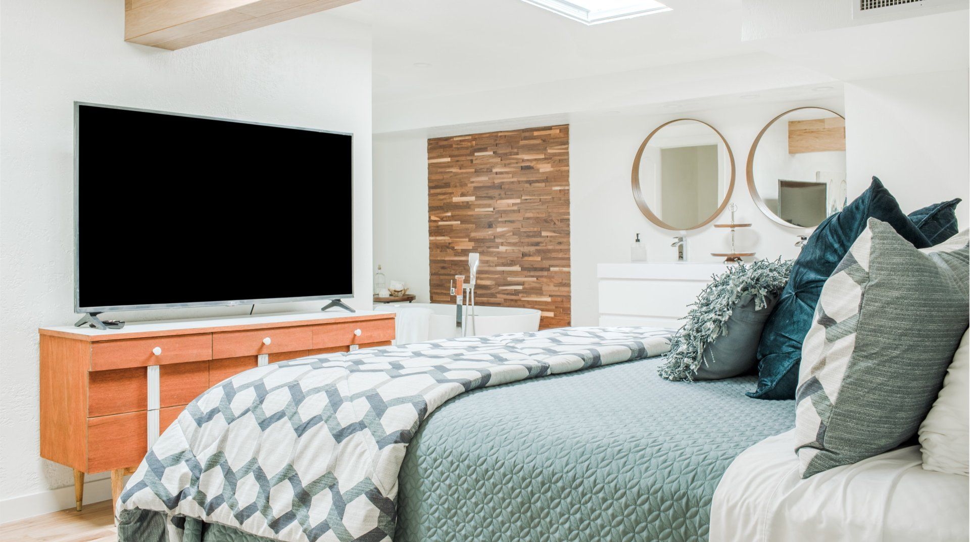 Set in the exclusive resort city of Indian Wells, here you'll be surrounded by tennis courts, golf courses, spas, and country clubs. With its mid-century aesthetic and high-end amenities, it’s the kind of place you imagine featuring in an early season of Mad Men. There’s even a cocktail cart, so you can practise making Manhattans. Nothing here feels out of place – everything from the art to the bedding feels meticulously chosen for this specific space. Outside, you'll have a private courtyard to sit out in, and shared grounds to explore. There's a communal pool, volleyball court and grass spaces for games of Bocce ball. And if you do want to get out and explore, Palm Springs is a short drive away, while there are all sorts of hiking opportunities in the San Jacinto Mountains behind the home.