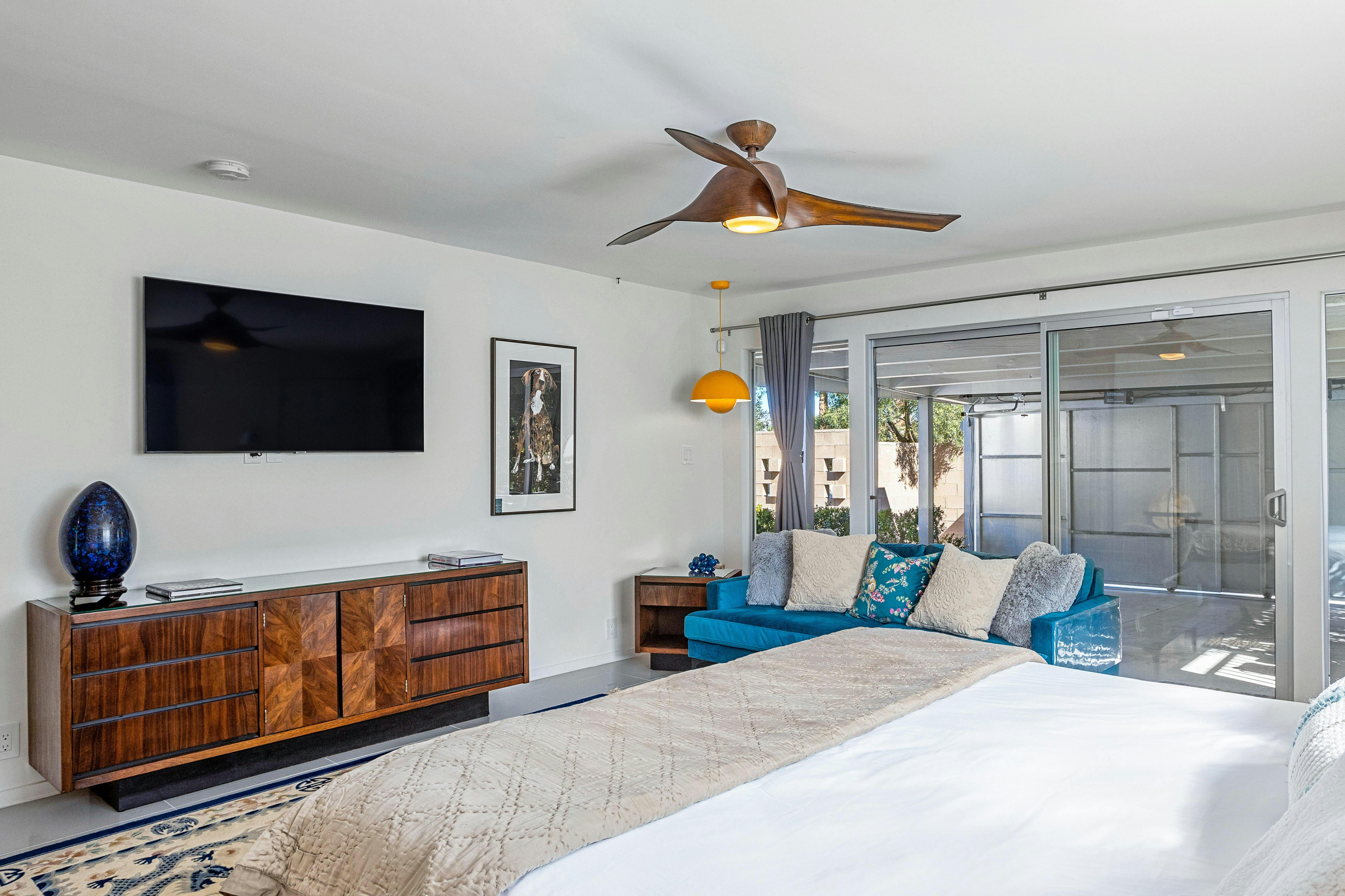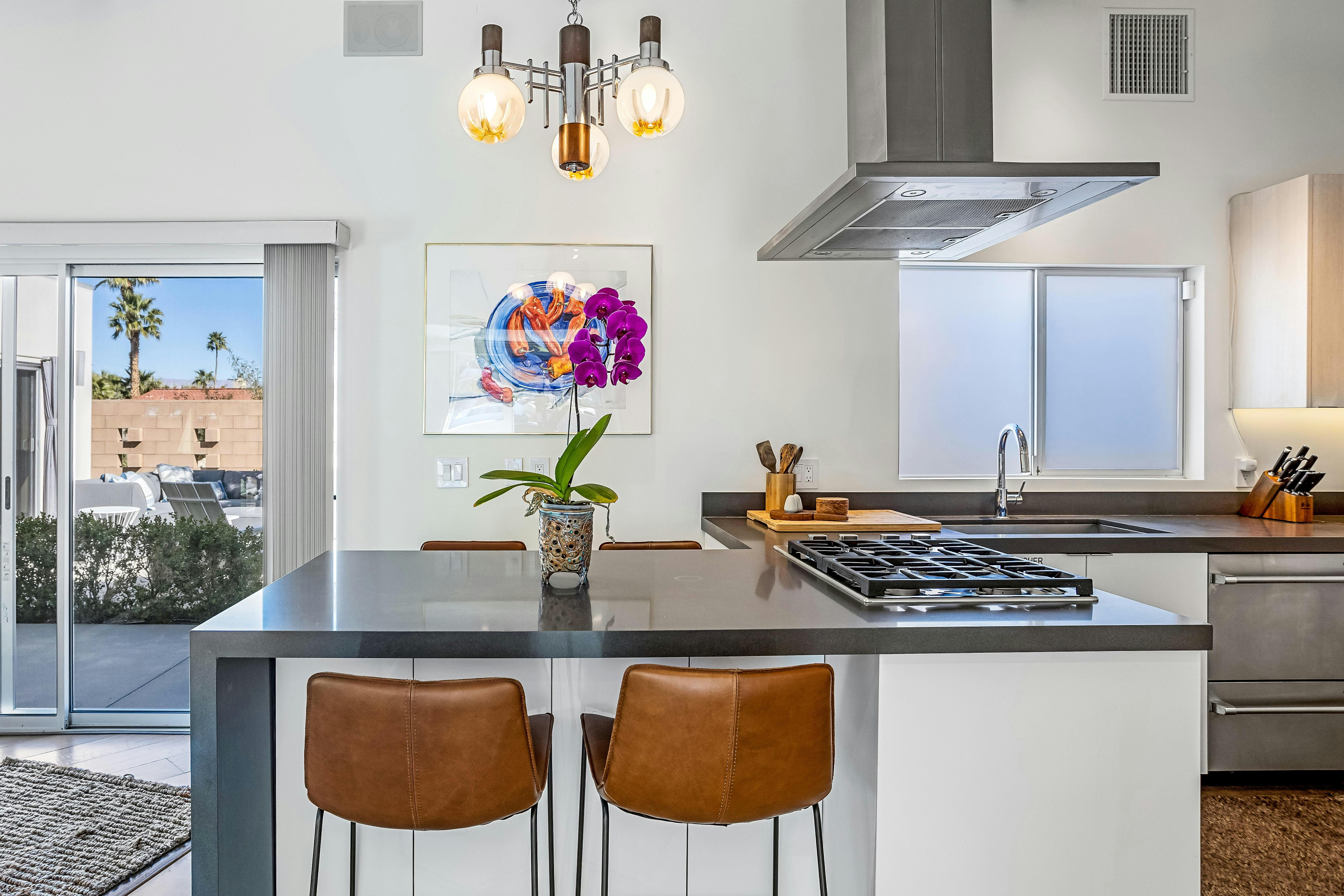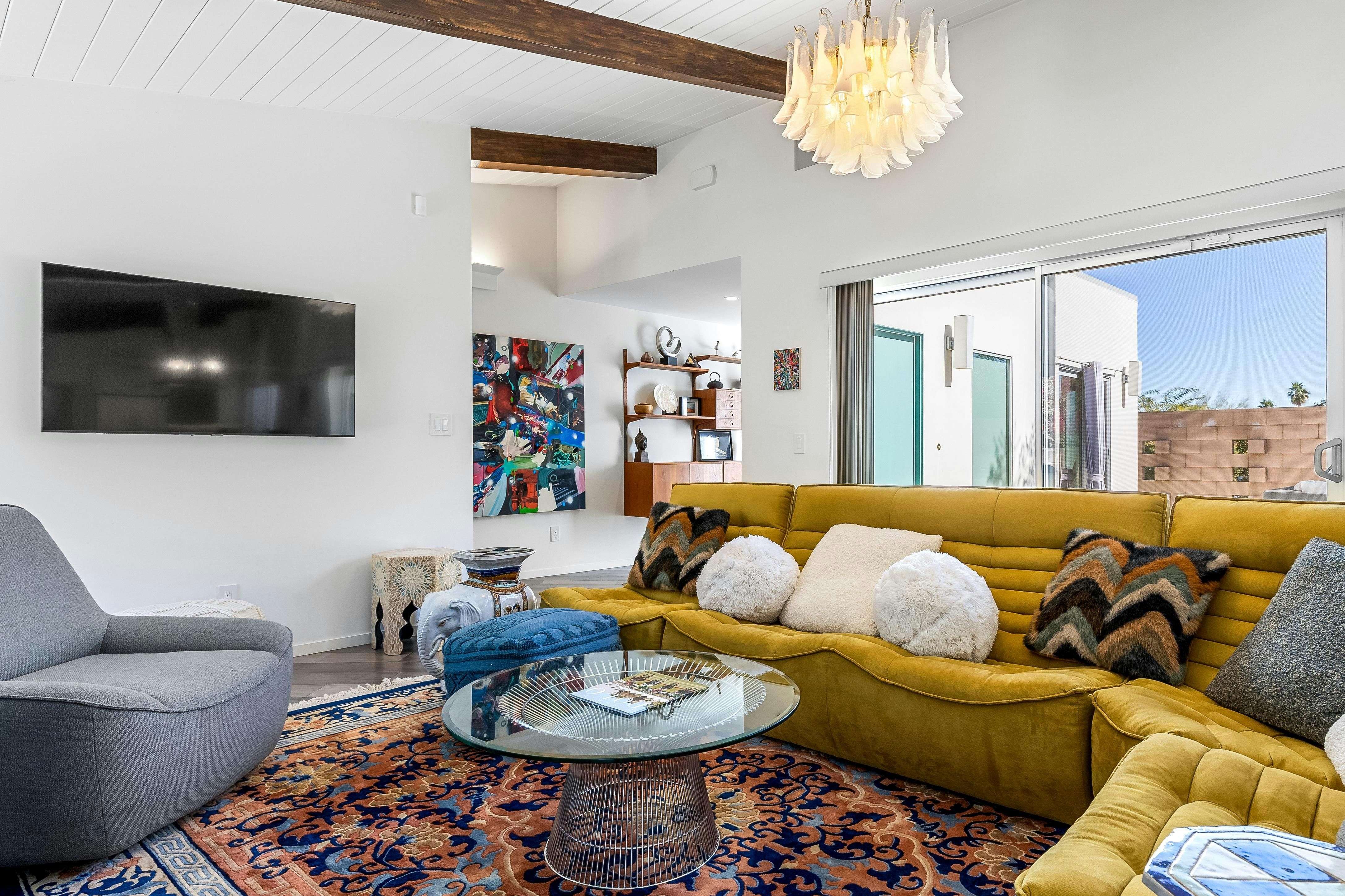 With a privileged spot in the exclusive Little Tuscany neighbourhood, this home sets the tone for a magical Palm Springs getaway. You’ll be treated to mountain and valley views as we’ll as a saltwater pool and heated spa. There’s also a barbecue and two fire pits for unforgettable evenings under the stars. Inside, the rooms provide a cosy sanctuary to switch off and unwind. There’s an indoor fire and a separate casita with a kitchenette – perfect for those seeking a little extra privacy. You will need a car to get around here, but it’s just minutes to Palm Canyon Drive where you’ll find restaurants, galleries and shops.