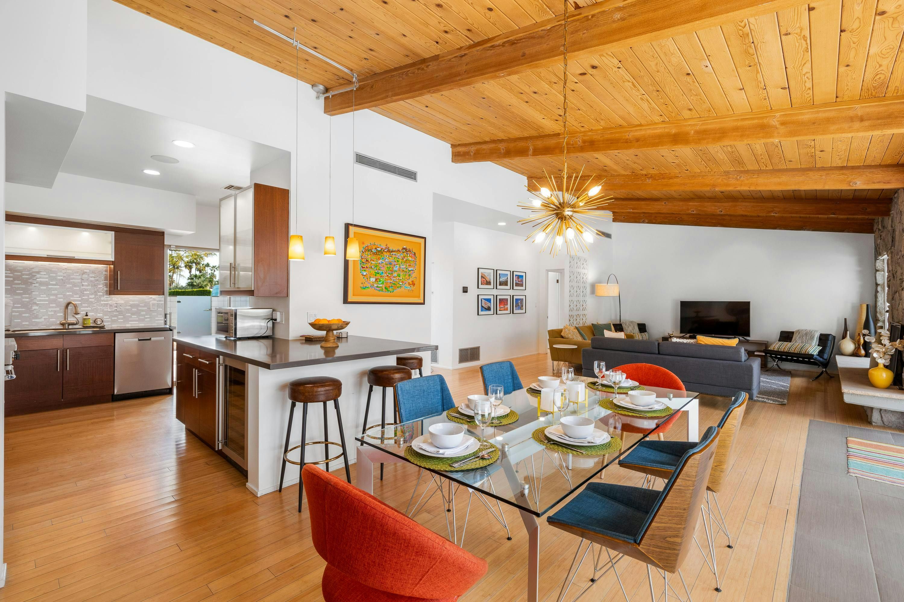This mid-century modern gem in Vista Las Palmas is a dream for lovers of iconic design. With its clean lines, mountain views and seamless indoor-outdoor flow, it captures everything that's celebrated about Palm Springs. Spend your days by the private pool or cooking in the outdoor kitchen, then gather around the fire pit as the sun sets behind the San Jacinto Mountains. You’ll be a short walk from downtown’s dining, shopping and design scene, plus it's well worth renting a car to visit Joshua Tree.