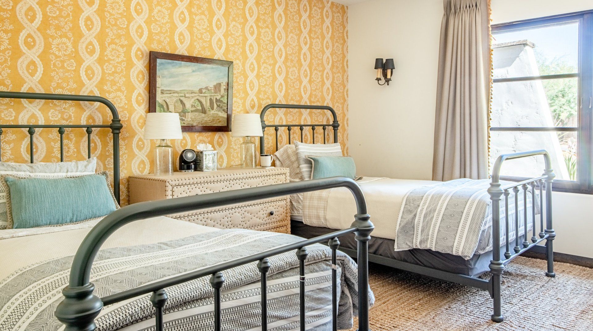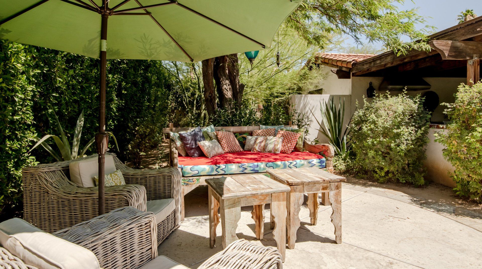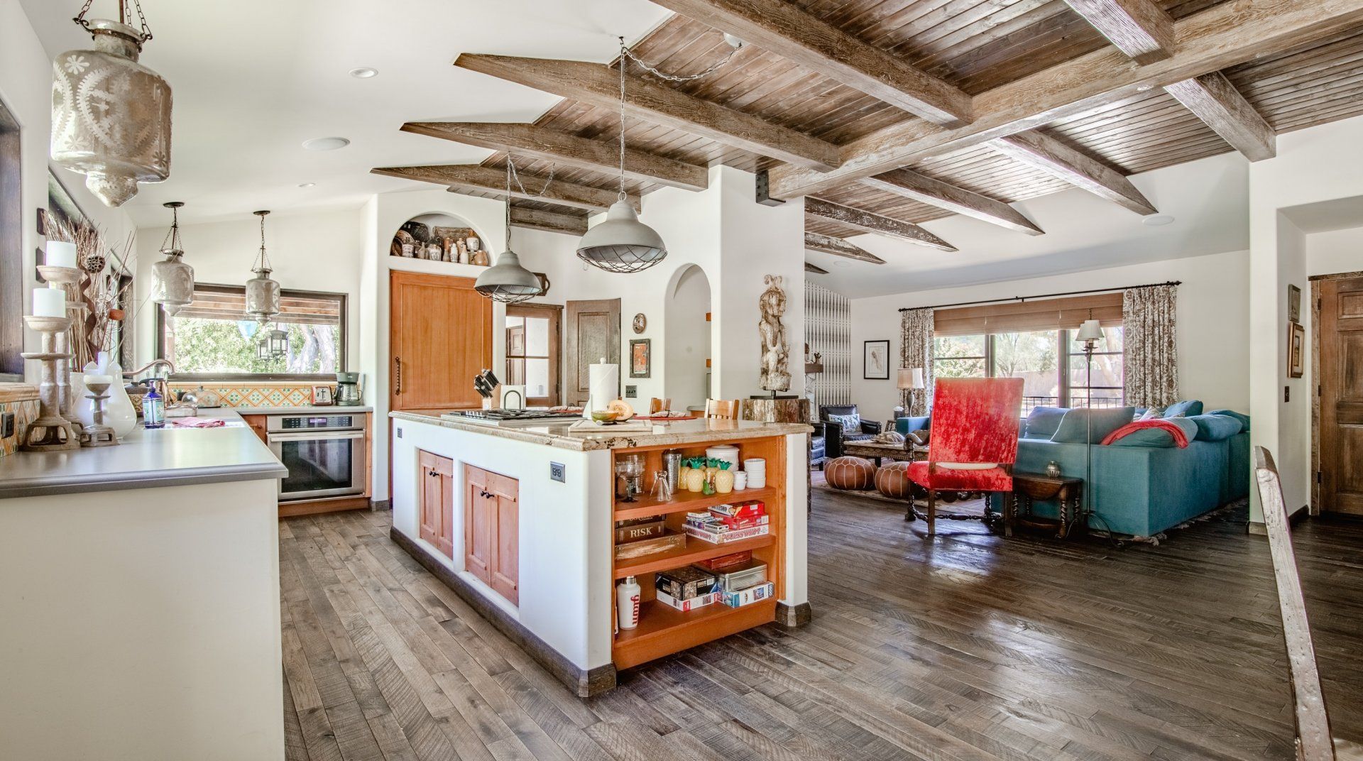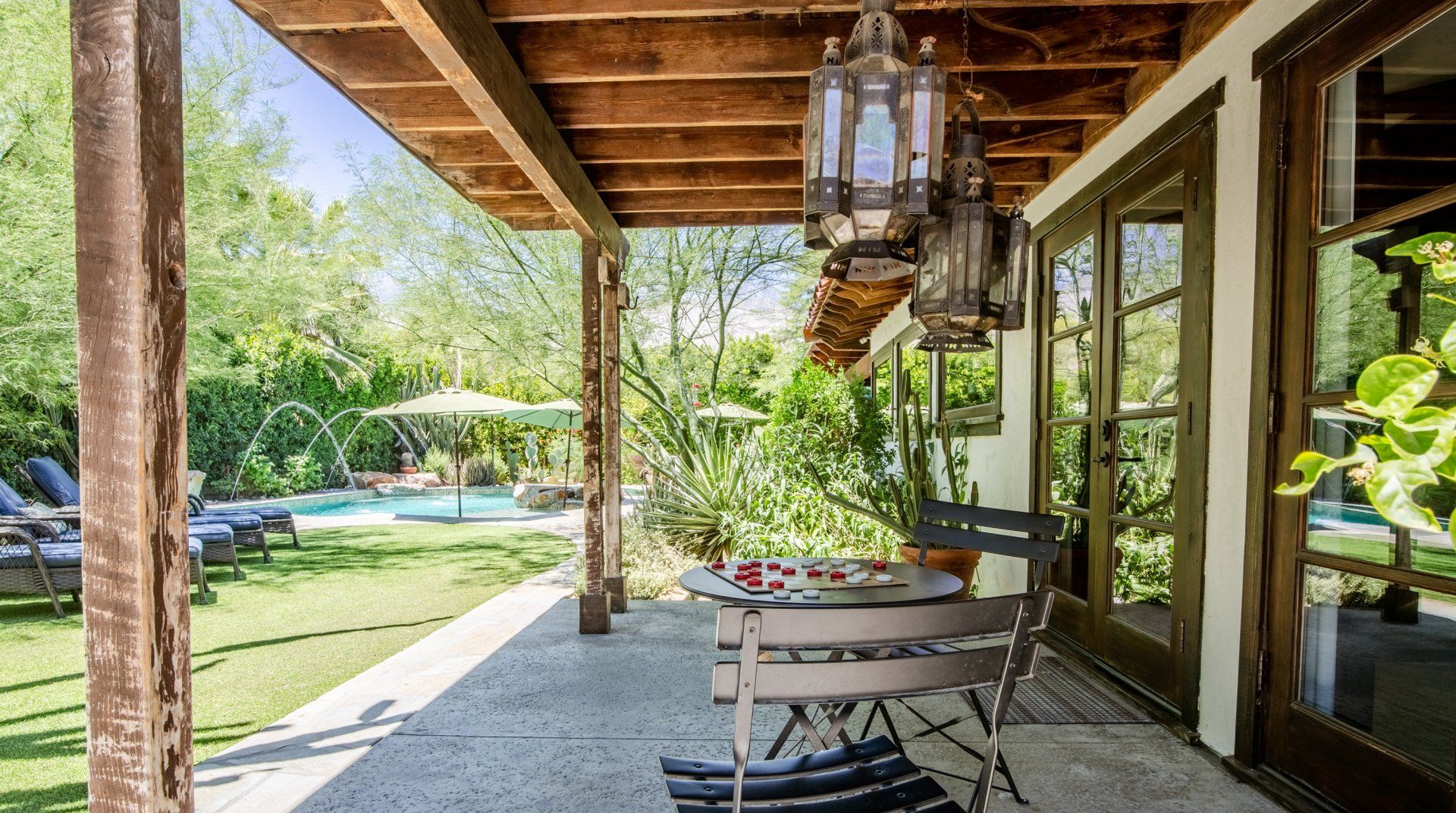 Adorned with colourful tiling, vintage furnishings and fountains, this characterful home is influenced by Spanish haciendas. Differing from some of the more minimal homes in the surrounding area, the stylish pad celebrates colour and creativity, with unique artworks and custom sinks. Families and groups of friends can host dinner parties in the outdoor kitchen, relax indoors with the Sonos sound system or take a short trip to downtown Palm Springs.