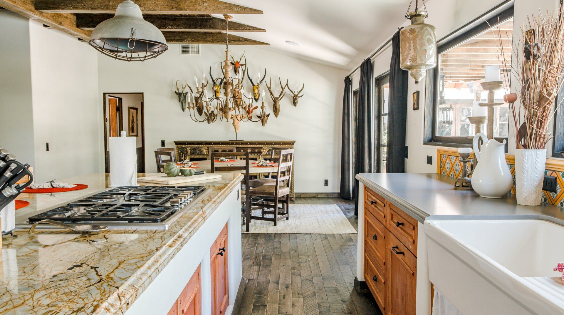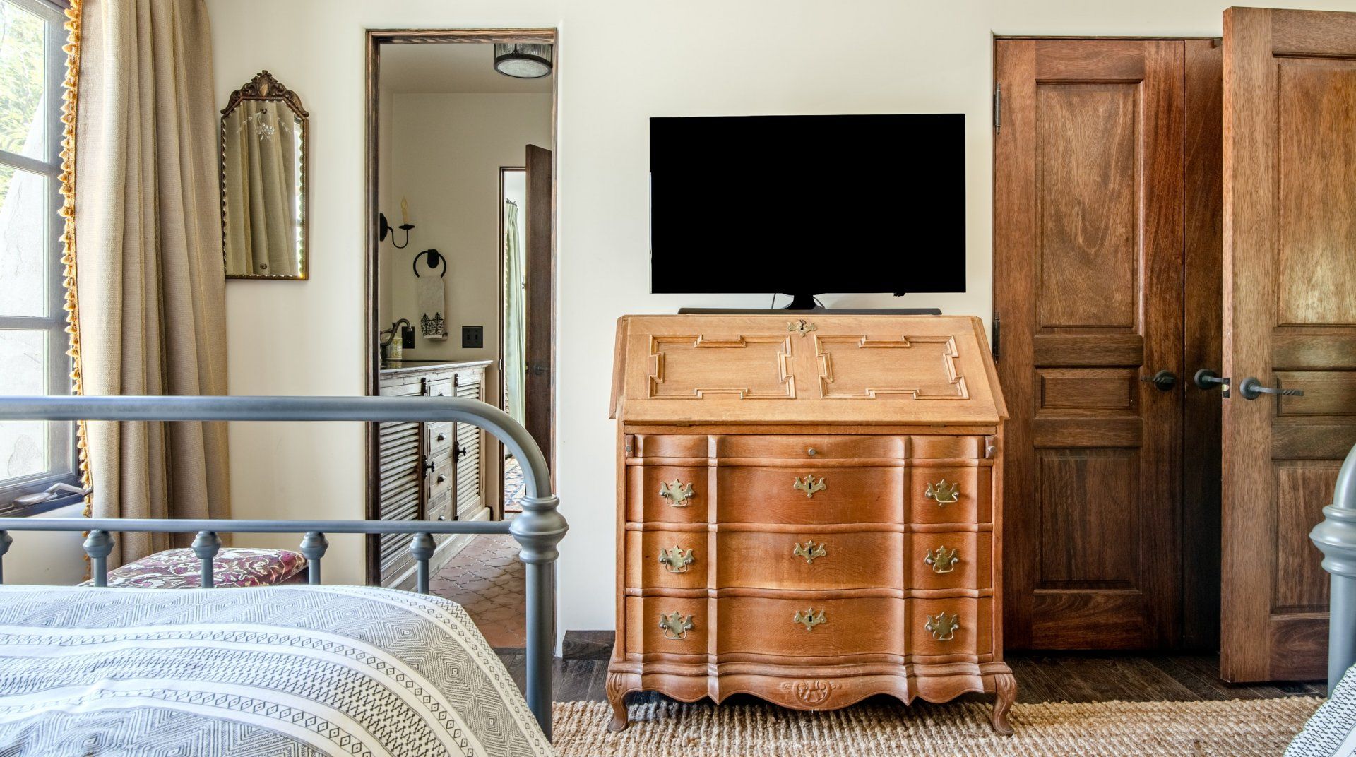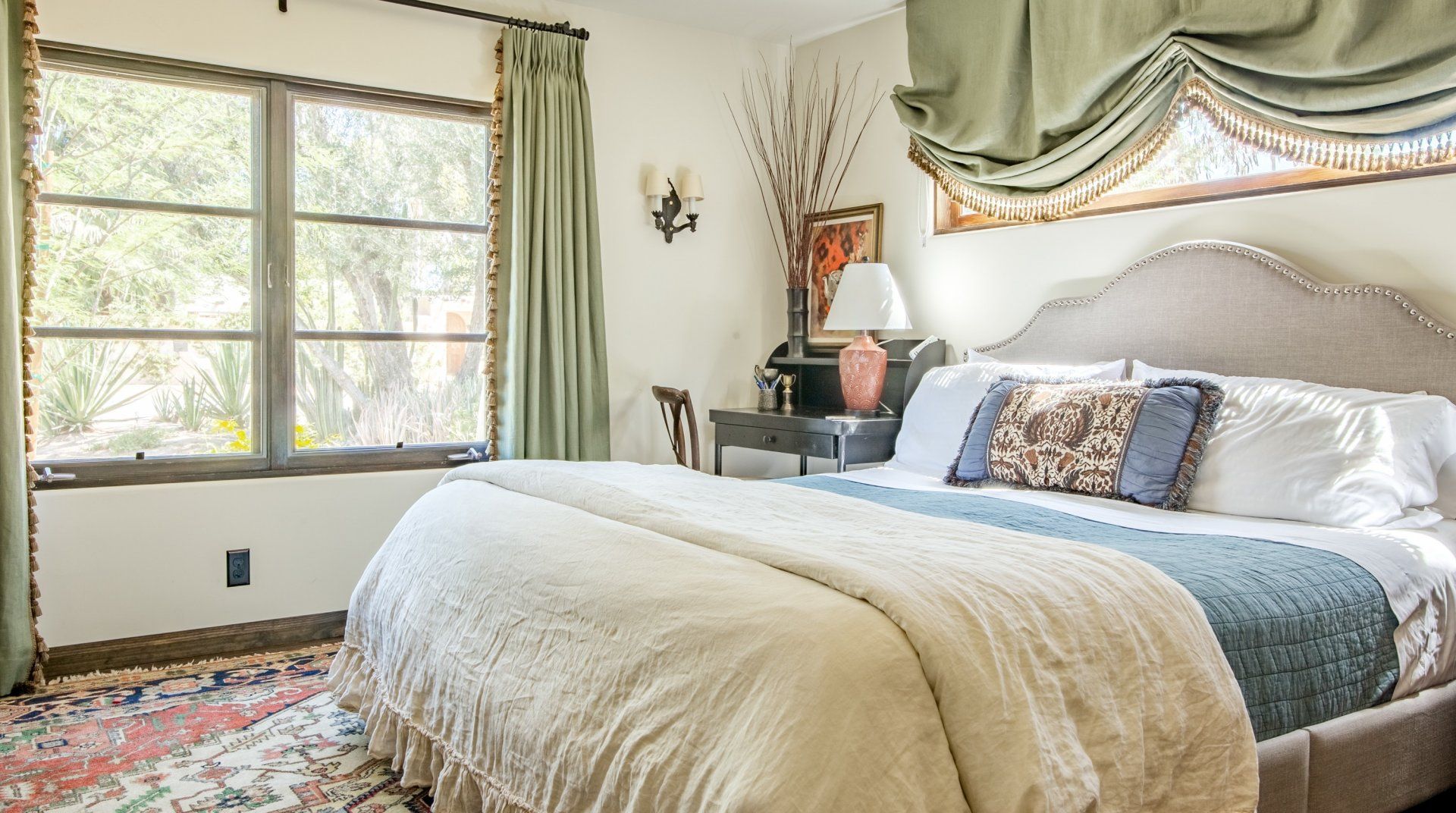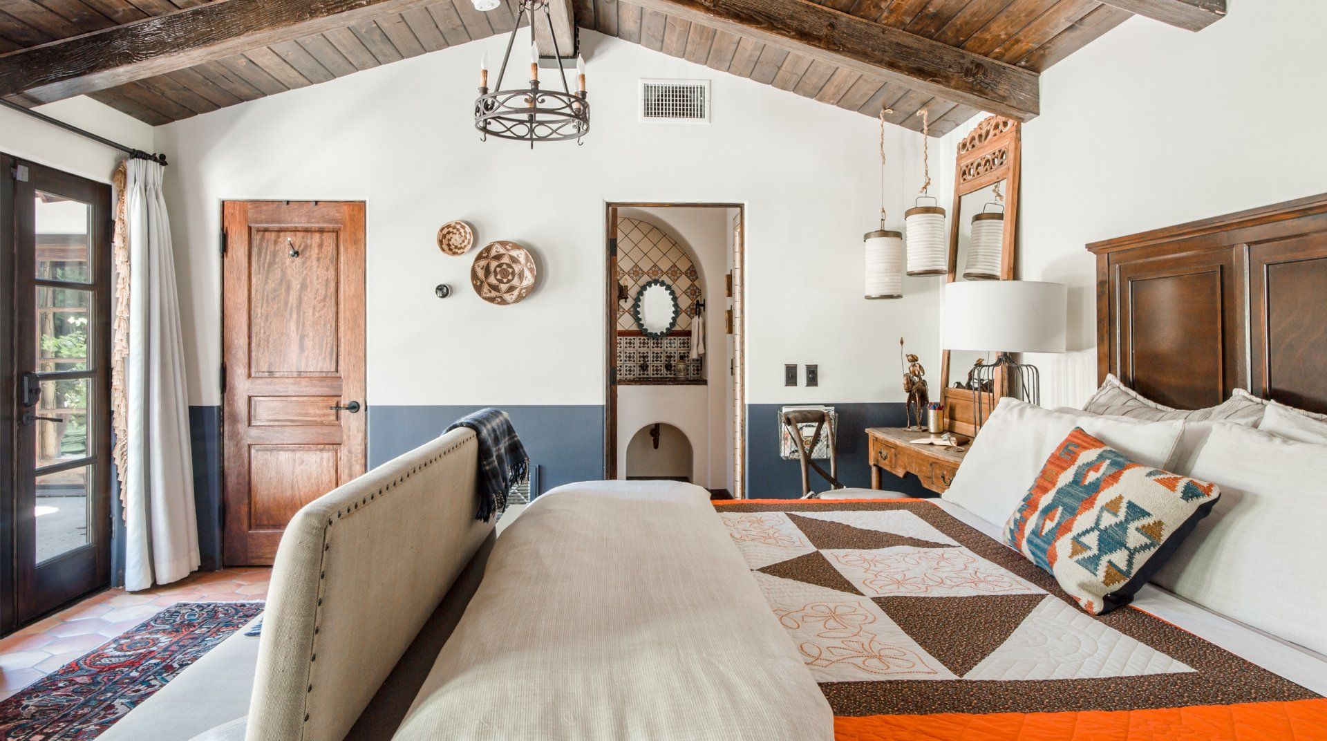 Adorned with colourful tiling, vintage furnishings and fountains, this characterful home is influenced by Spanish haciendas. Differing from some of the more minimal homes in the surrounding area, the stylish pad celebrates colour and creativity, with unique artworks and custom sinks. Families and groups of friends can host dinner parties in the outdoor kitchen, relax indoors with the Sonos sound system or take a short trip to downtown Palm Springs.