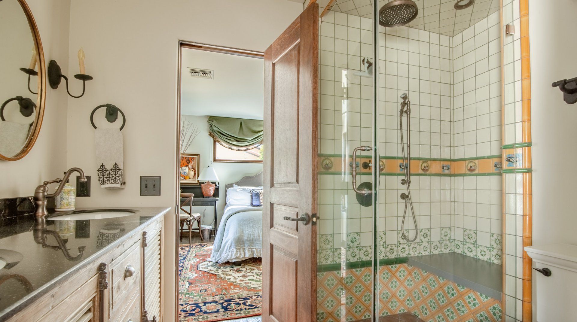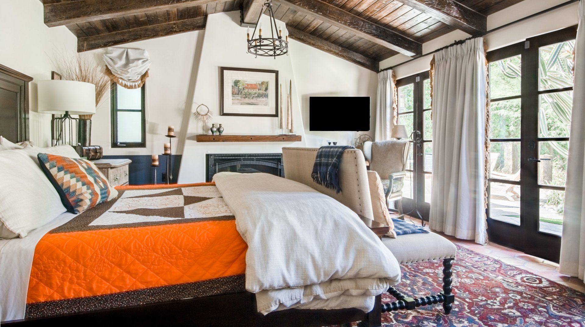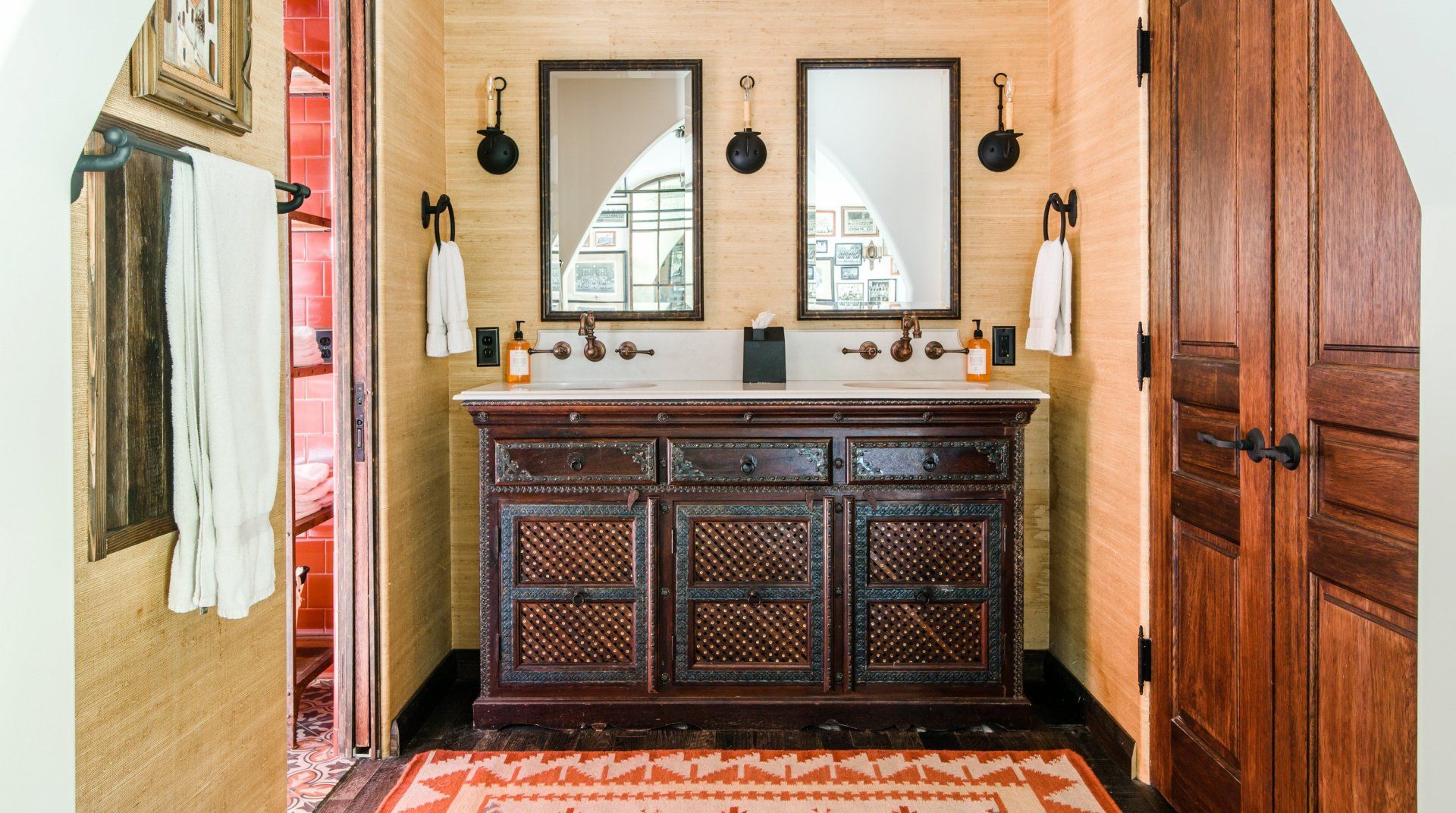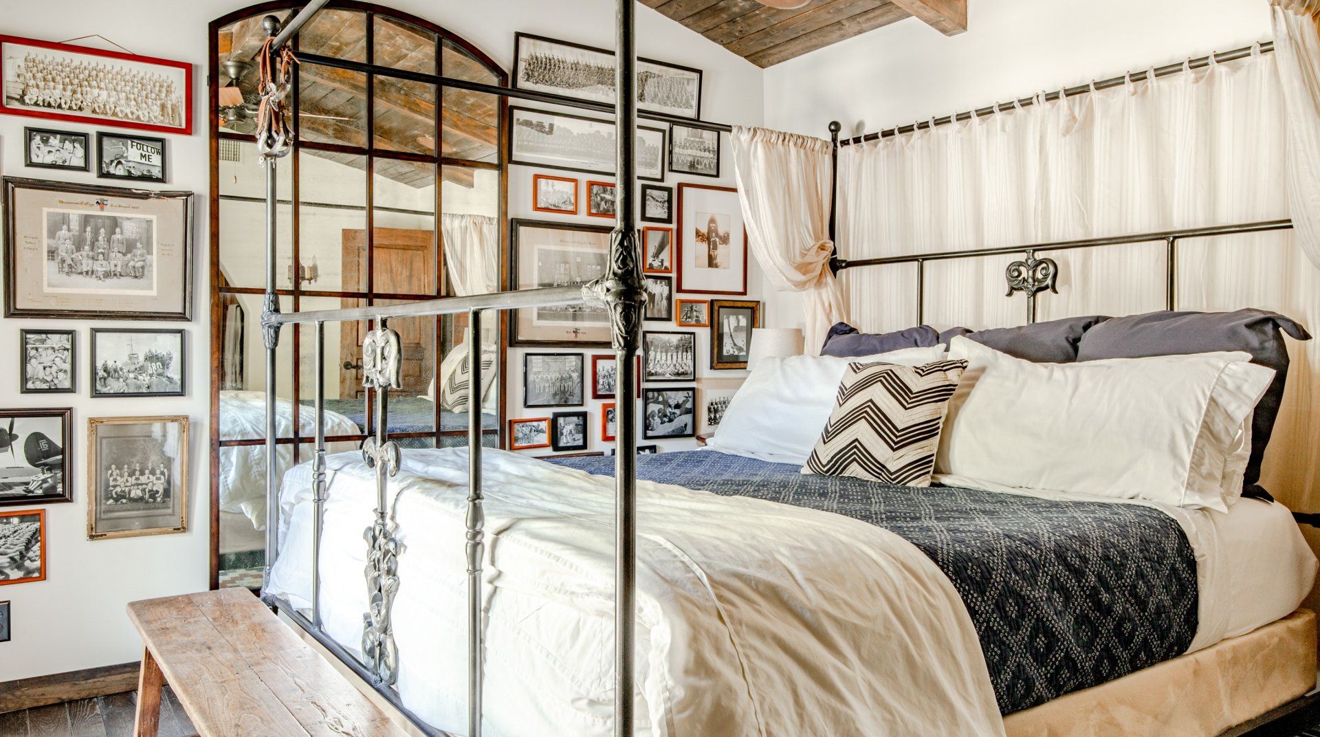 Adorned with colourful tiling, vintage furnishings and fountains, this characterful home is influenced by Spanish haciendas. Differing from some of the more minimal homes in the surrounding area, the stylish pad celebrates colour and creativity, with unique artworks and custom sinks. Families and groups of friends can host dinner parties in the outdoor kitchen, relax indoors with the Sonos sound system or take a short trip to downtown Palm Springs.