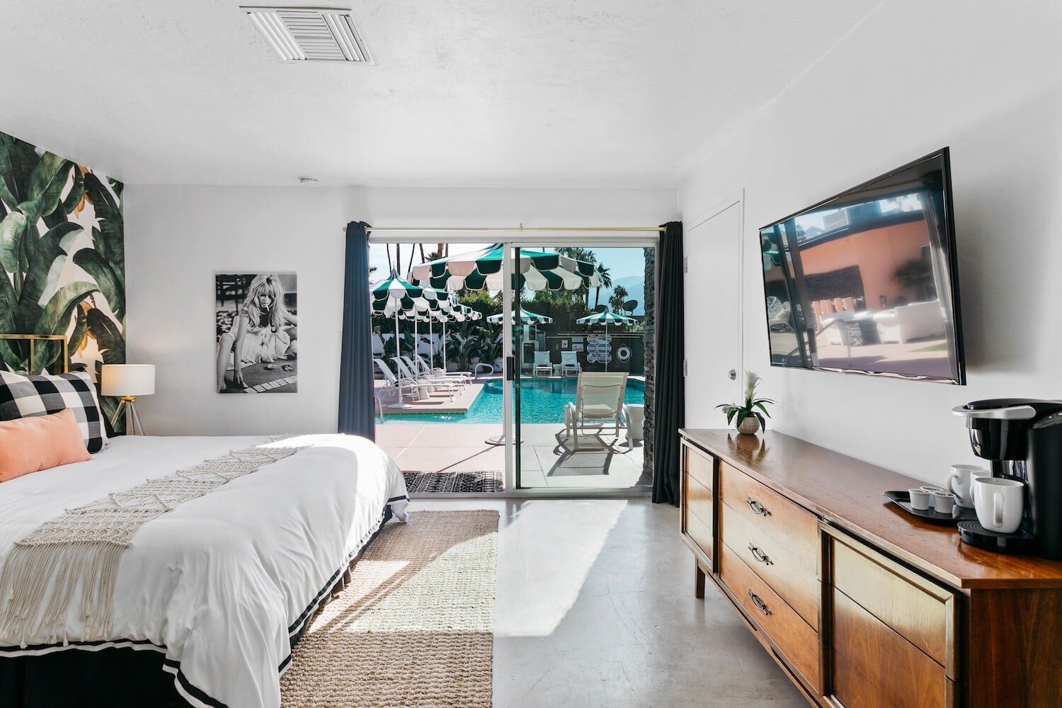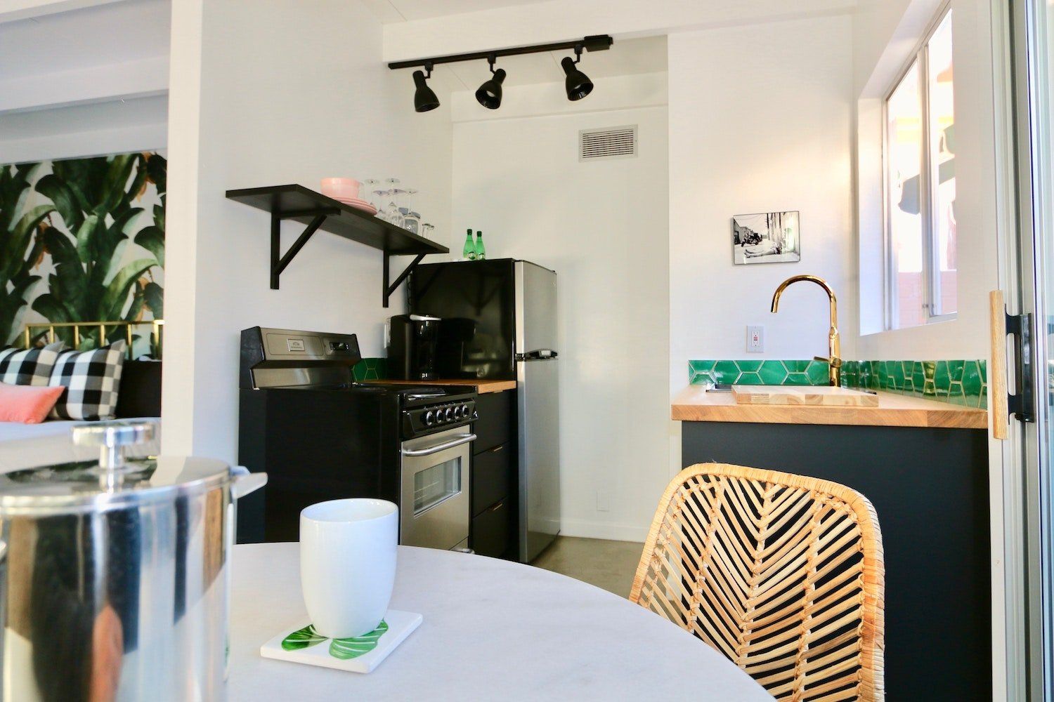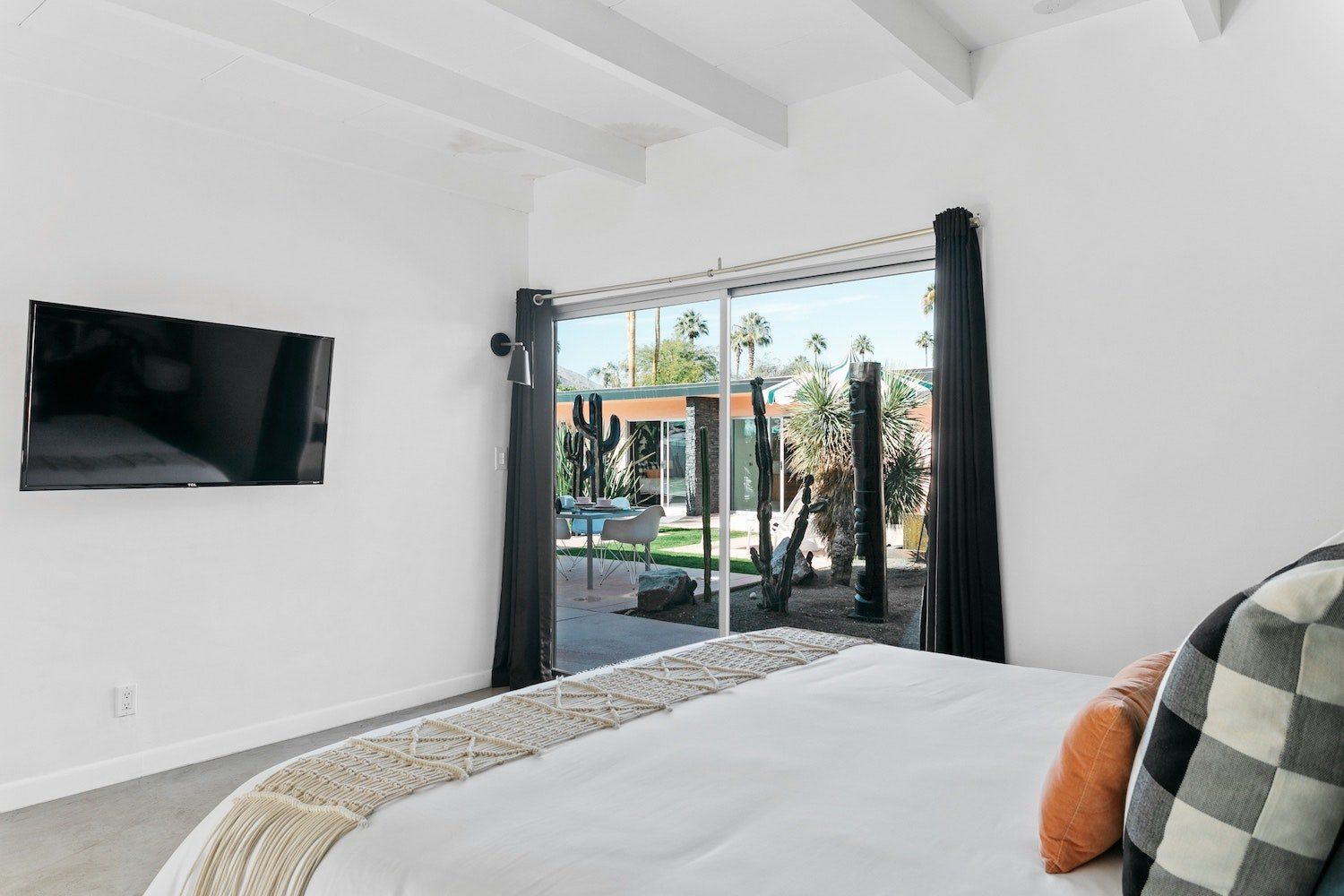 Set within the Warm Sands district, guests are only a short walk or cycle away from the buzzing centre of downtown Palm Springs. This extensive home welcomes large groups of friends or family who are looking for a fun-fuelled holiday. The large dining room and kitchen create a welcoming social space for hosting dinner parties and family feasts. The neighbourhood's iconic mid-century homes have attracted glamourous holidaymakers for many years and is a sophisticated backdrop for your stay.