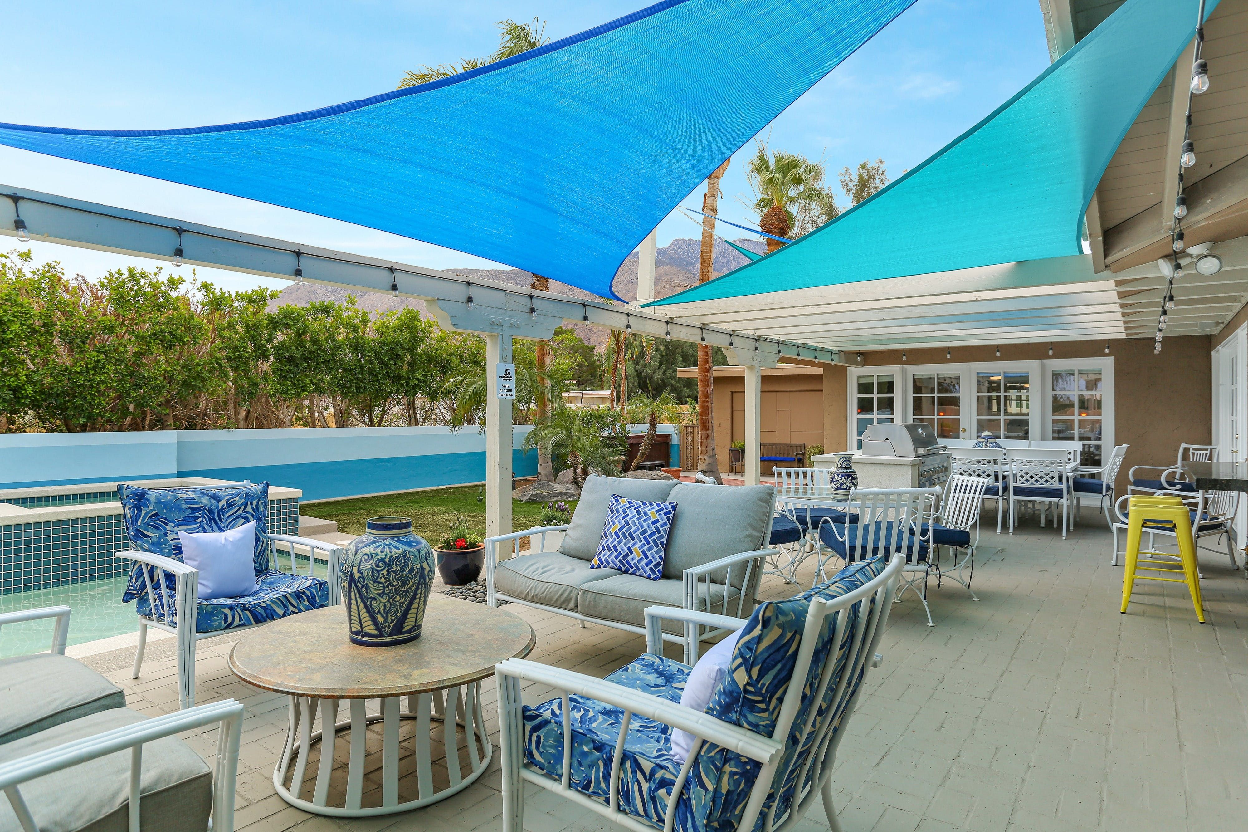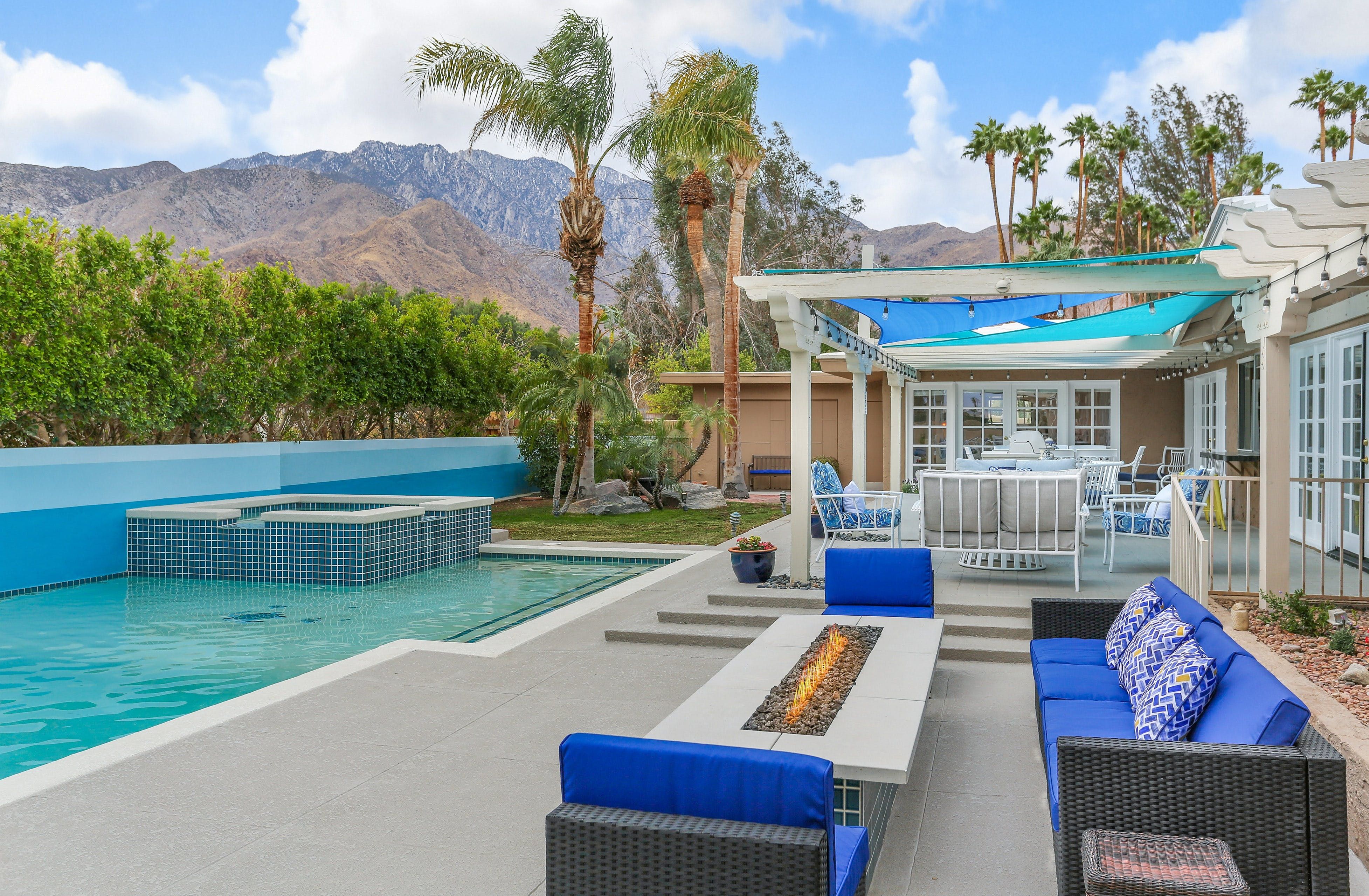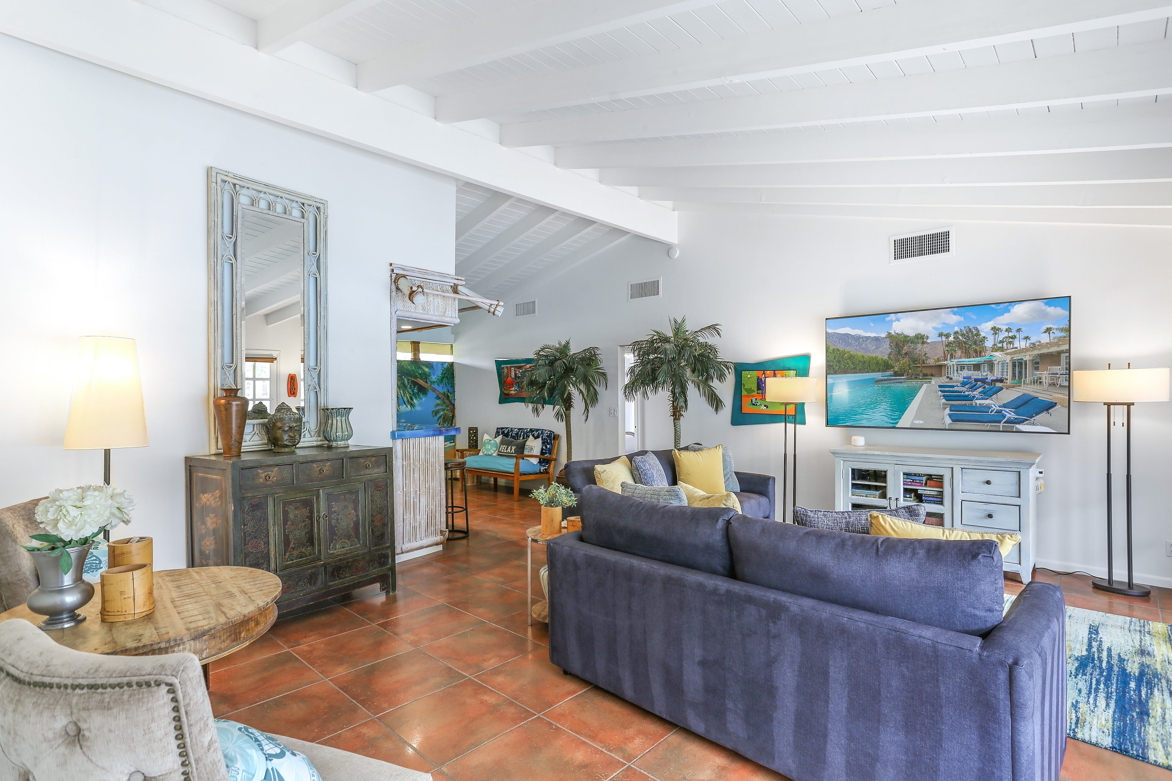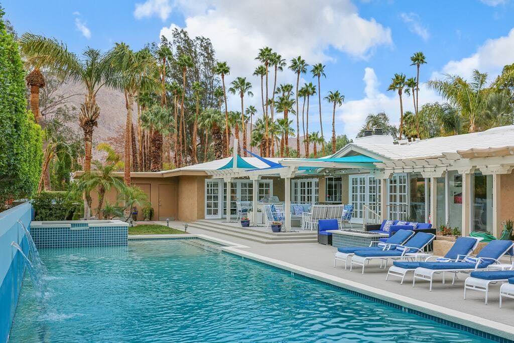 Surrounded by towering palm trees and sublime mountain views, this gorgeous home once belonged to the heiress Christina Onassis. In the back garden, you’ll find a pool worthy of heiresses – it’s 80-foot-long with an oversized spa and special water features. With spots to lounge on all sides, we imagine you’ll be spending quite a bit of time out here, especially when you add in the fire pit, dining table and paddleball court. Inside, you’ll find a beachy décor executed so well you won’t bat an eye despite thedesert surroundings. Head to the huge tiki bar and prepare drinks to enjoy by the pool. The well-equipped kitchen is stocked with high-end appliances and a pass-through window to the outside dining area, making hosting alfresco dinner parties easy. Or, you can always light up the barbecue. The living area is bright with high light wood ceilings and cooling tiled floors, while the bedrooms offer ultimate comfort, each with its own en-suite bathroom. The master even has a sauna, perfect for soothing muscles after a rematch on the paddleball court. Location-wise, you’ll be just a quick five-minute drive from all that downtown Palm Springs has to offer, including delicious restaurants, boutiques and lively bars. Plus, if you’re a golfer, the surrounding area has plenty of renowned courses to choose from.