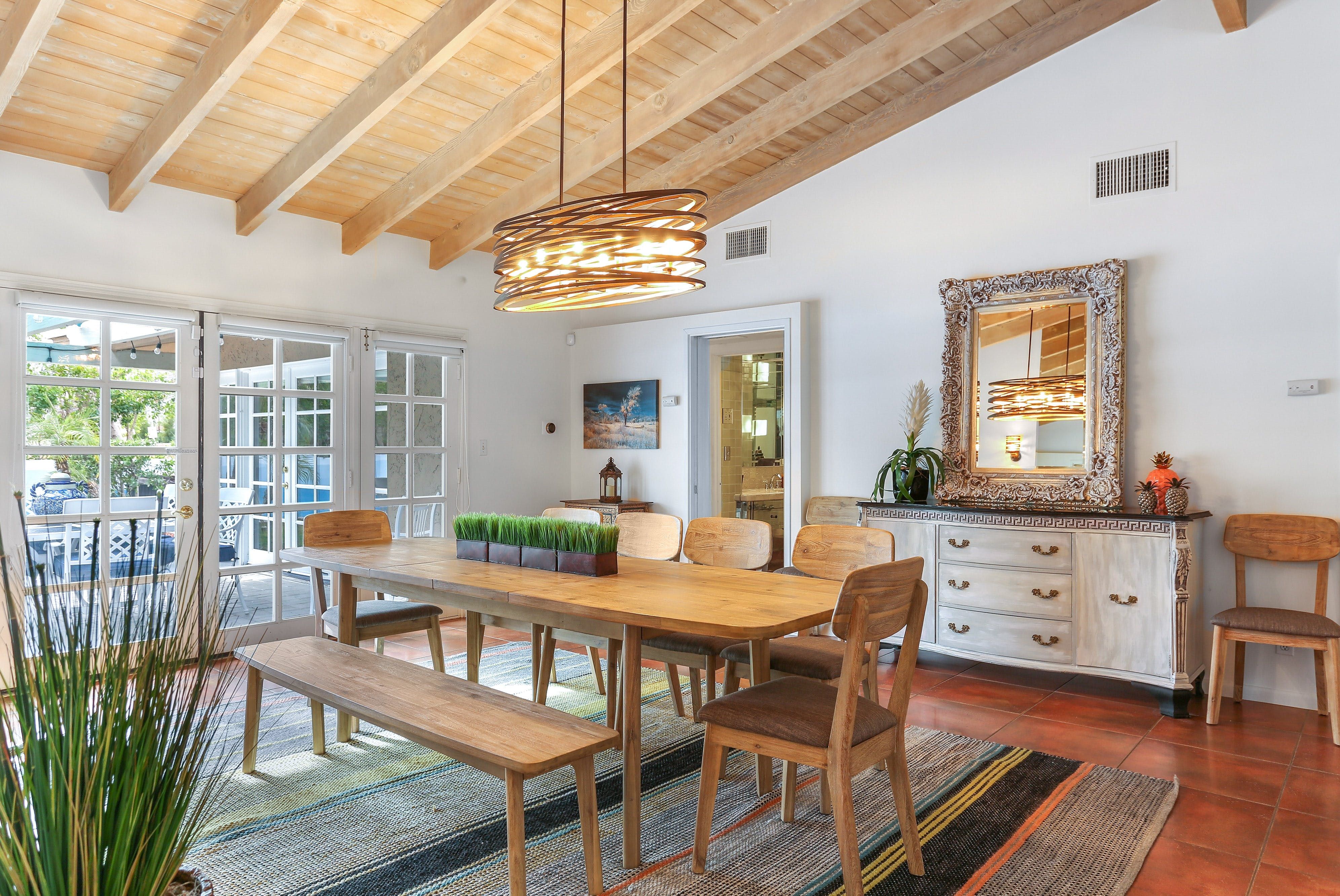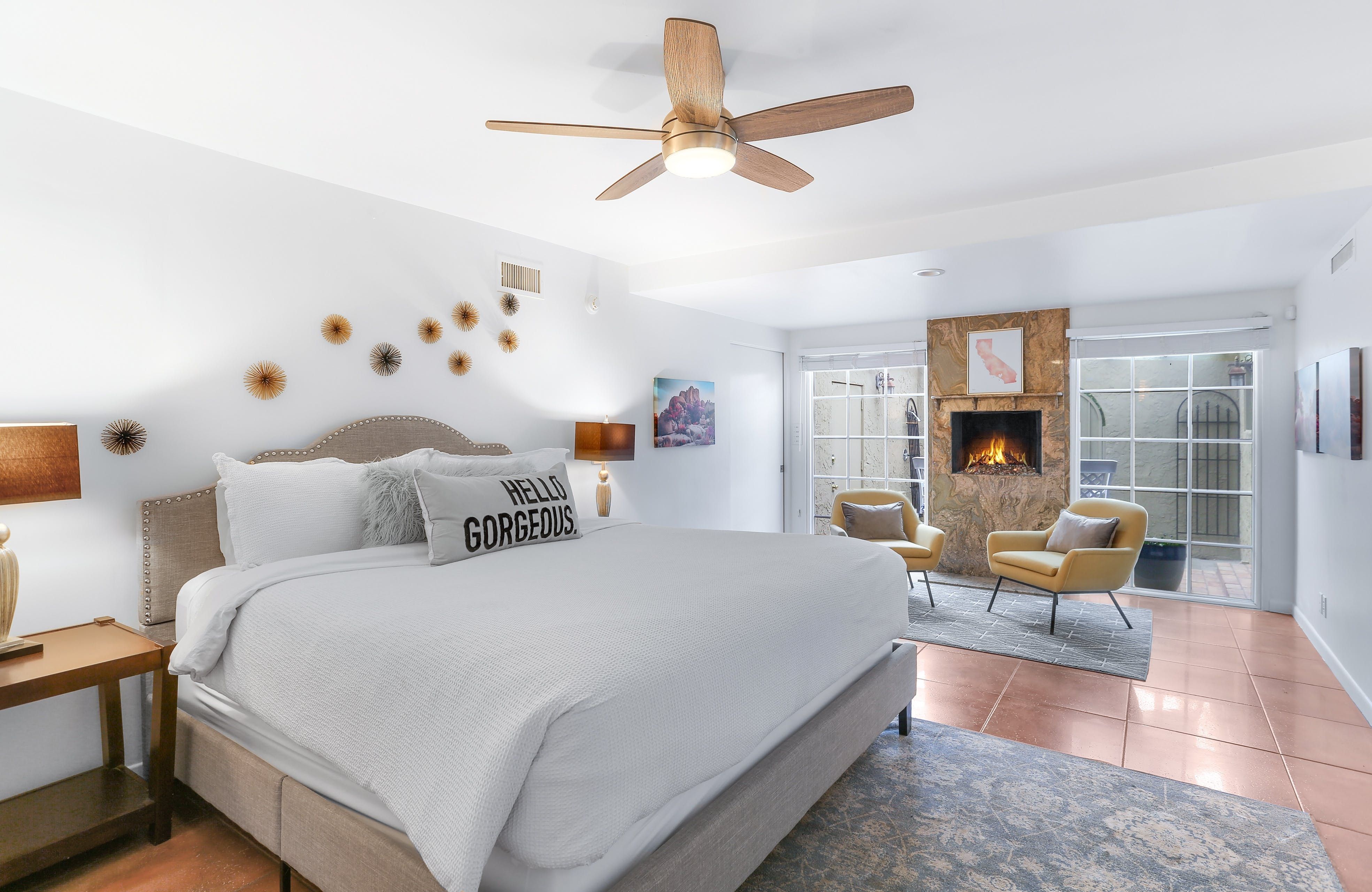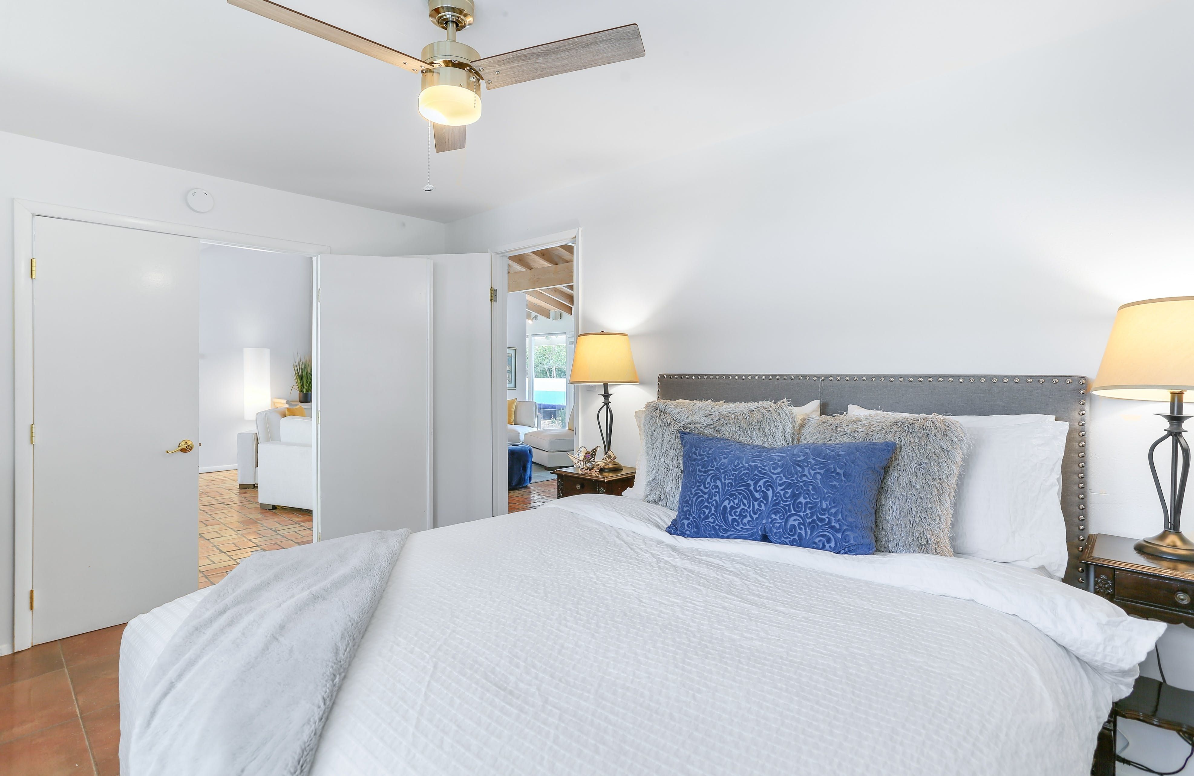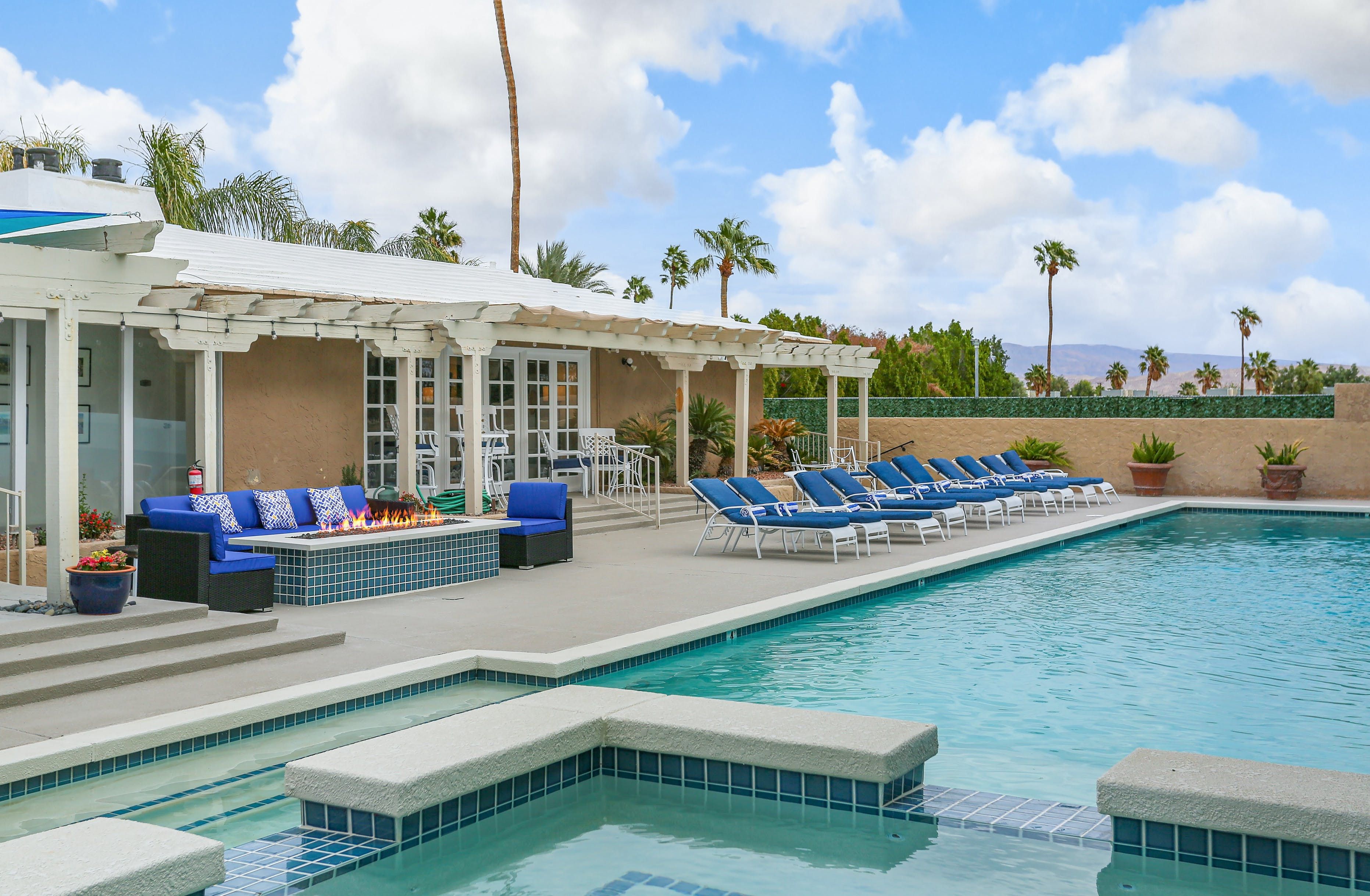 Surrounded by towering palm trees and sublime mountain views, this gorgeous home once belonged to the heiress Christina Onassis. In the back garden, you’ll find a pool worthy of heiresses – it’s 80-foot-long with an oversized spa and special water features. With spots to lounge on all sides, we imagine you’ll be spending quite a bit of time out here, especially when you add in the fire pit, dining table and paddleball court. Inside, you’ll find a beachy décor executed so well you won’t bat an eye despite thedesert surroundings. Head to the huge tiki bar and prepare drinks to enjoy by the pool. The well-equipped kitchen is stocked with high-end appliances and a pass-through window to the outside dining area, making hosting alfresco dinner parties easy. Or, you can always light up the barbecue. The living area is bright with high light wood ceilings and cooling tiled floors, while the bedrooms offer ultimate comfort, each with its own en-suite bathroom. The master even has a sauna, perfect for soothing muscles after a rematch on the paddleball court. Location-wise, you’ll be just a quick five-minute drive from all that downtown Palm Springs has to offer, including delicious restaurants, boutiques and lively bars. Plus, if you’re a golfer, the surrounding area has plenty of renowned courses to choose from.