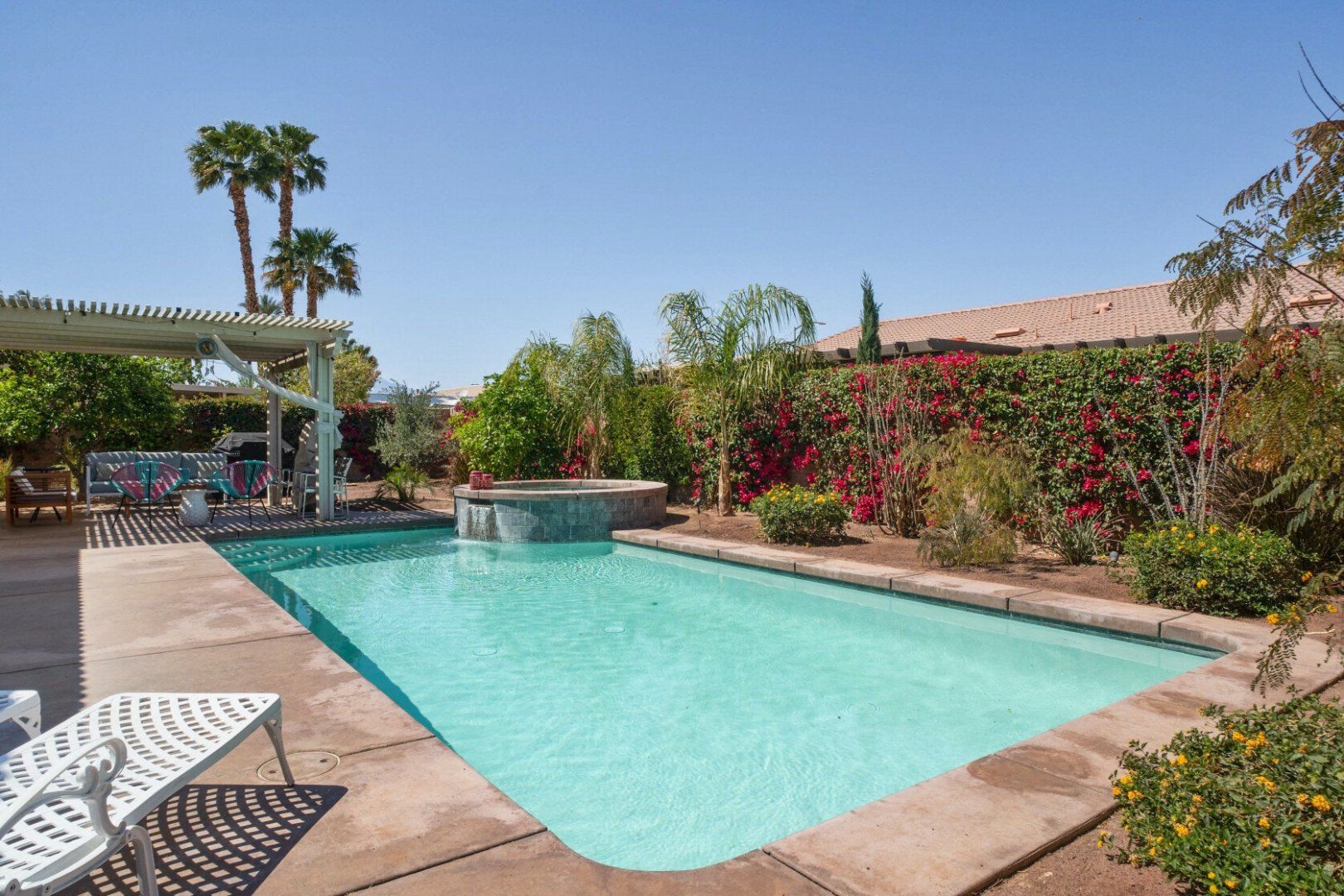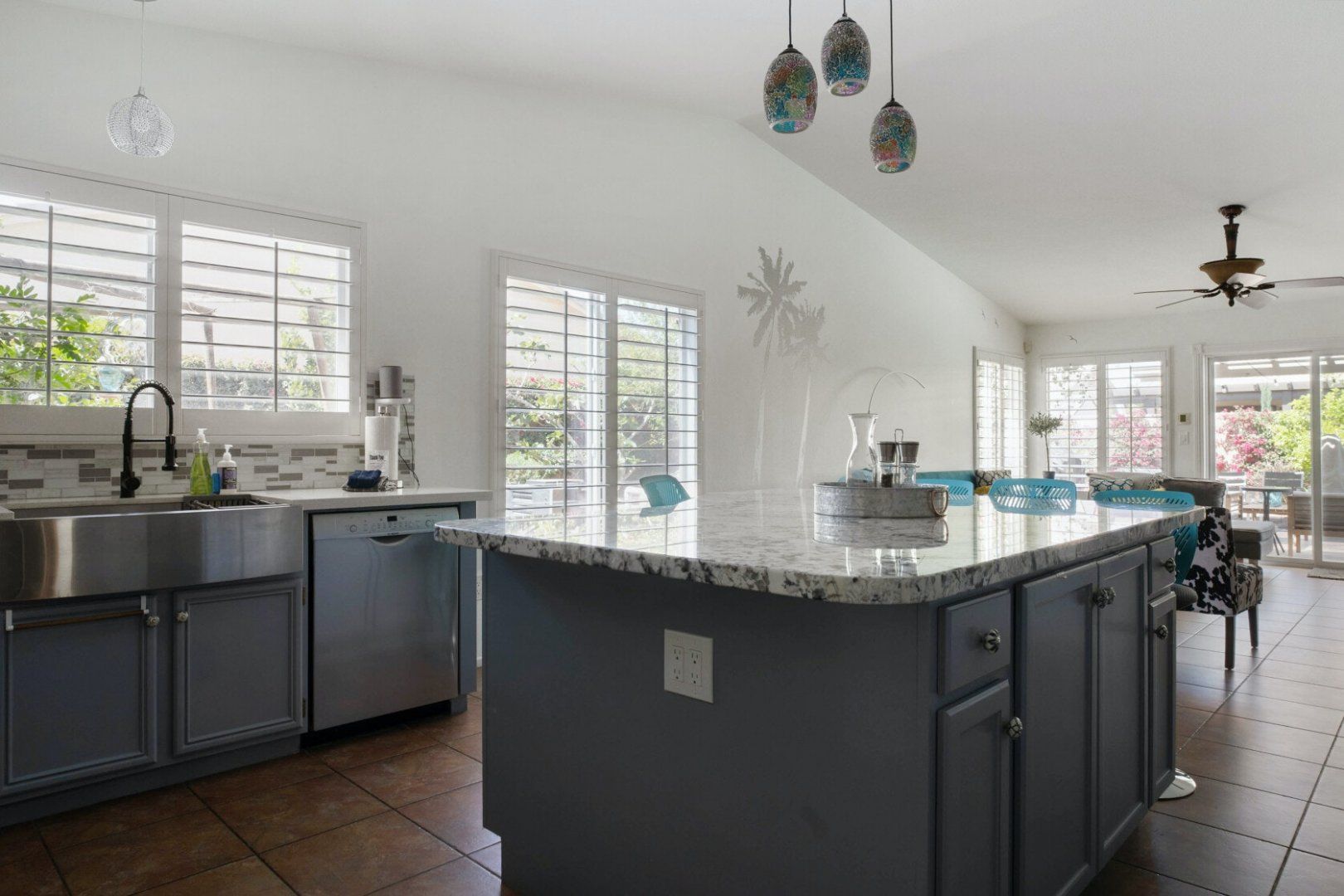 The home is situated in a tranquil neighbourhood close to the glitzy city of La Quinta and the picturesque Coachella Valley. If you're a festival-goer or golf-lover, you'll be pleased to find it’s less than five miles from PGA West Golf Course, and the Empire Polo Club – home to the Coachella and Stagecoach music festivals – is just two miles away. You can also drive to downtown La Quinta in around fifteen minutes, or head into Joshua Tree National Park for a hike.