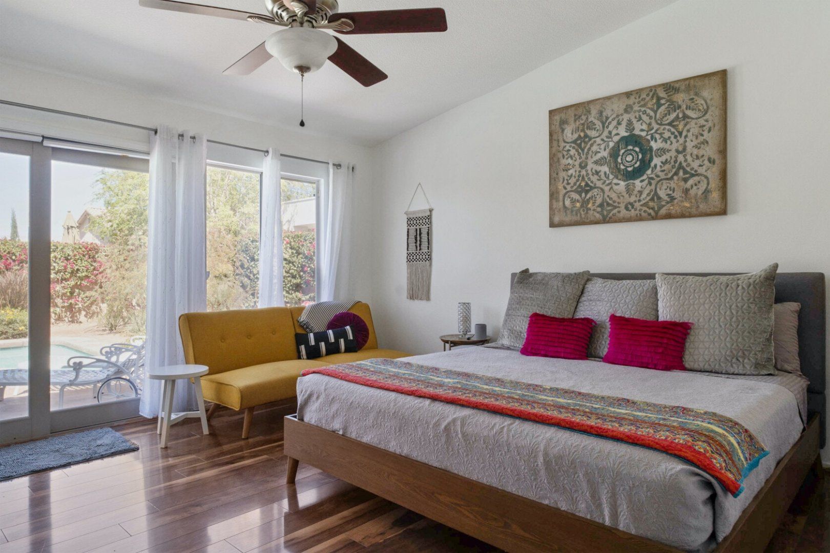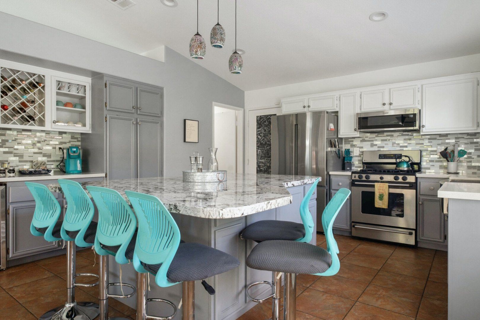 This comfortable villa is perfect for extended families and large groups of friends looking for a fun-filled escape in the Californian sunshine. You’ll certainly want for nothing here – while away the hours topping up your tan in the private back garden before plunging into the pristine pool to cool off, or relax your muscles with a dip in the hot tub. Indoors, an open-plan island kitchen, equipped with marble countertops and turquoise breakfast bar stools, is ideal for whipping up a round of snacks and mojitos to enjoy around the outdoor firepit. A fully equipped games room will keep you thoroughly entertained, with poker, table tennis, foosball and pool tables included.