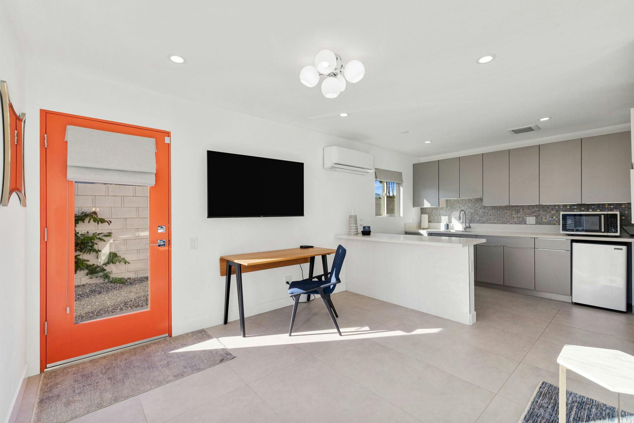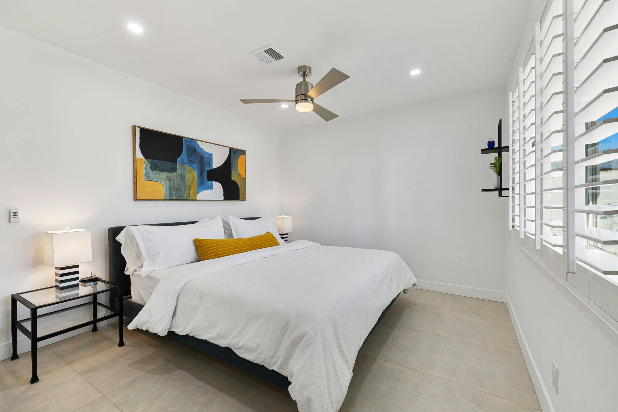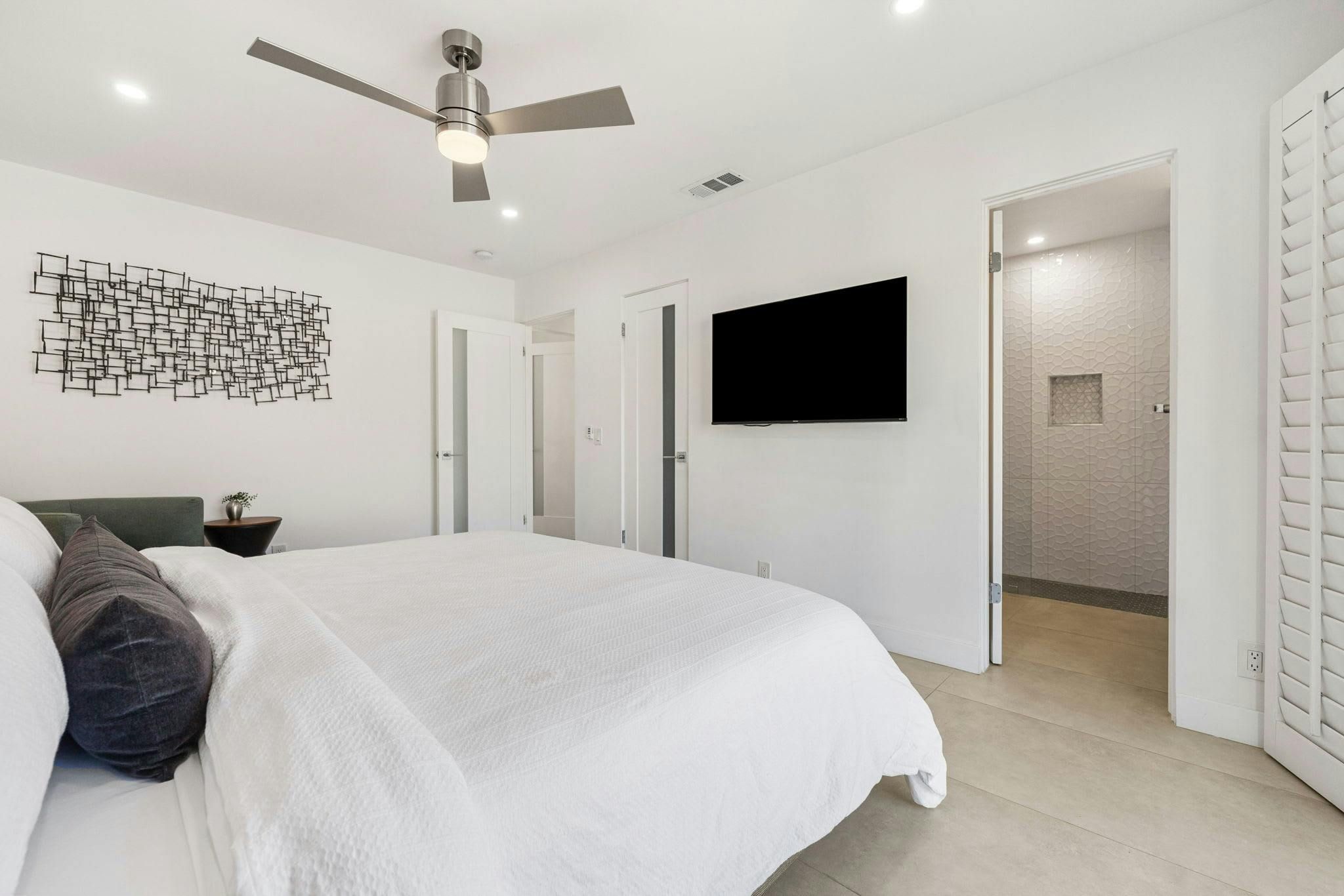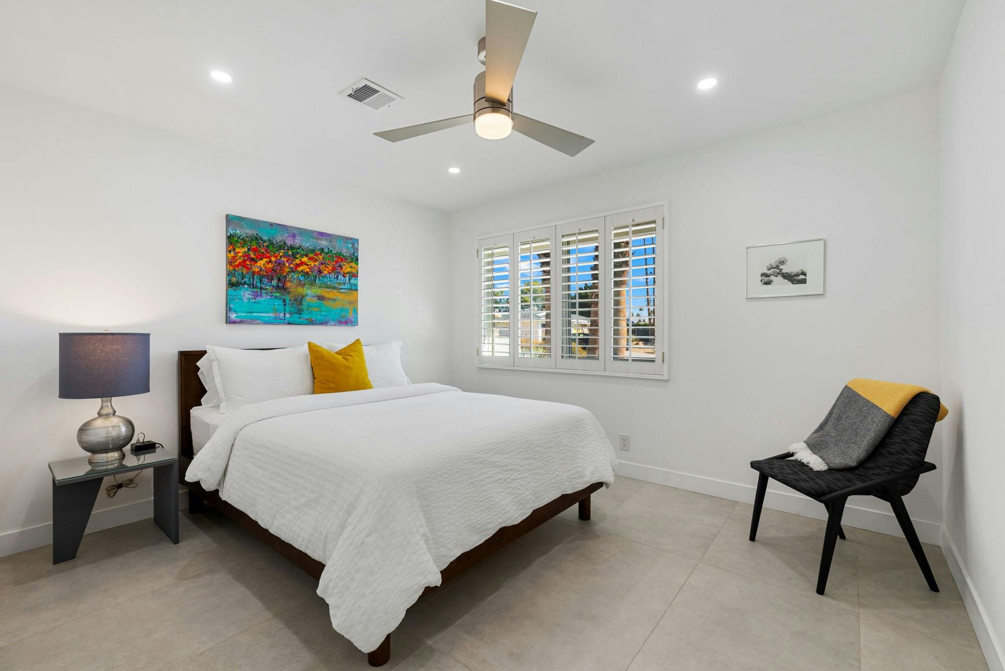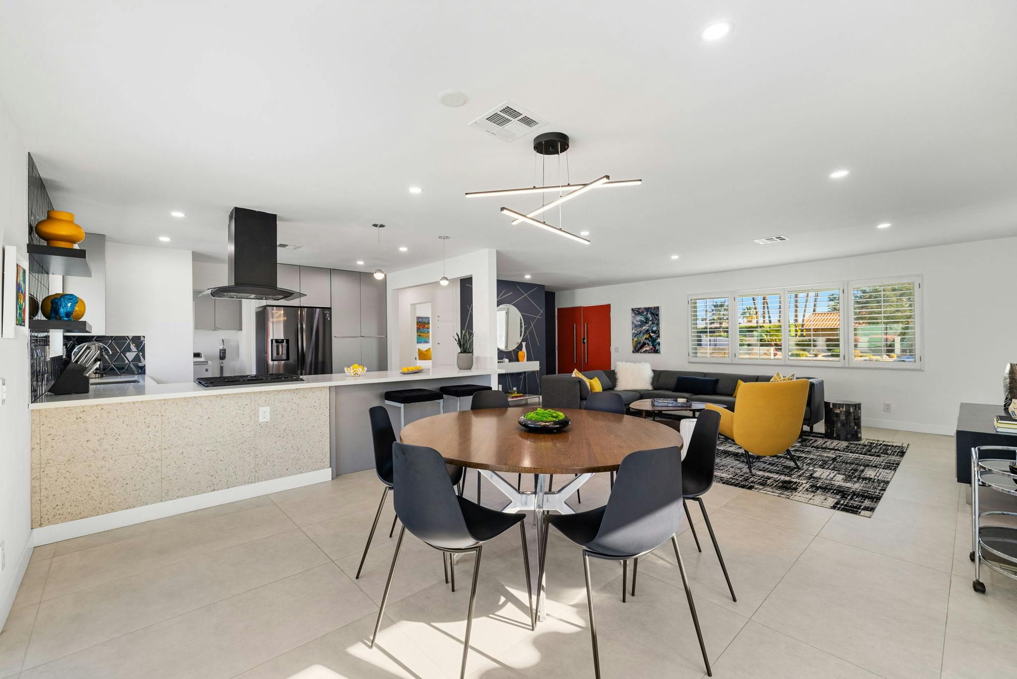 Big blue skies and mountain views make this home in Palm Springs an especially scenic place to stay. The outdoor area is instantly inviting, with its sun-kissed swimming pool, luxurious firepit, and shaded daybed that’s ideal for a siesta. Moving inside, you’ll find ample room to get comfy – the space is spread over the main house and a separate annexe, offering flexibility for families or a group getaway. And with downtown eateries and entertainment within easy walking distance, you won’t need to go far to discover more of this desert city.