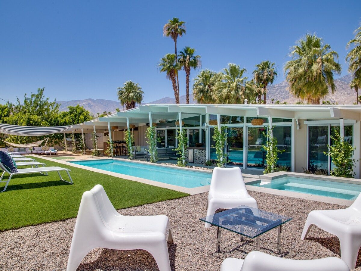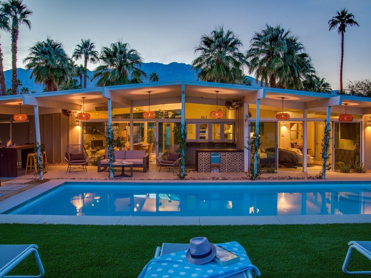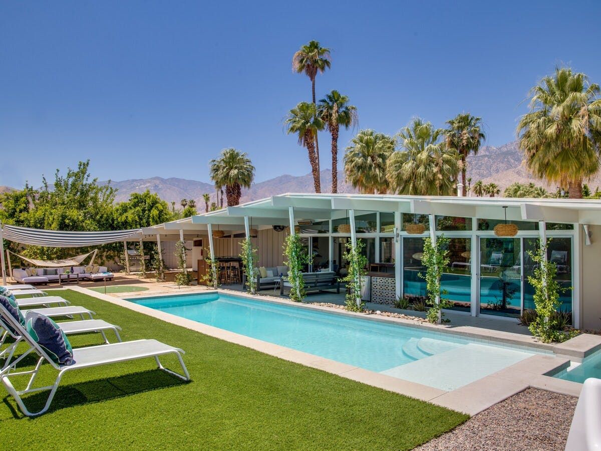 Seclusion and style are the names of the game in this super elegant Palm Springs abode. Sitting on a quiet street in the enviable Little Beverly Hills neighbourhood, you'll be part of an intimate enclave of 84 homes built by the legendary Bob Alexander - known for his iconic mid-century style. Open up the floor-to-ceiling windows for seamless indoor-outdoor living, and dive into the private pool, complete with integrated waterfall spa, disco lights, tanning shelf, and sun deck with awe-inspiring mountain views. Collapse in gorgeous luxe beds and wake up to sweeping views every morning. Despite the sleepy feel of the area, grocery stores, eateries and vibrant downtown Palm Springs are just a few blocks away. Head to a luxe golf club to practice your swing, or hike through mountains, deserts, and national parks in the area. Make it back in time for dinner using the state-of-the-art barbecue station, and gather around one of the five (yes, five) fire features for a nightcap.