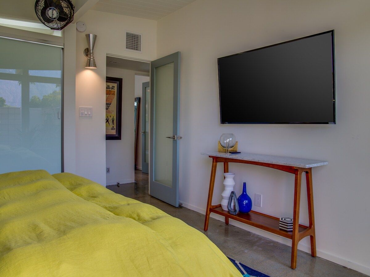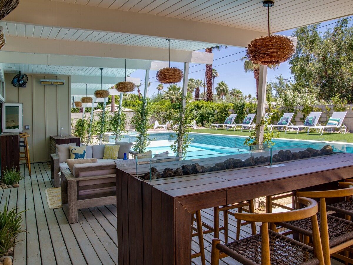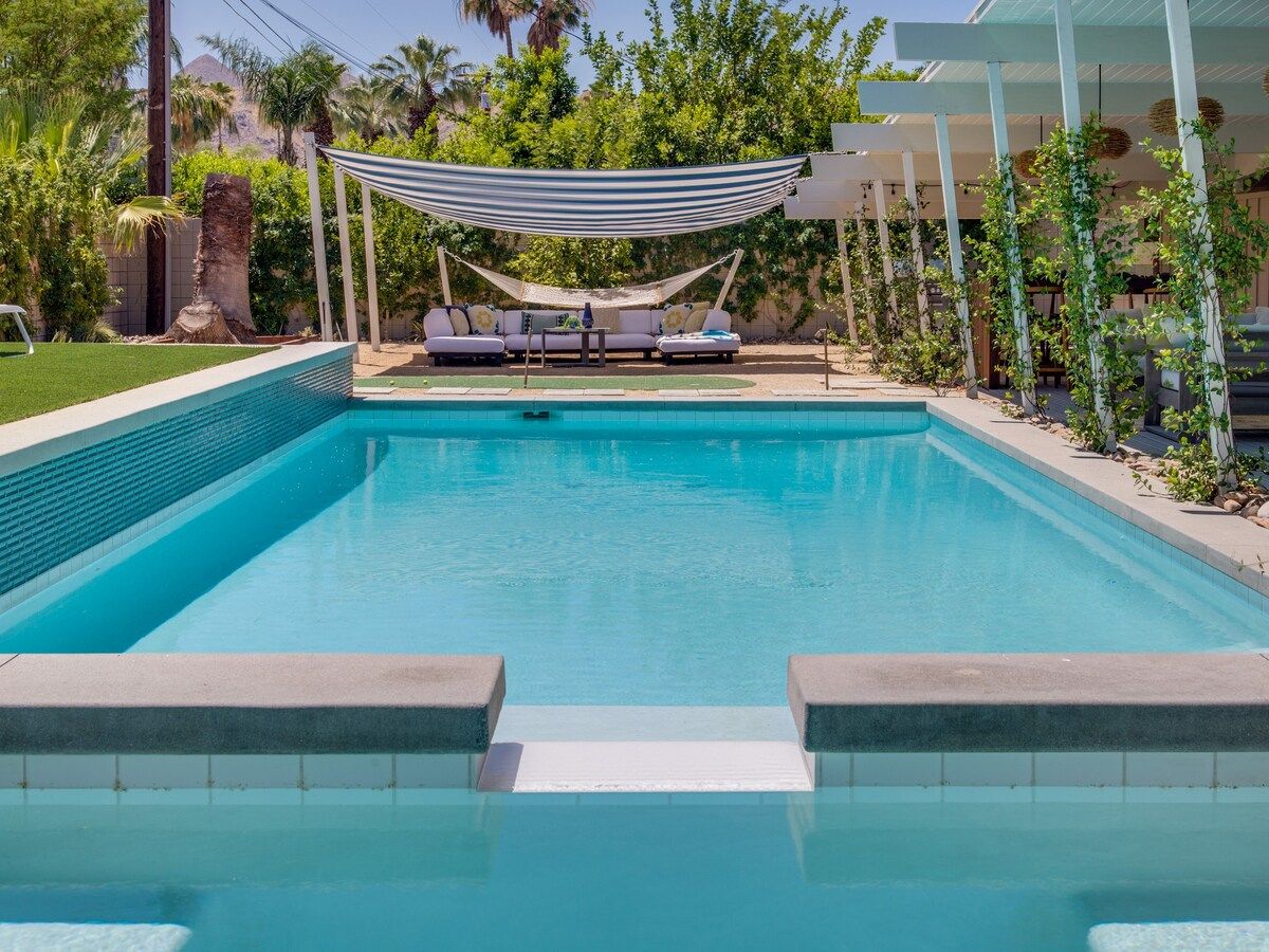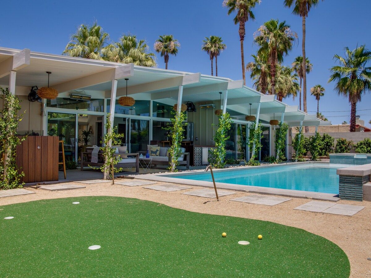 Seclusion and style are the names of the game in this super elegant Palm Springs abode. Sitting on a quiet street in the enviable Little Beverly Hills neighbourhood, you'll be part of an intimate enclave of 84 homes built by the legendary Bob Alexander - known for his iconic mid-century style. Open up the floor-to-ceiling windows for seamless indoor-outdoor living, and dive into the private pool, complete with integrated waterfall spa, disco lights, tanning shelf, and sun deck with awe-inspiring mountain views. Collapse in gorgeous luxe beds and wake up to sweeping views every morning. Despite the sleepy feel of the area, grocery stores, eateries and vibrant downtown Palm Springs are just a few blocks away. Head to a luxe golf club to practice your swing, or hike through mountains, deserts, and national parks in the area. Make it back in time for dinner using the state-of-the-art barbecue station, and gather around one of the five (yes, five) fire features for a nightcap.